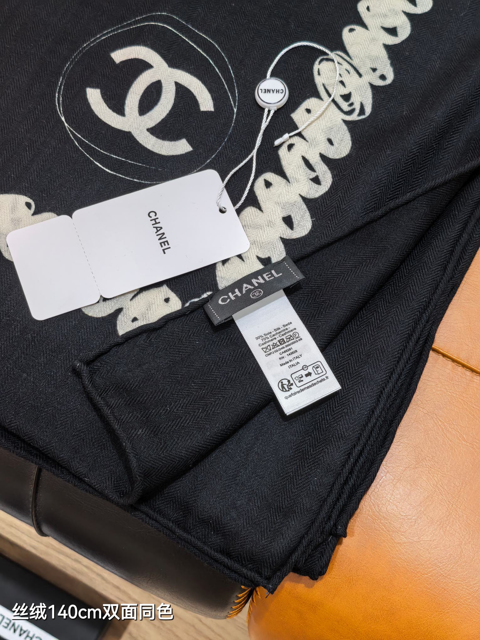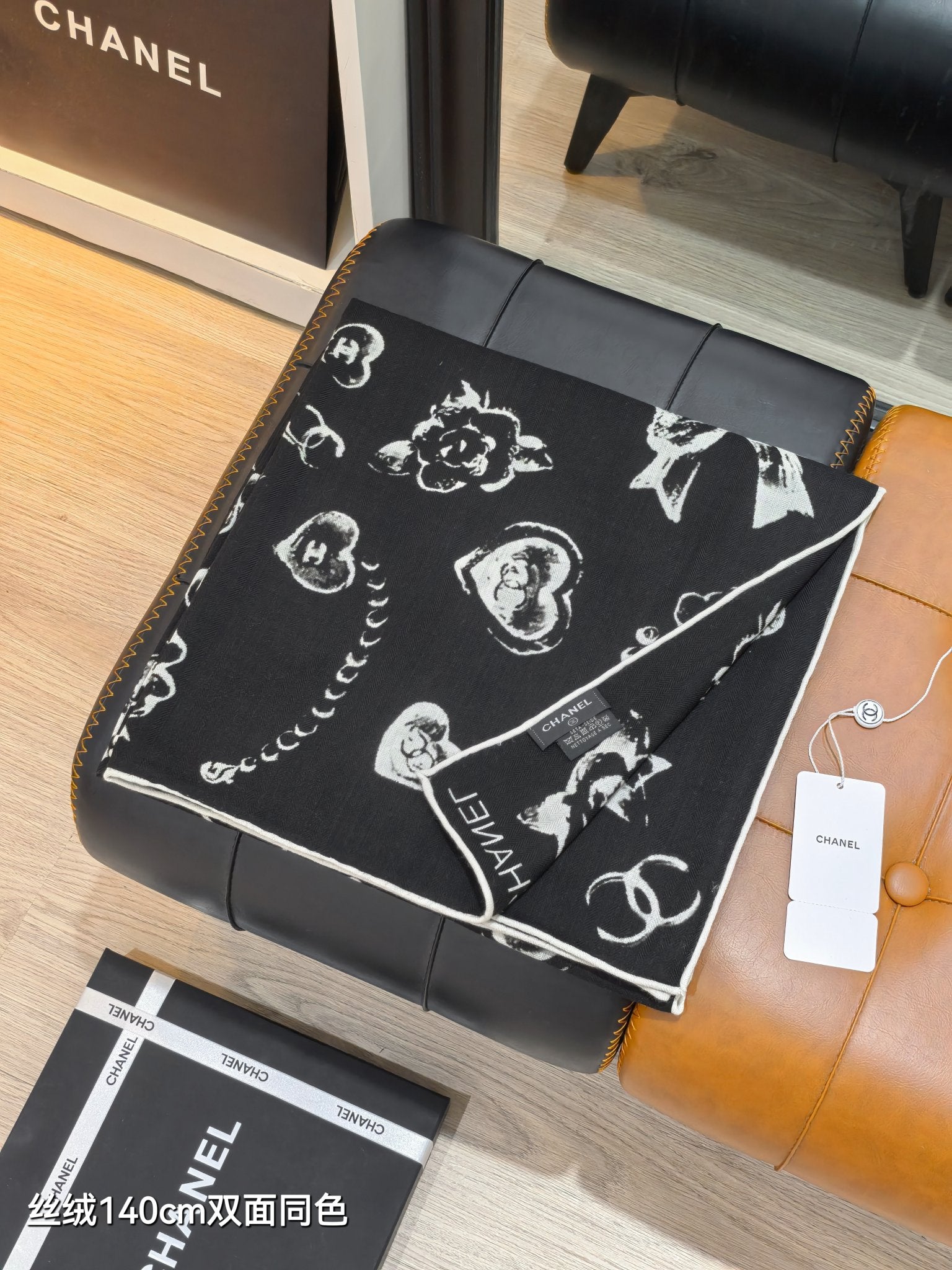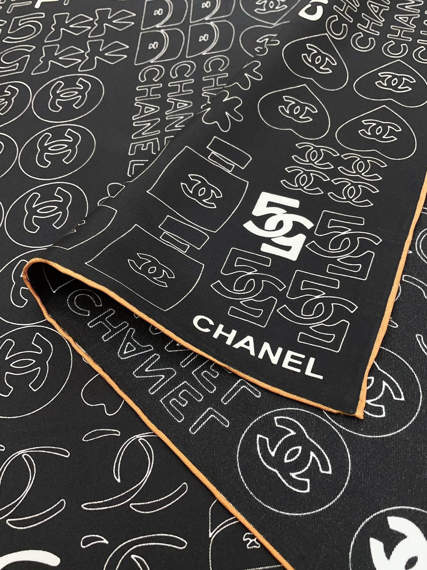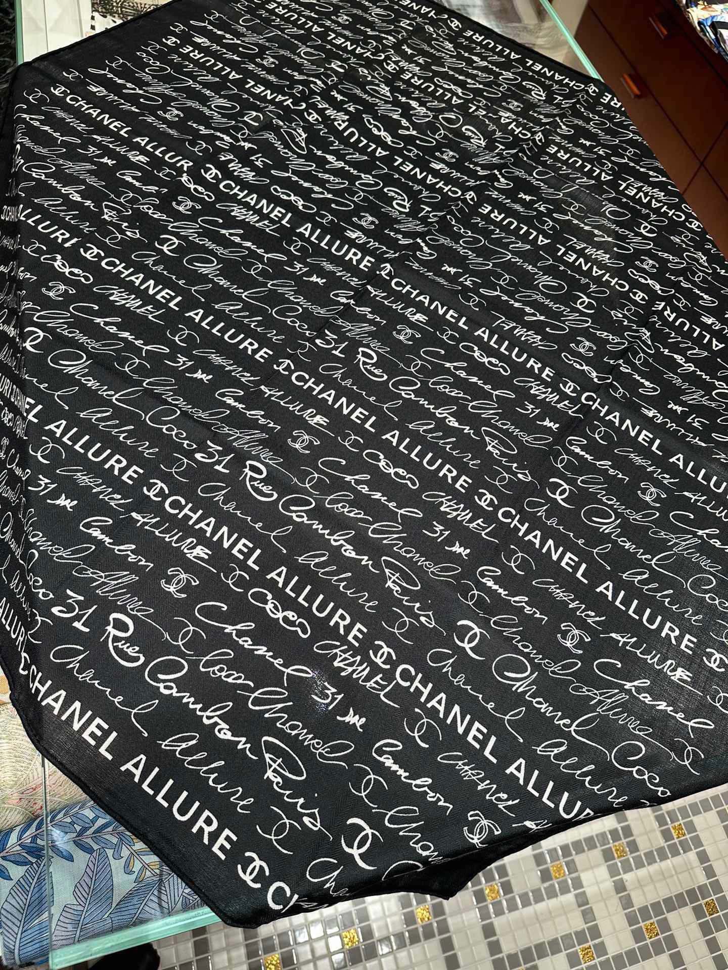 CC 25 Camellia Scarf 140CM Black White Cashmere 293082