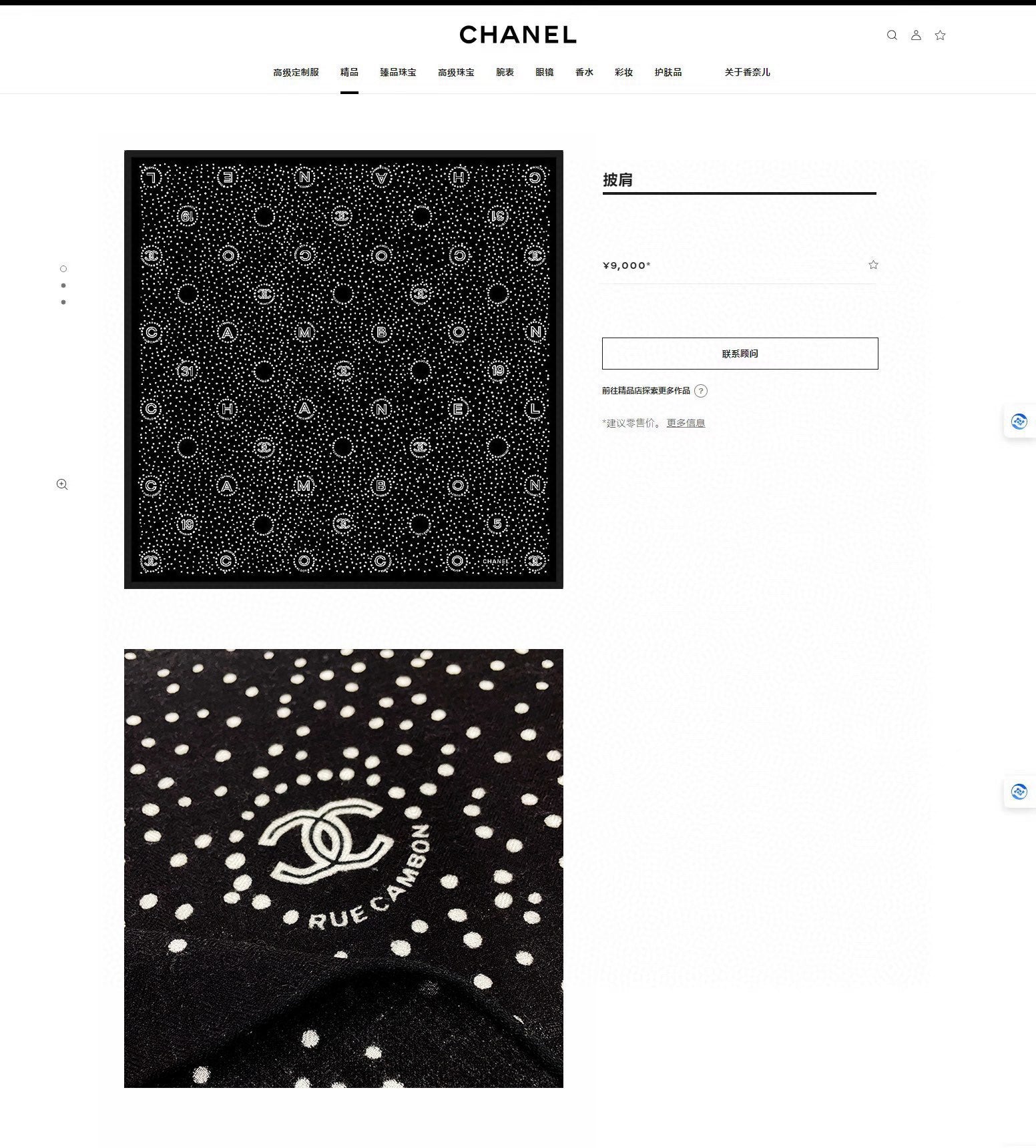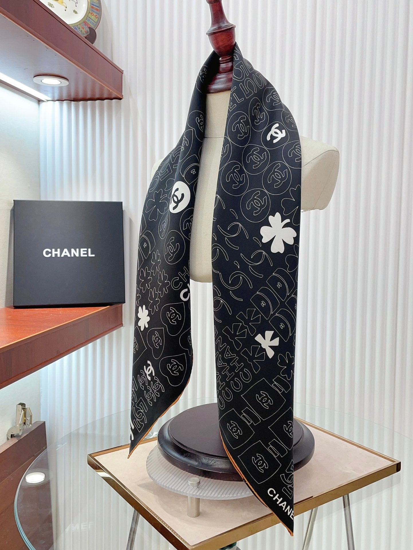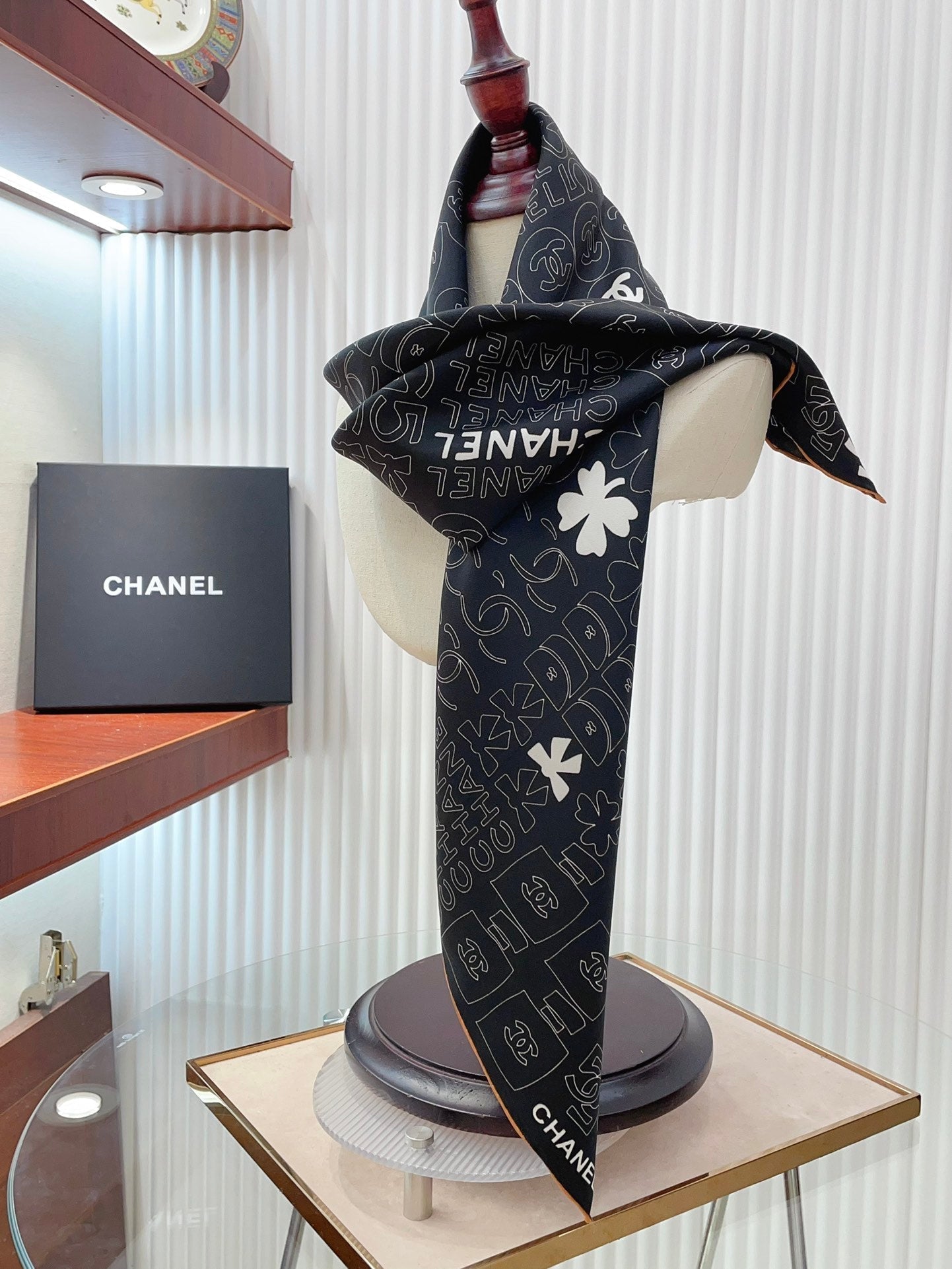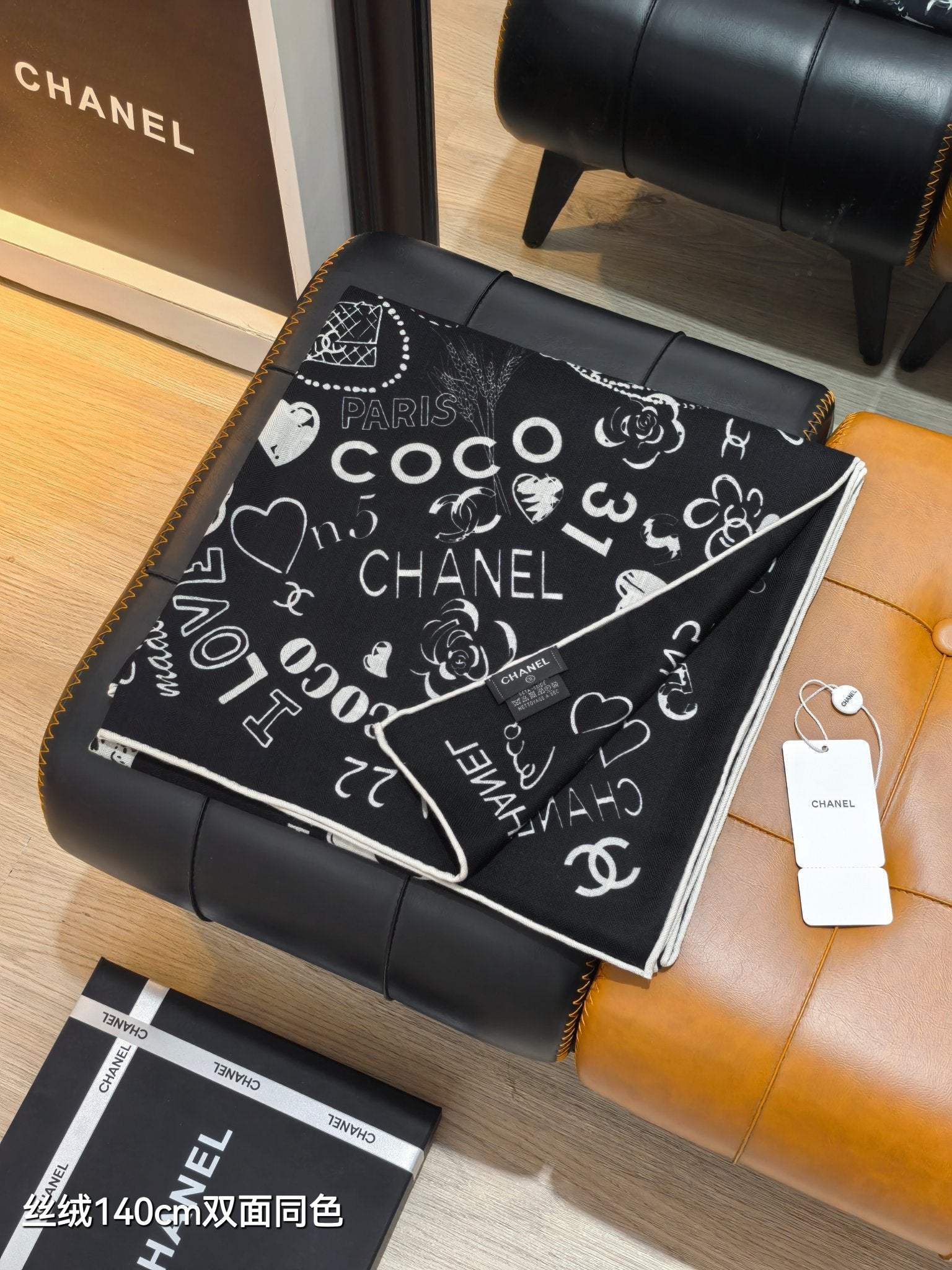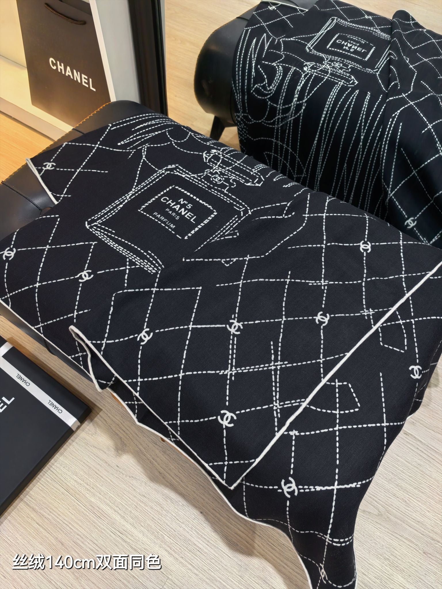 CC 25 Camellia Scarf 140CM Black White Cashmere 293082
