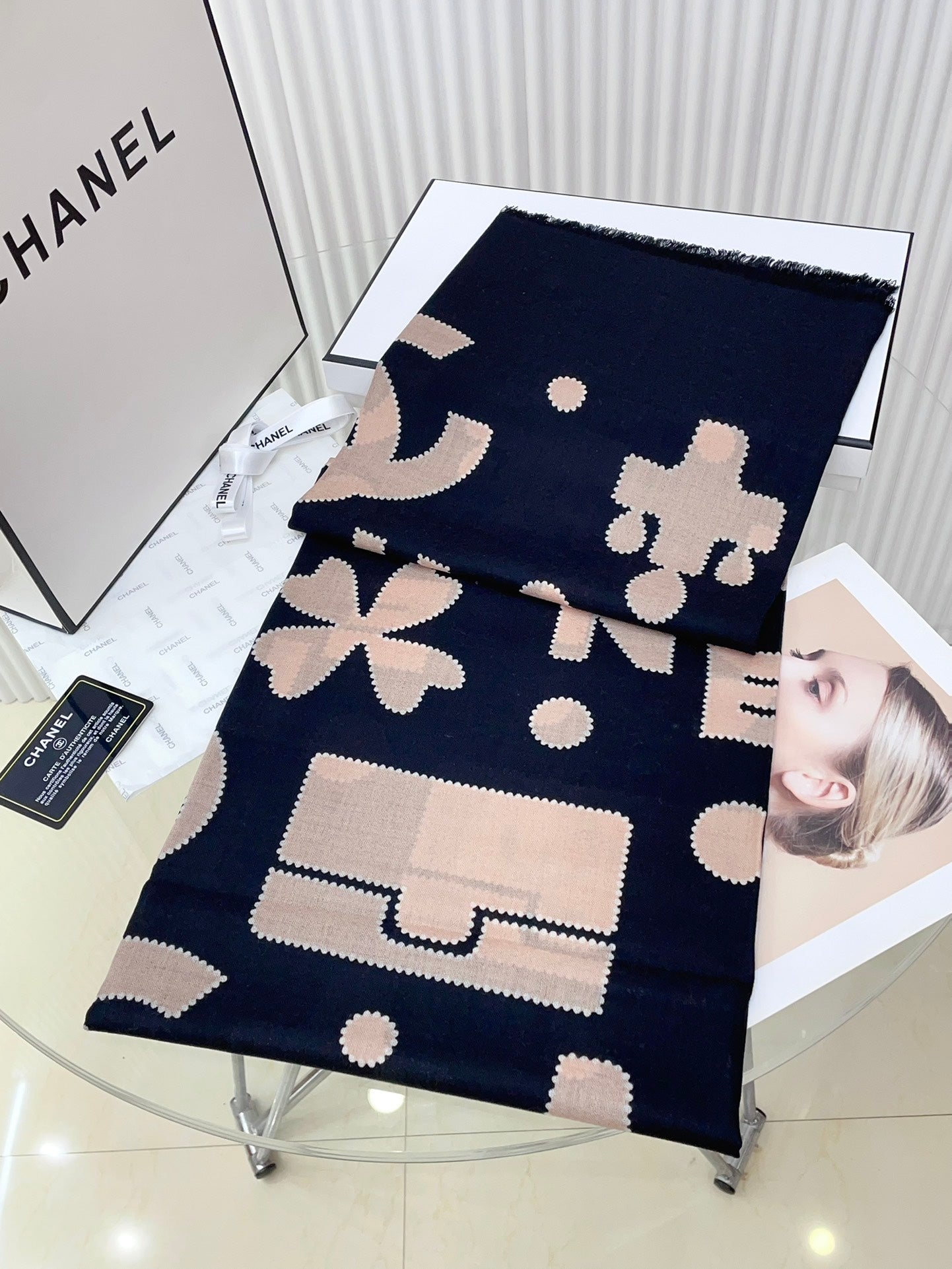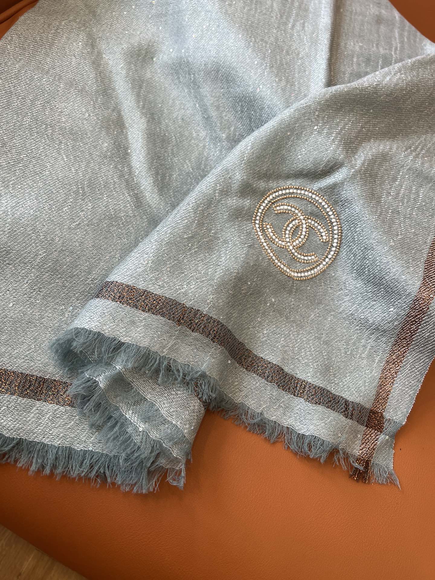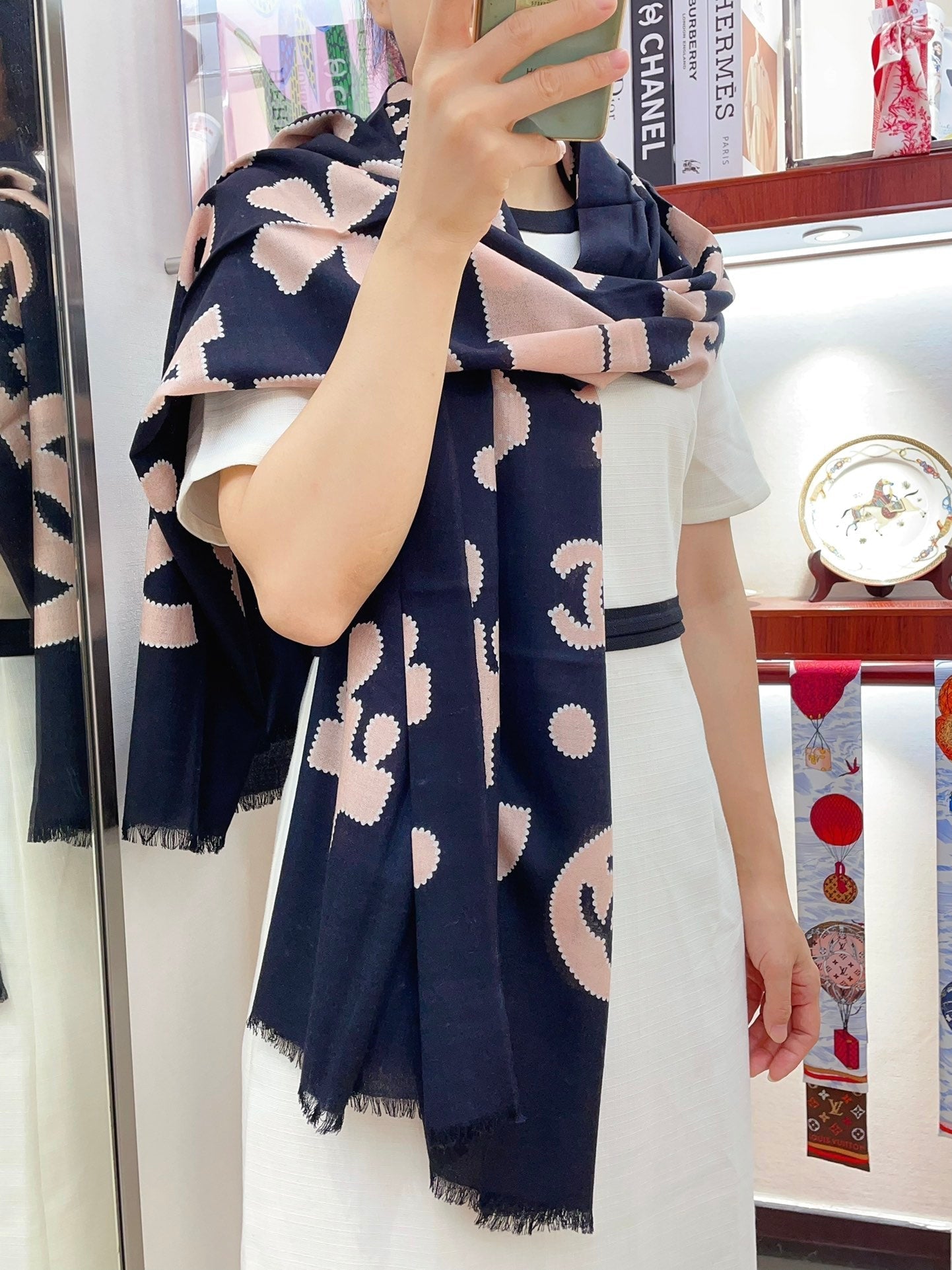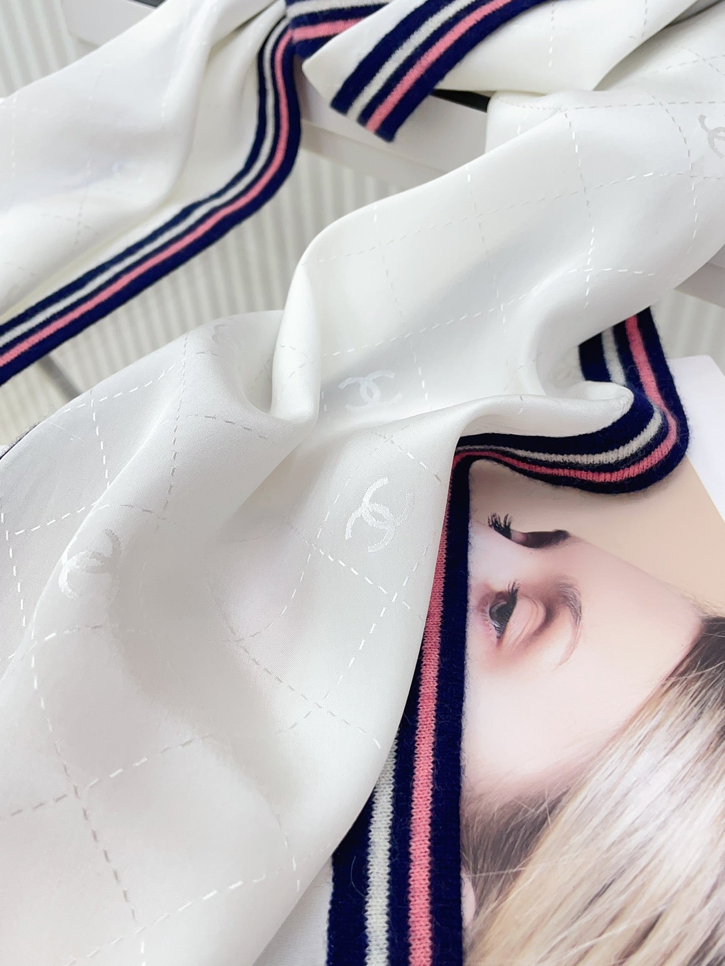CC 25 Newest Design Scarf 200 CM In White Black Blue Cashmere 292965