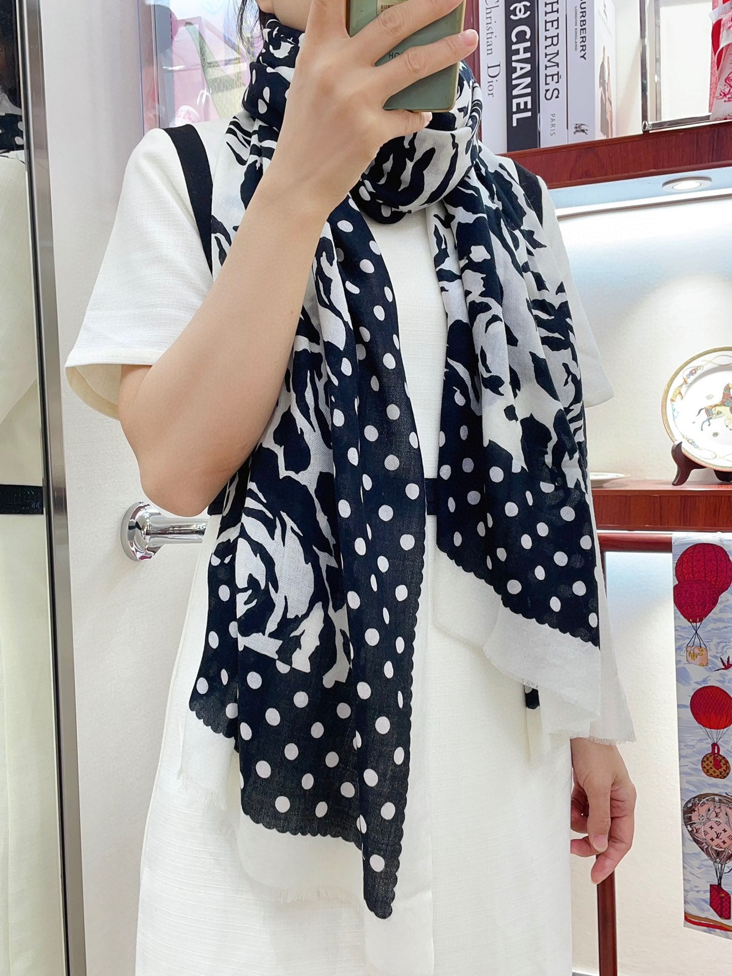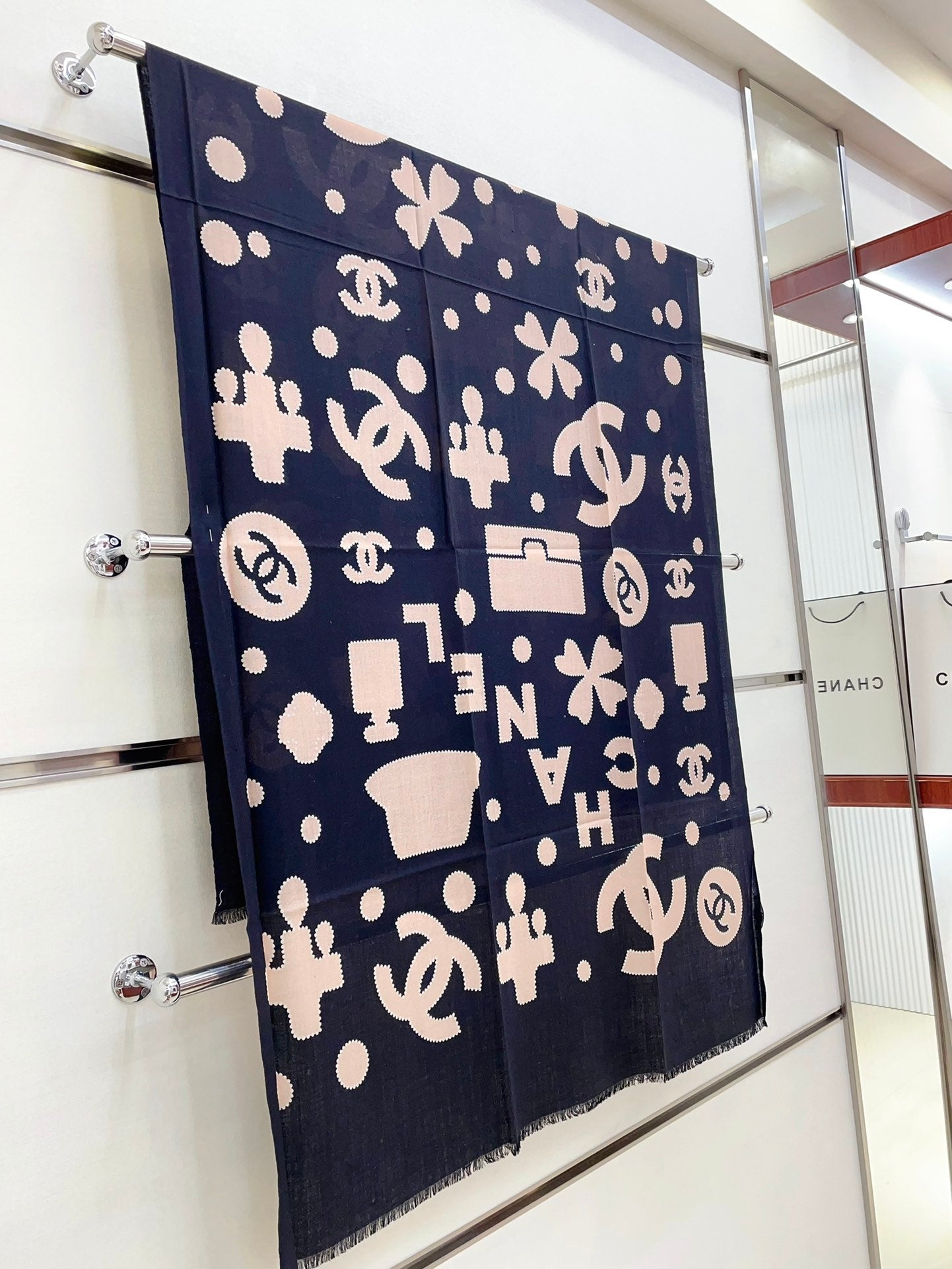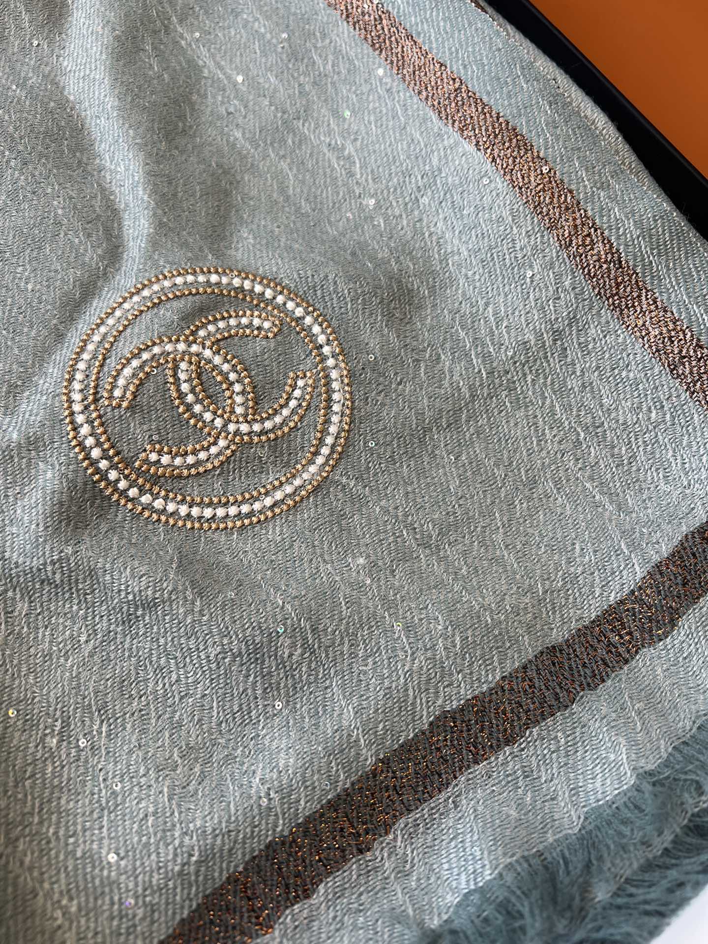 CC 25 Newest Design Scarf 200 CM In White Black Blue Cashmere 292965