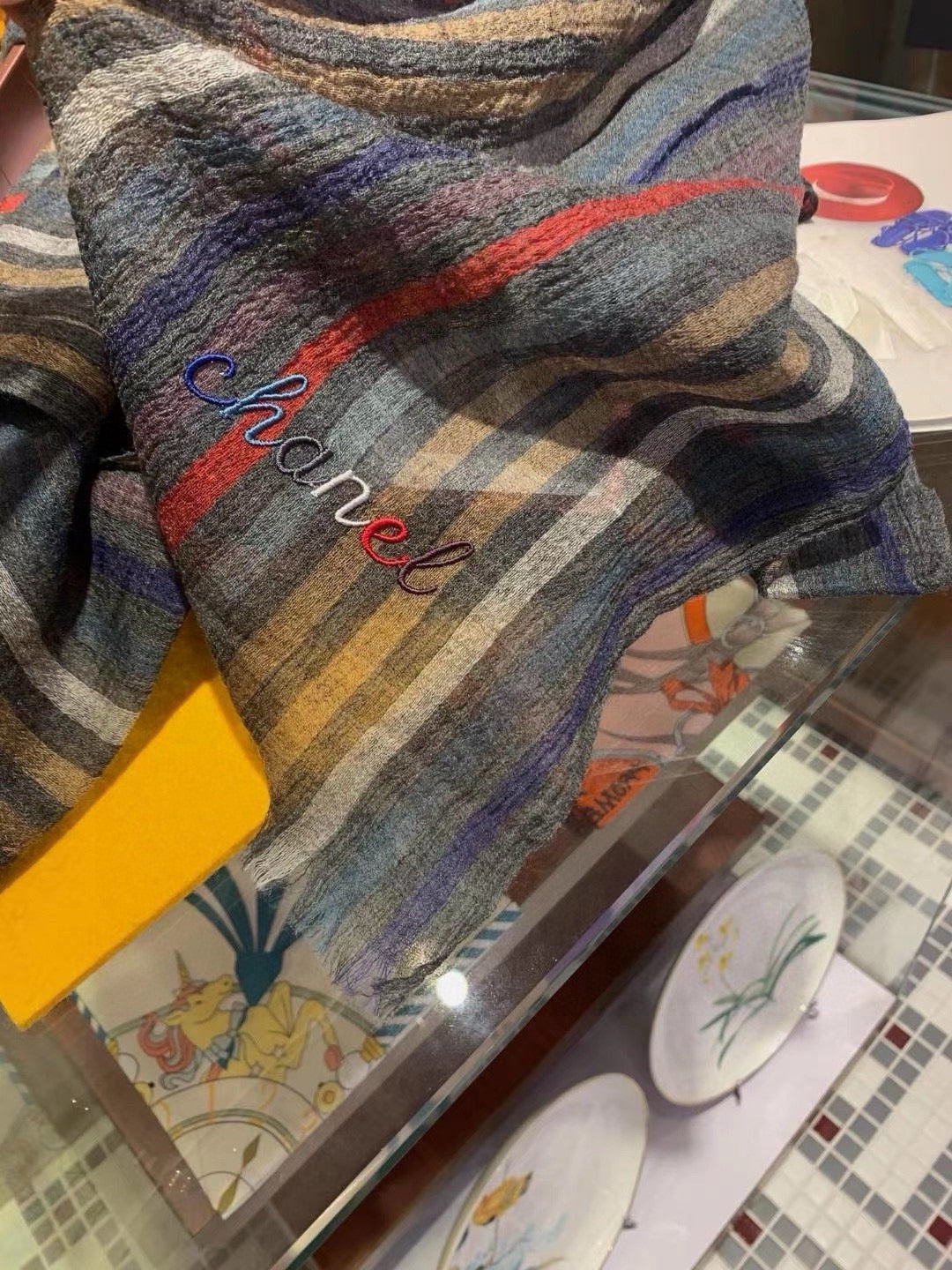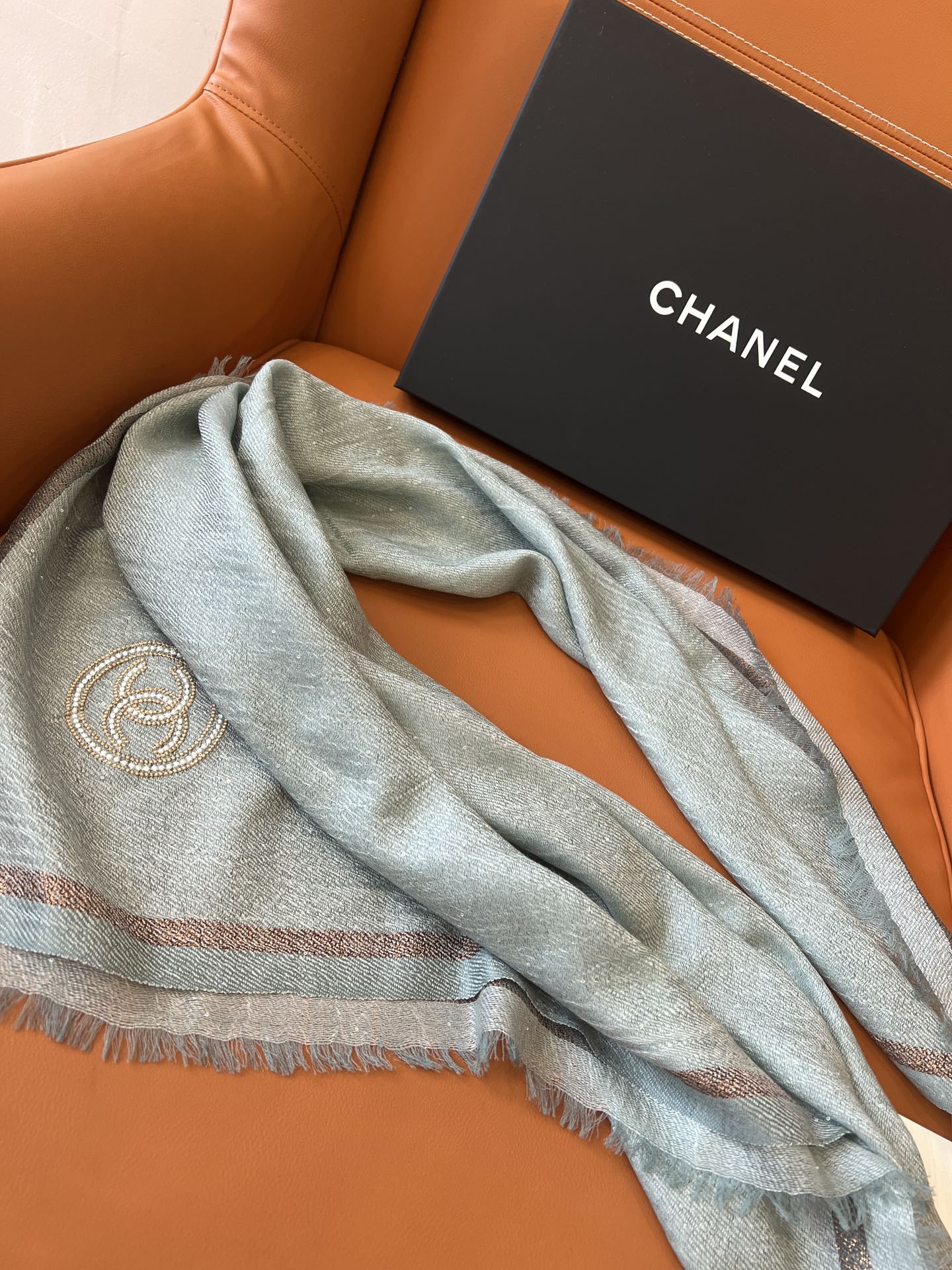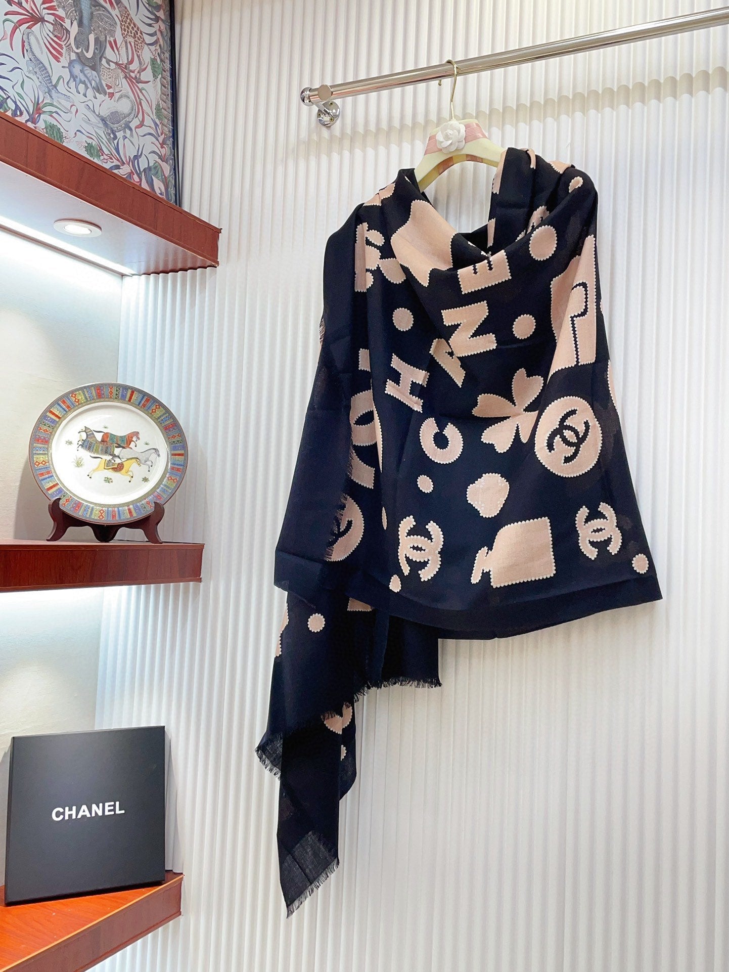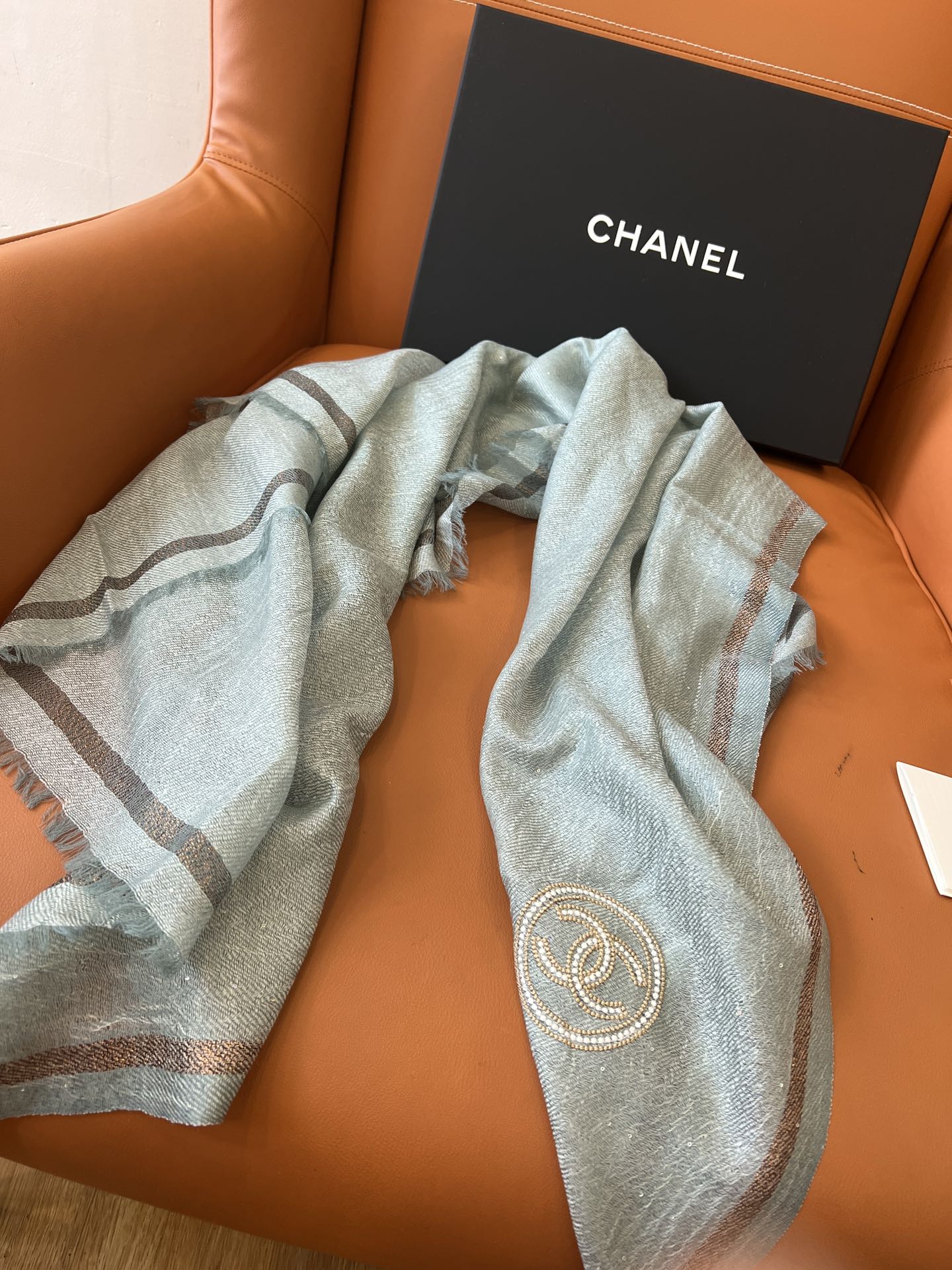 CC 25 Newest Design Scarf 200 CM In White Black Blue Cashmere 292965