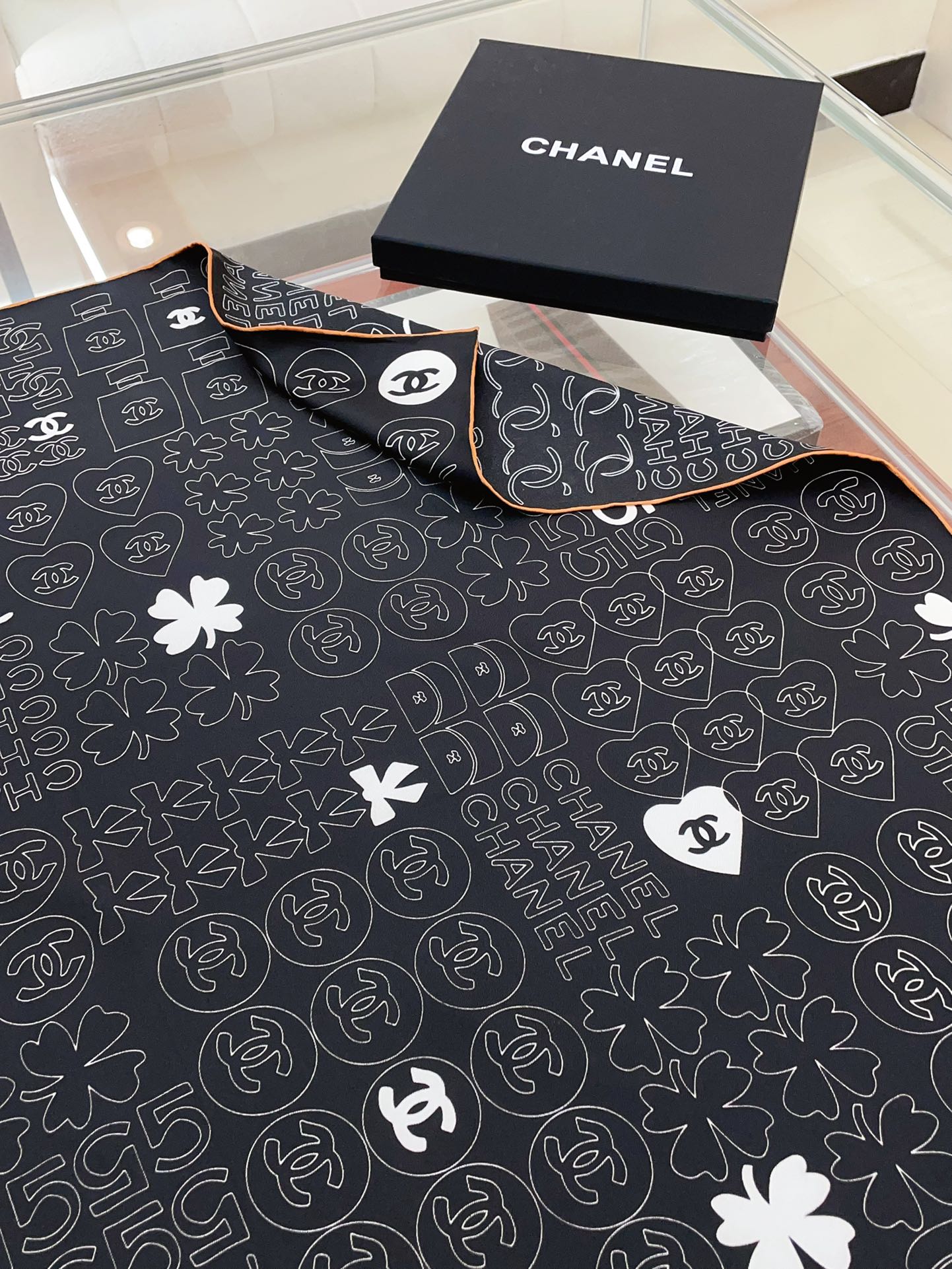 CC Square Scarf 90 CM In Black Mix White Silk Twill 350415