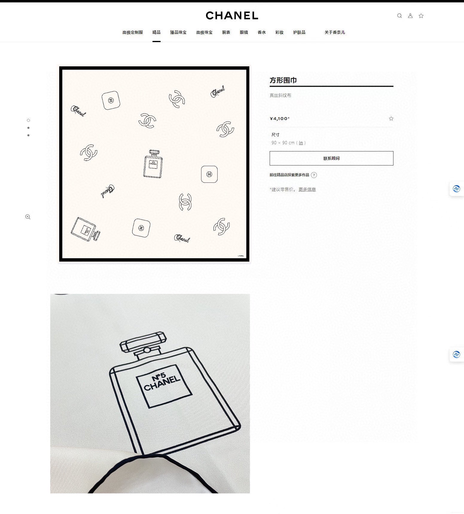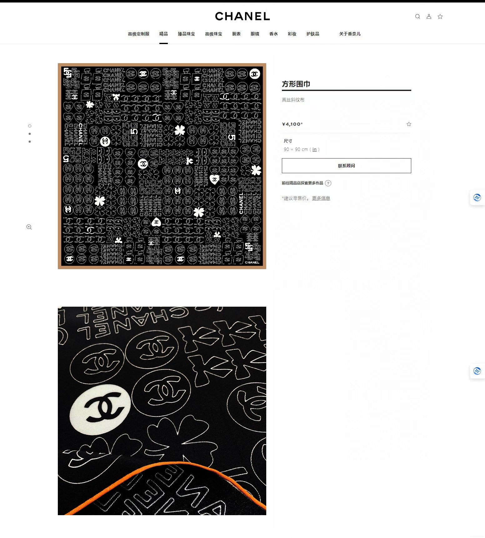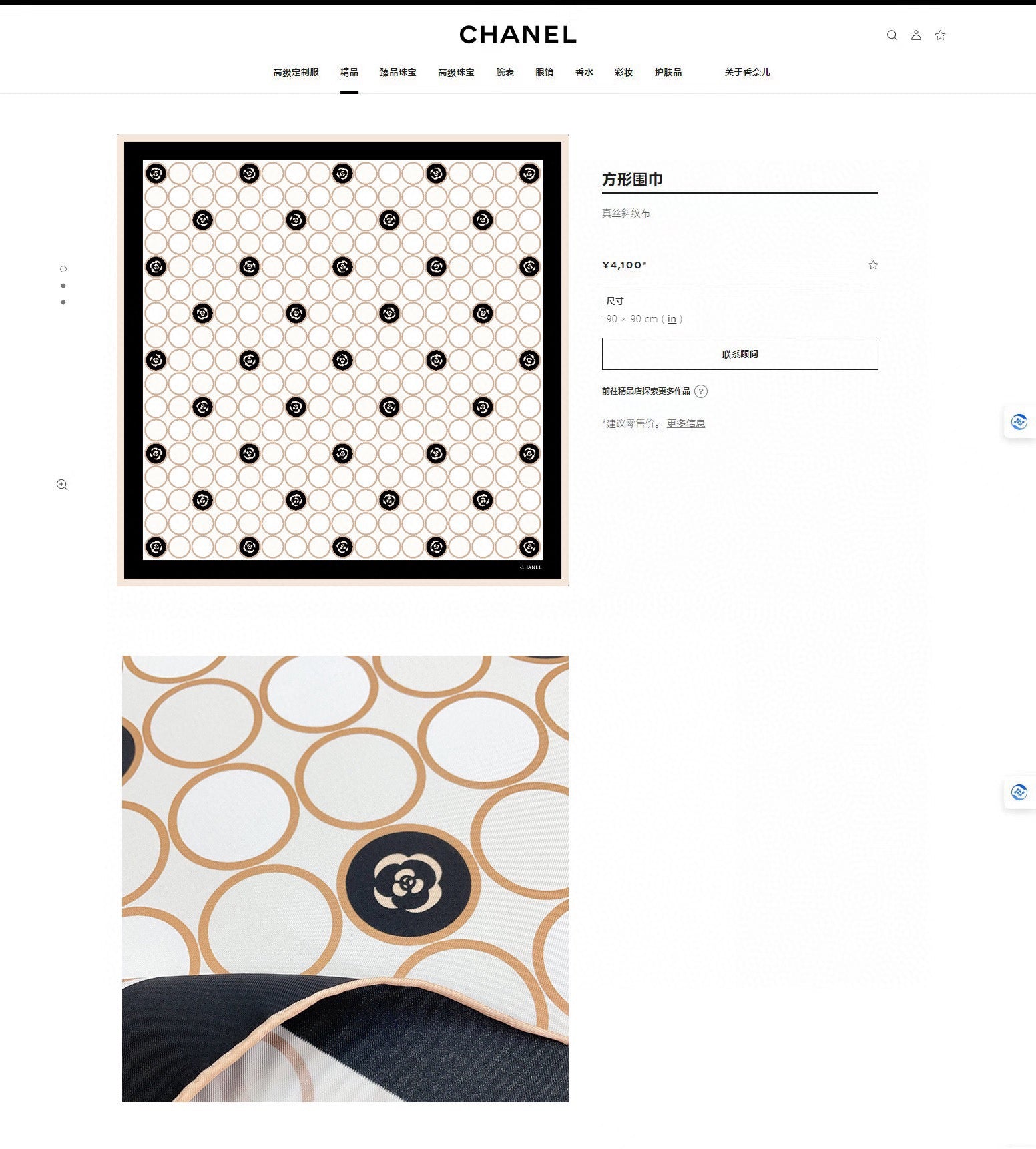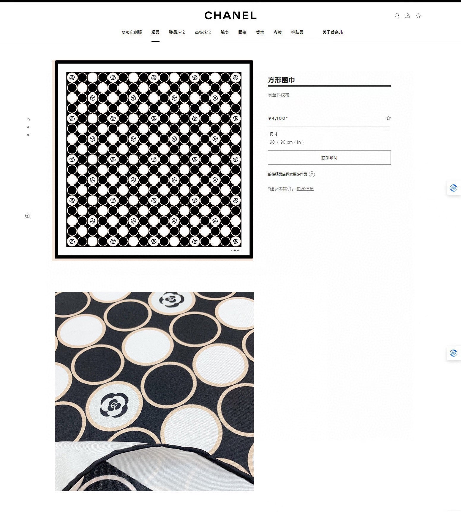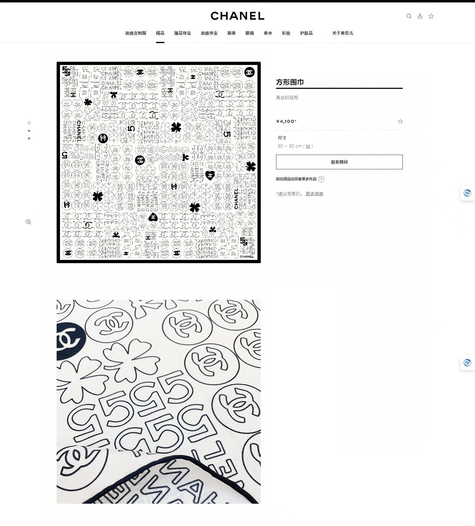 CC 25 Camellia Scarf 140CM White Black Cashmere 293083