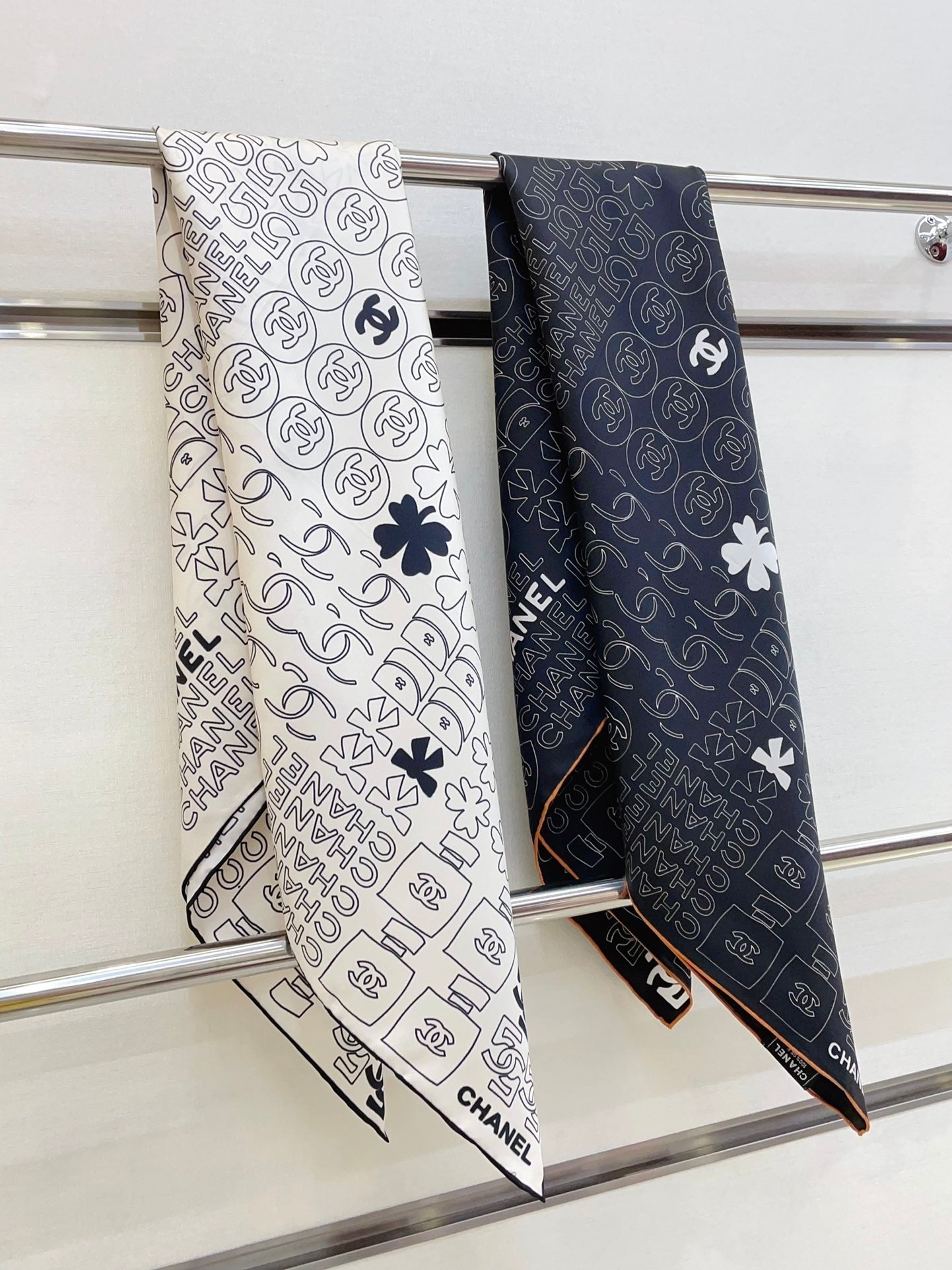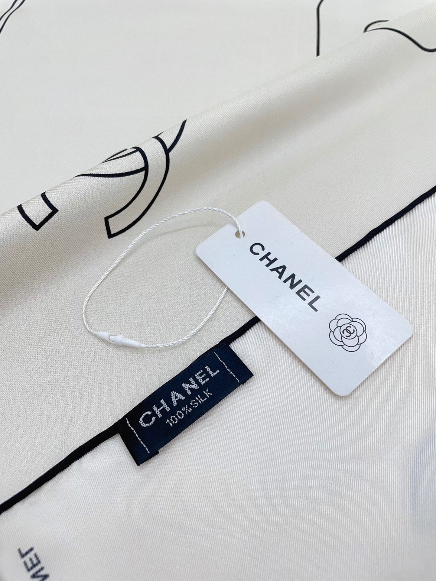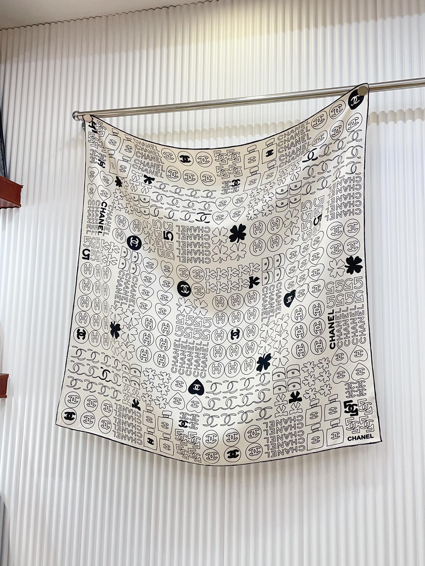 CC Square Scarf 90 CM In White Beige Mix Black Silk Twill 350414