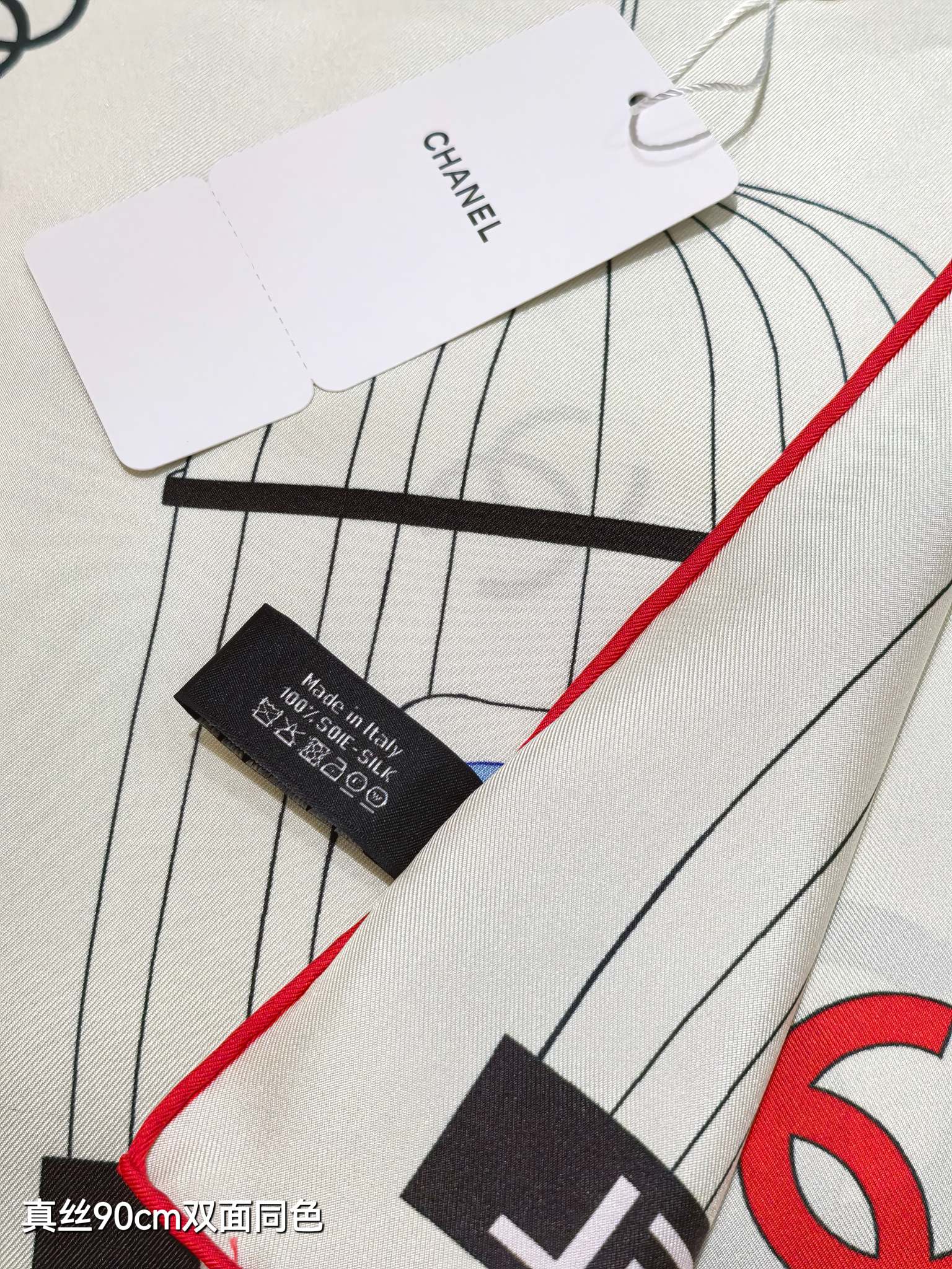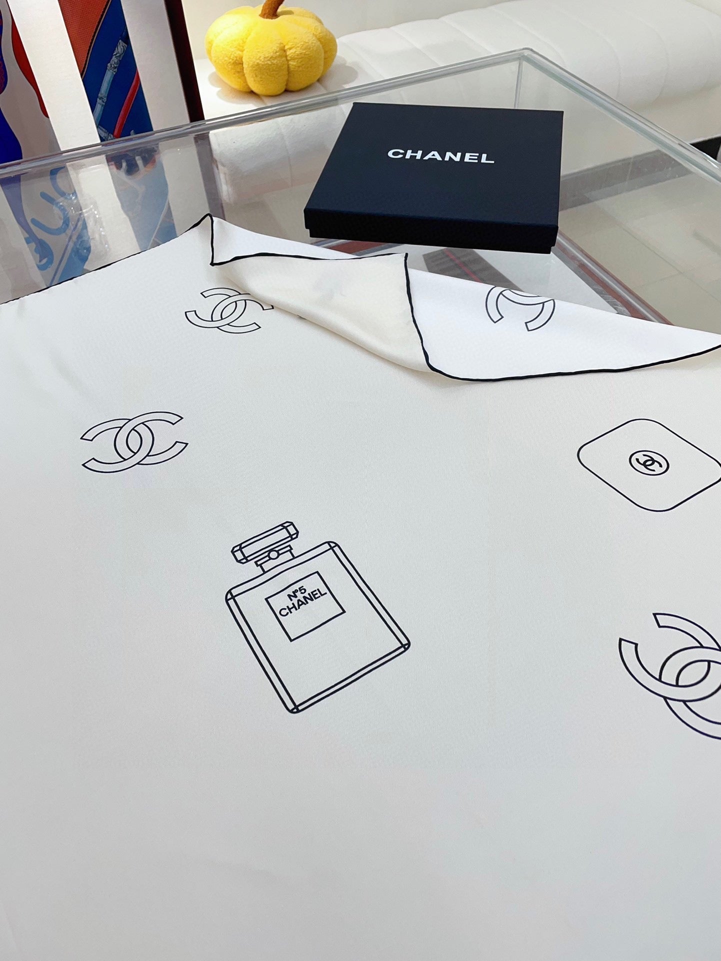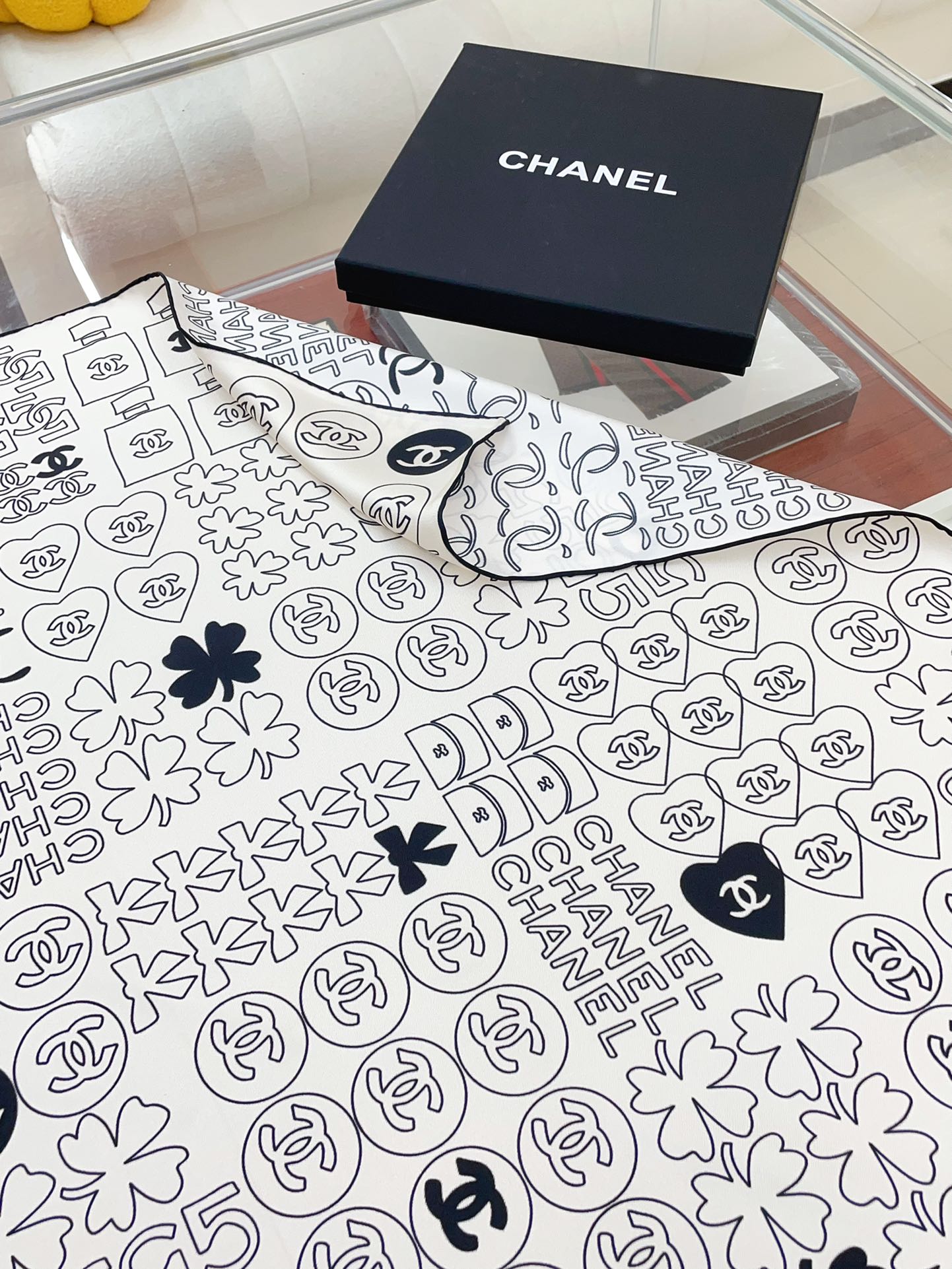 CC Square Scarf 90 CM In White Beige Mix Black Silk Twill 350414