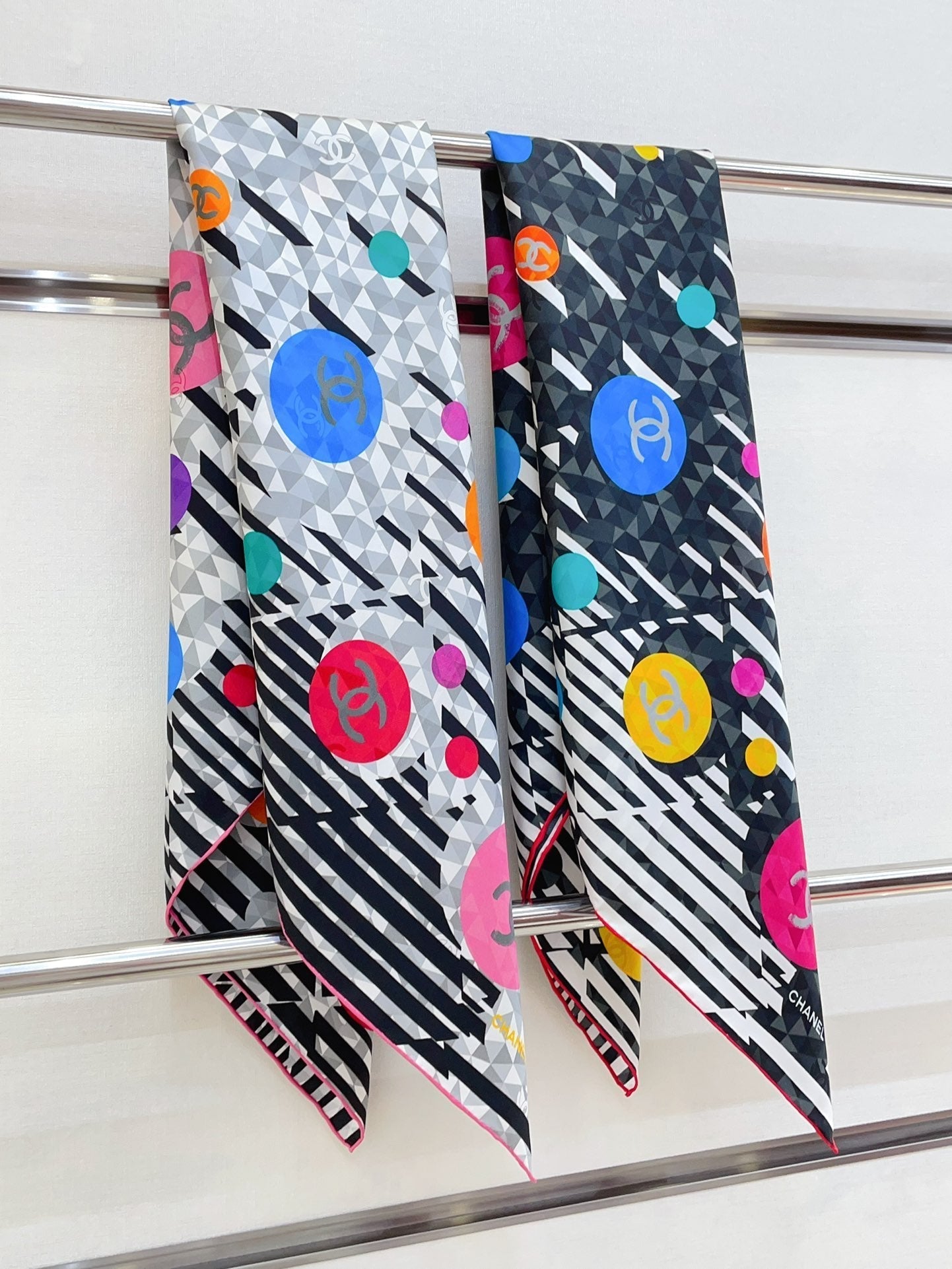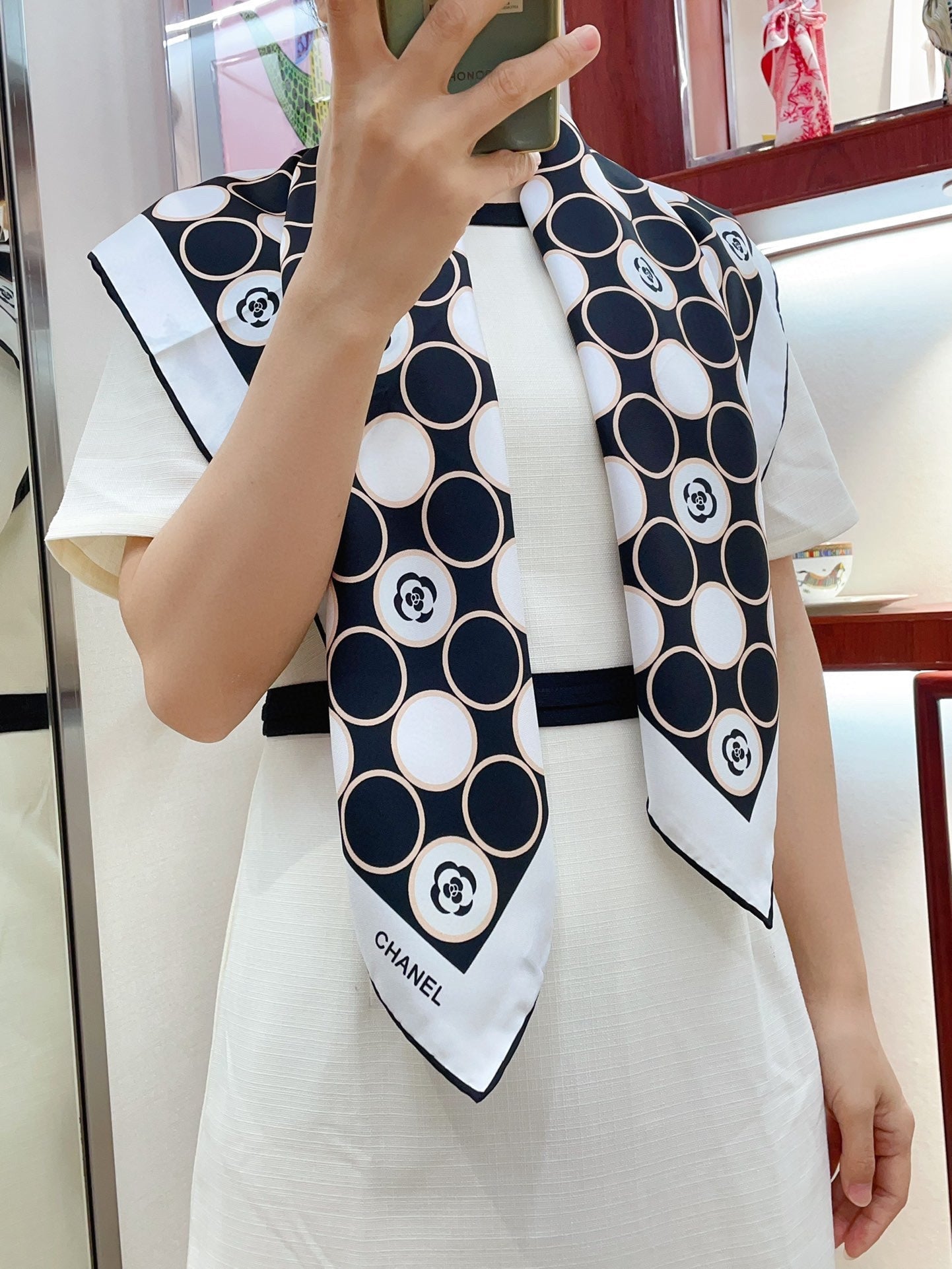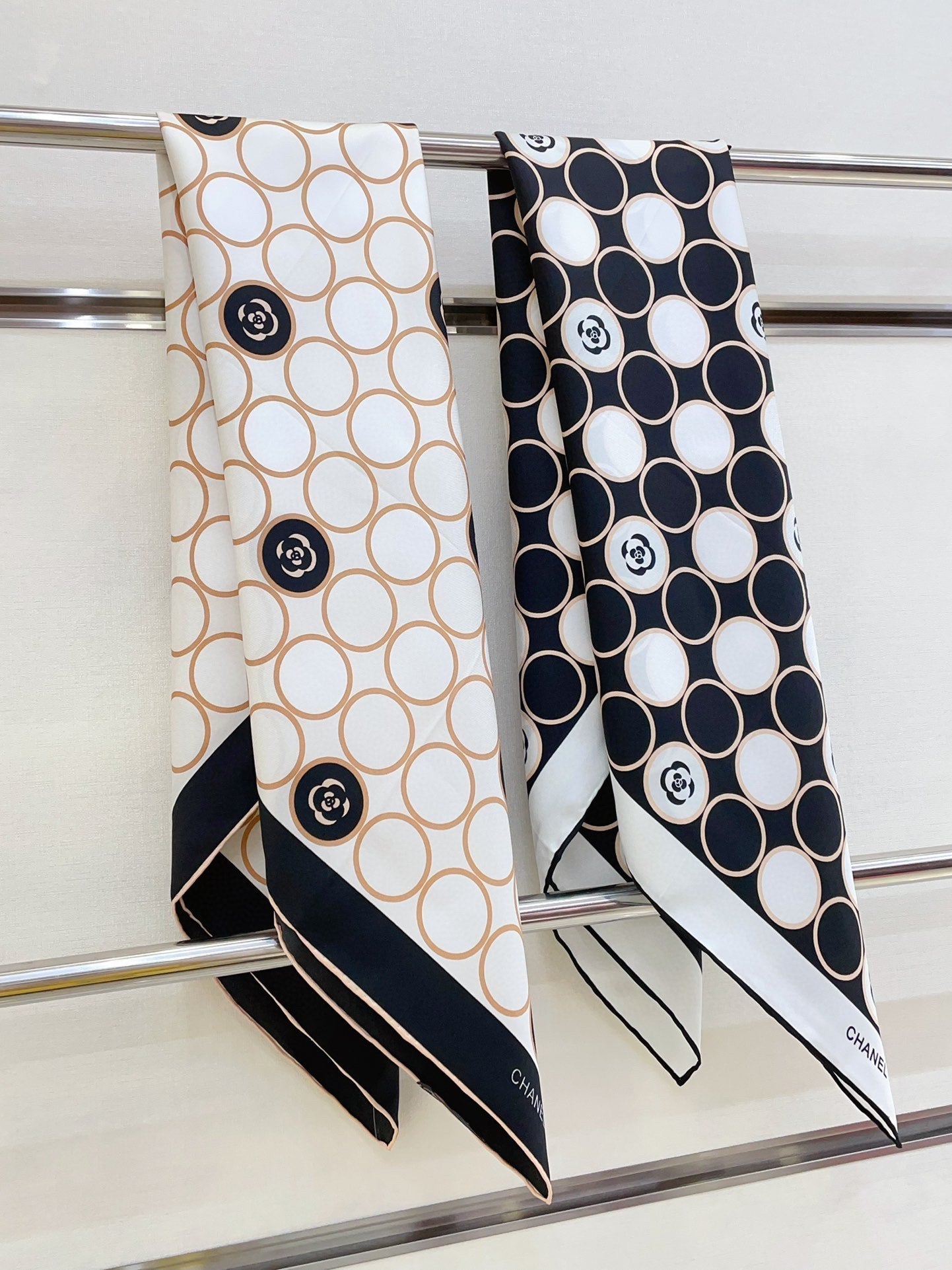 CC Scarf 110 CM In White Black Polka Dot Silk 348706