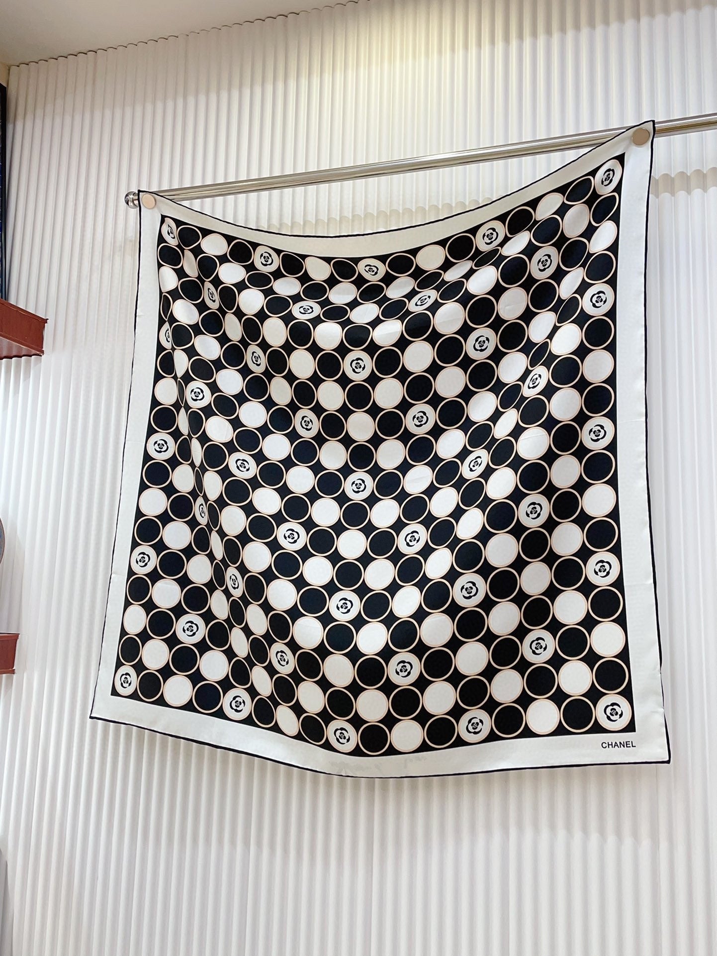 CC Square Scarf 140 CM In Black White Polka Dot Cashmere Silk 337147
