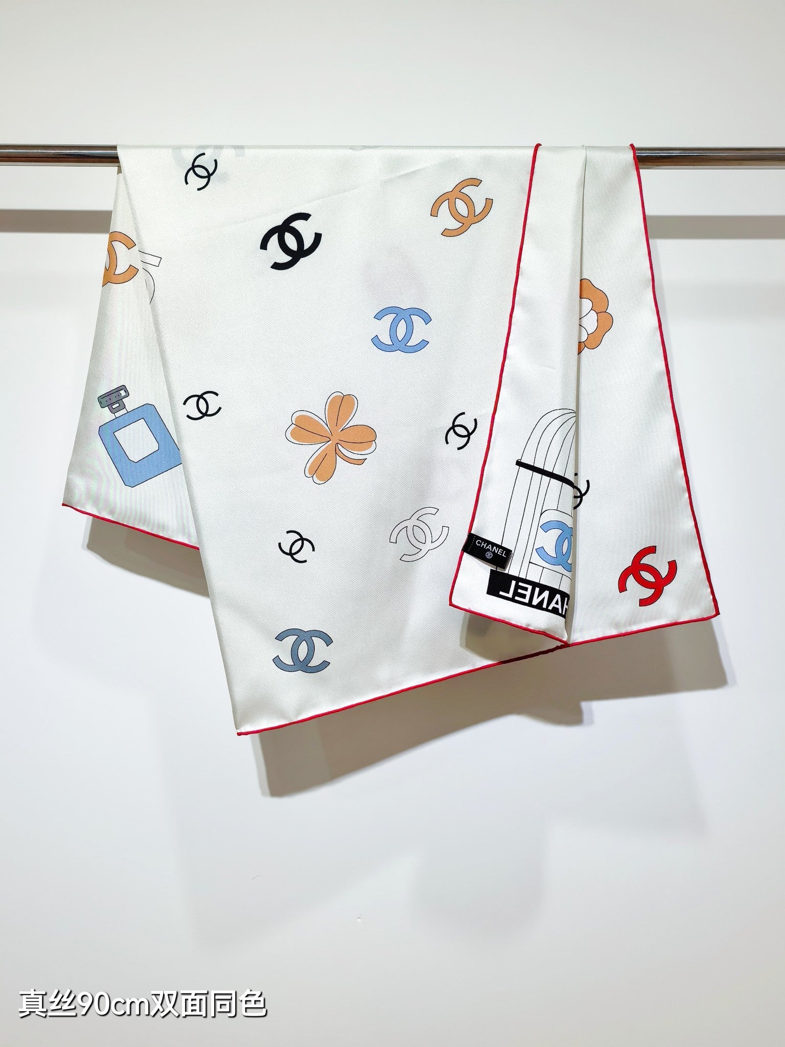CC Square Scarf 90 CM In White Silk Twill 335845