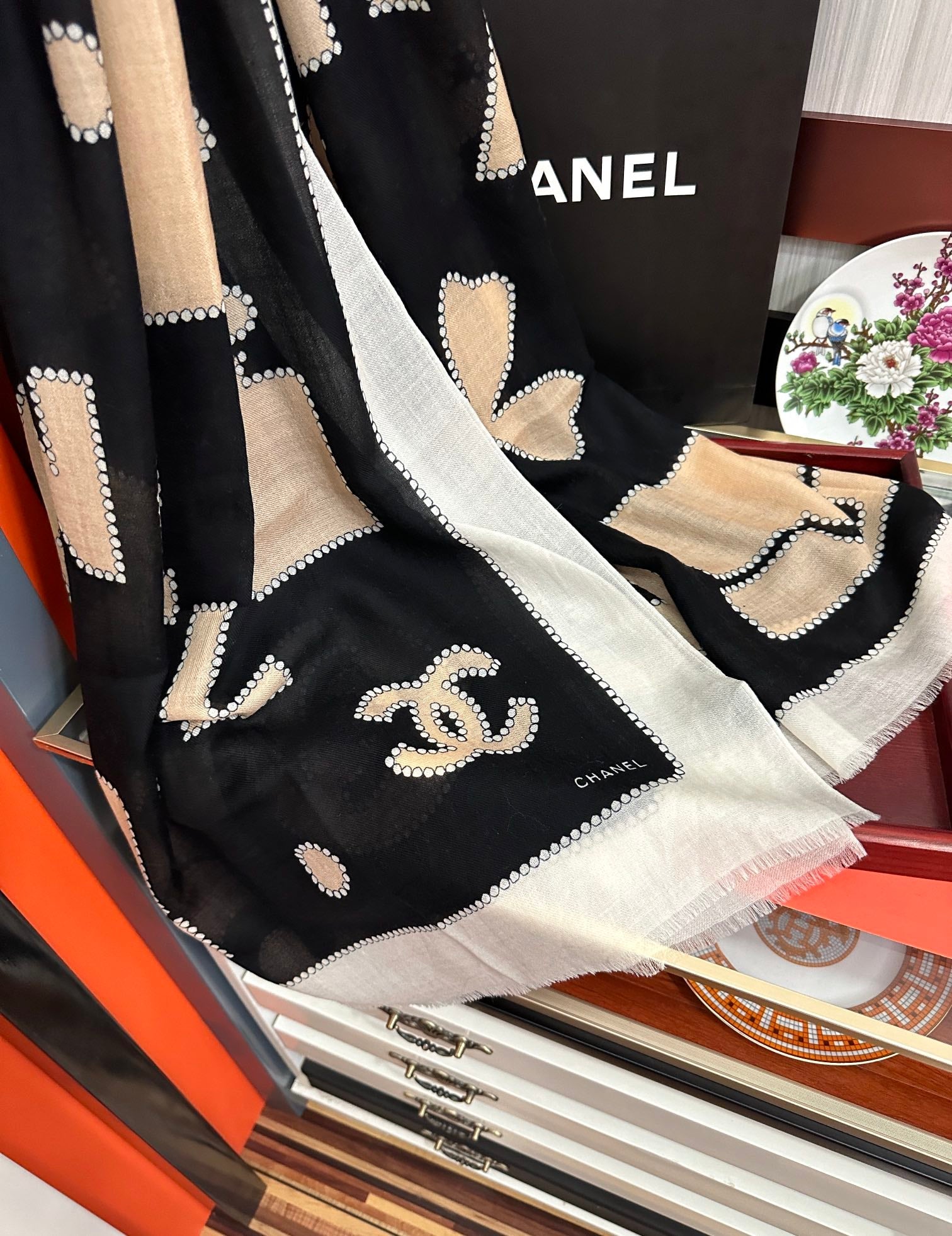 CC 25 Newest Design Scarf 200 CM In White Black Beige Cashmere 292964
