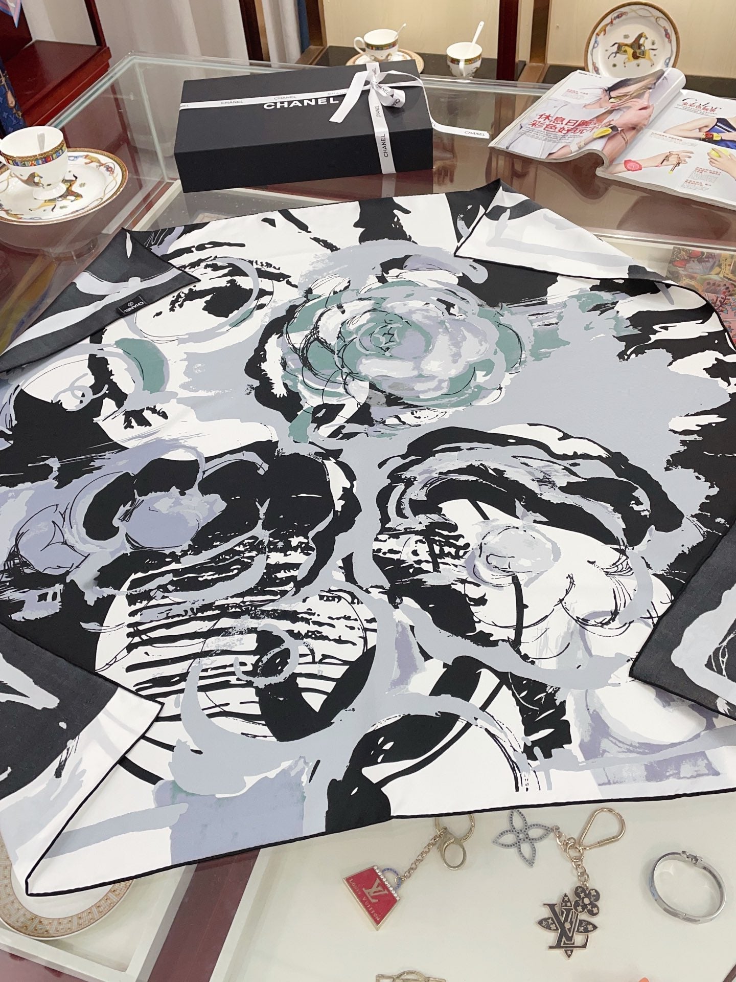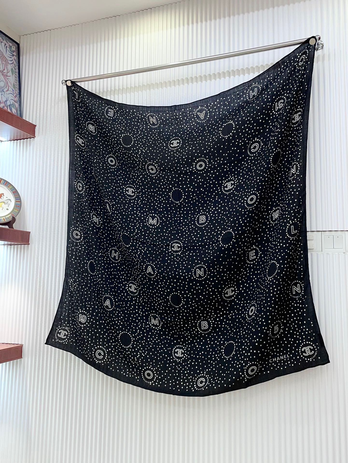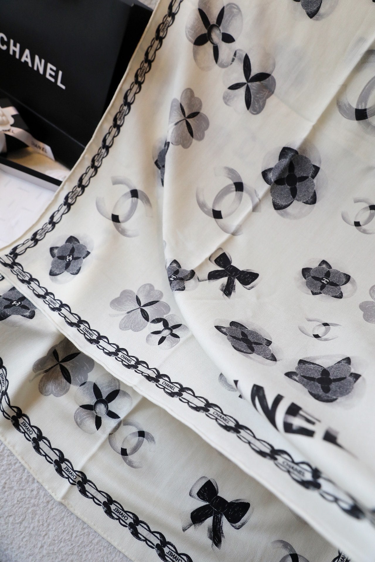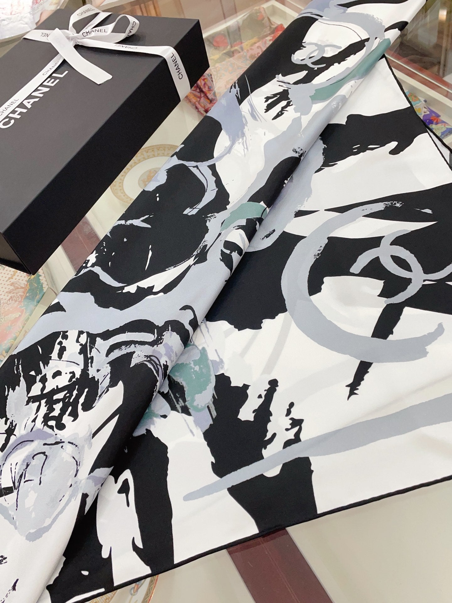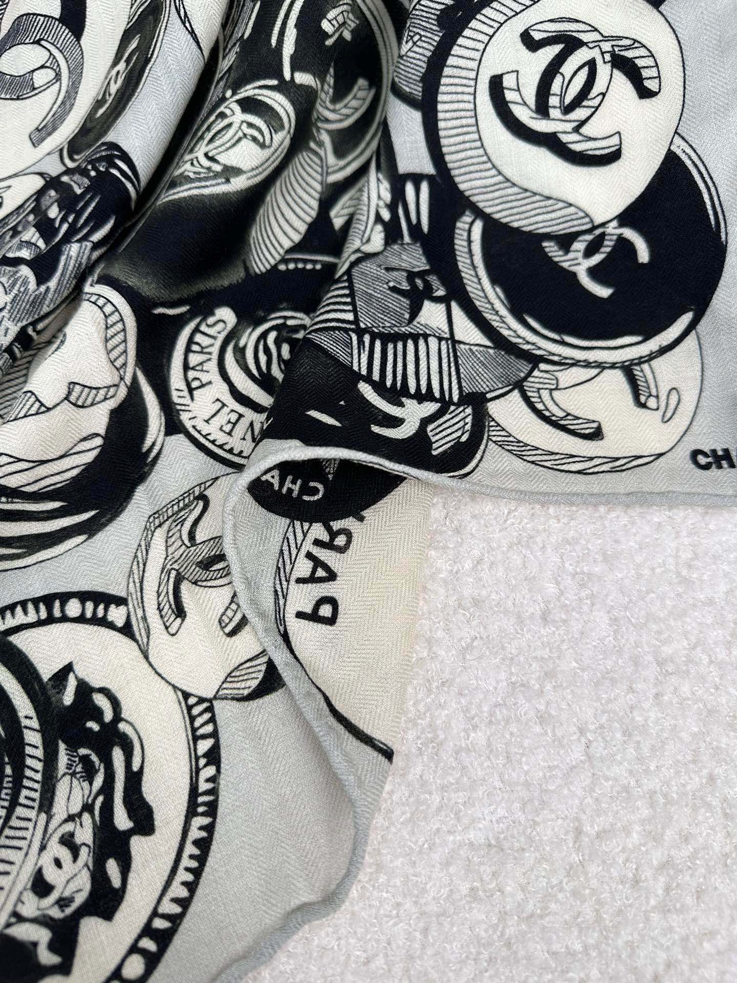 CC Square Scarf 140 CM In Black White Cashmere Silk 408418