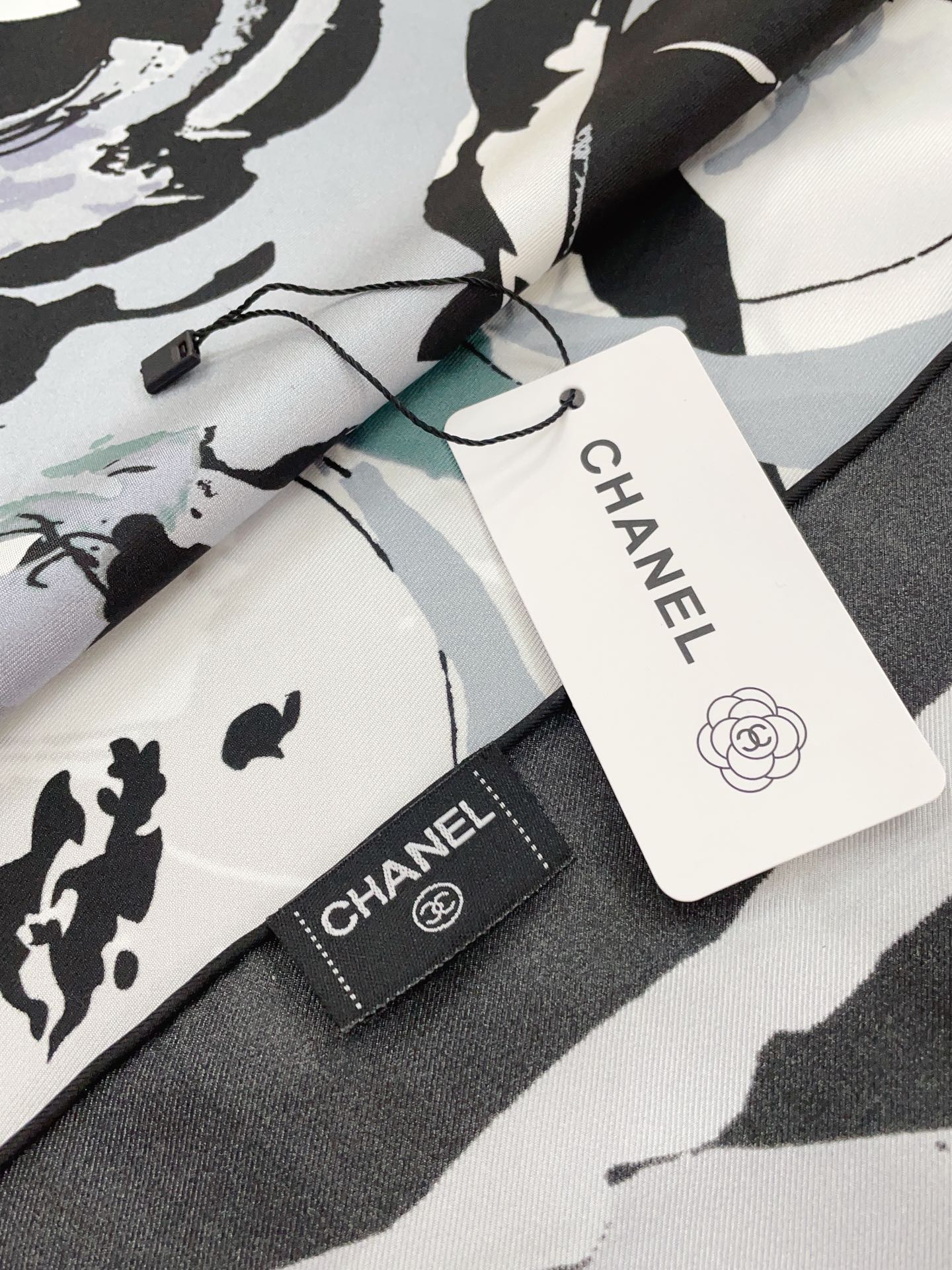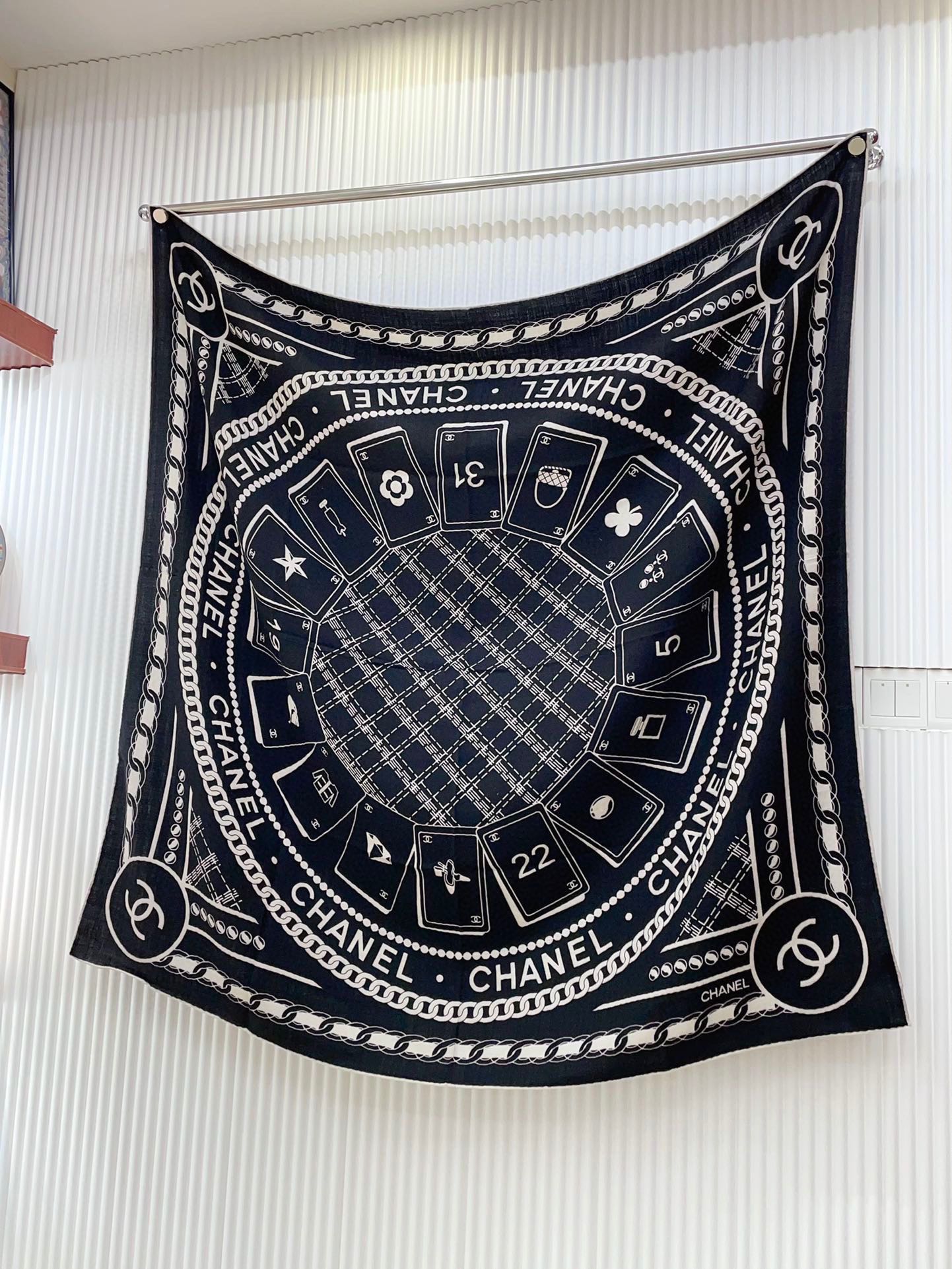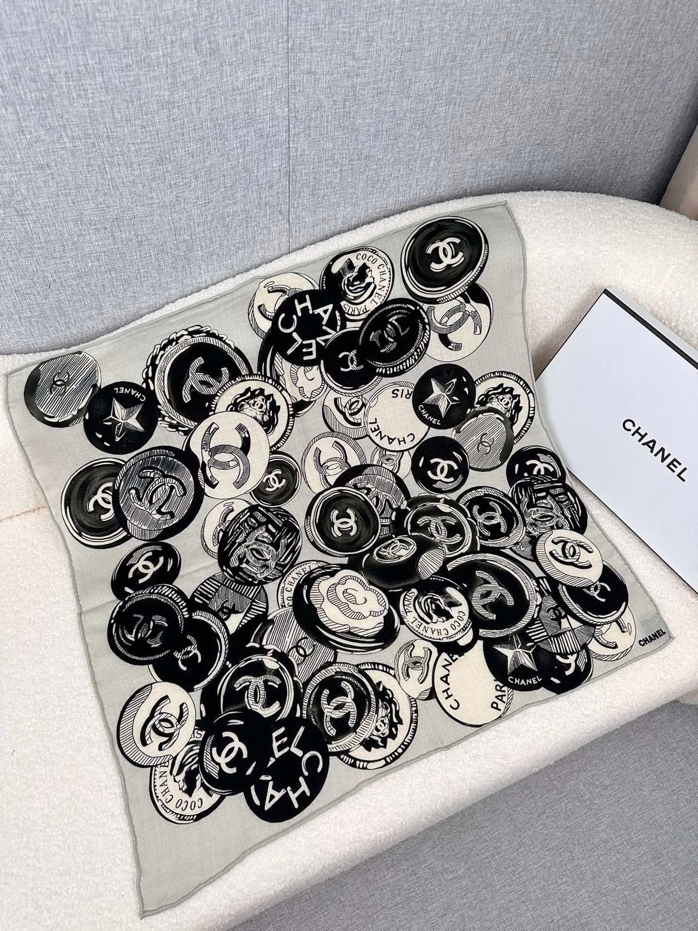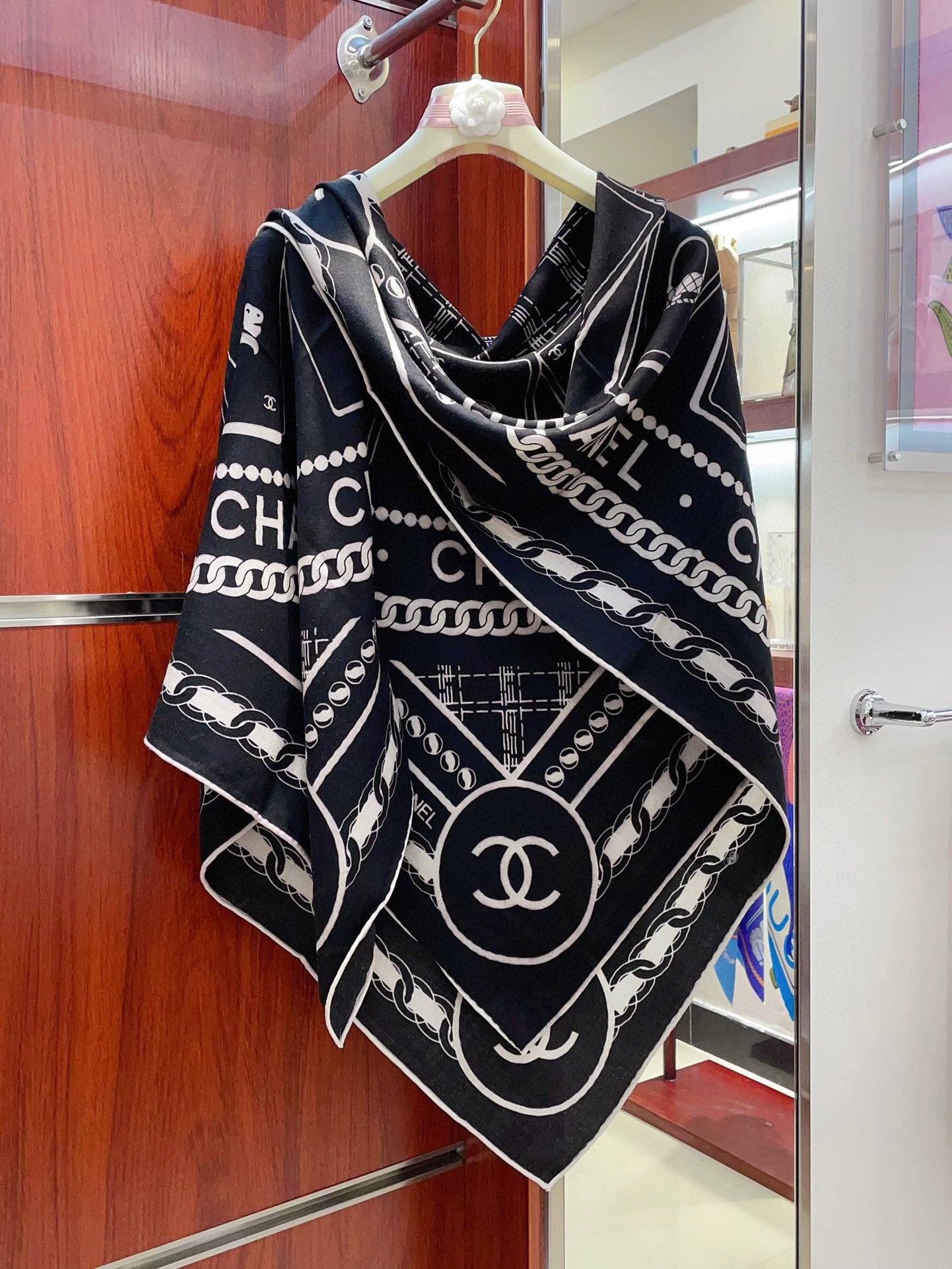CC Square Scarf 140 CM In Black White Cashmere Silk 408418