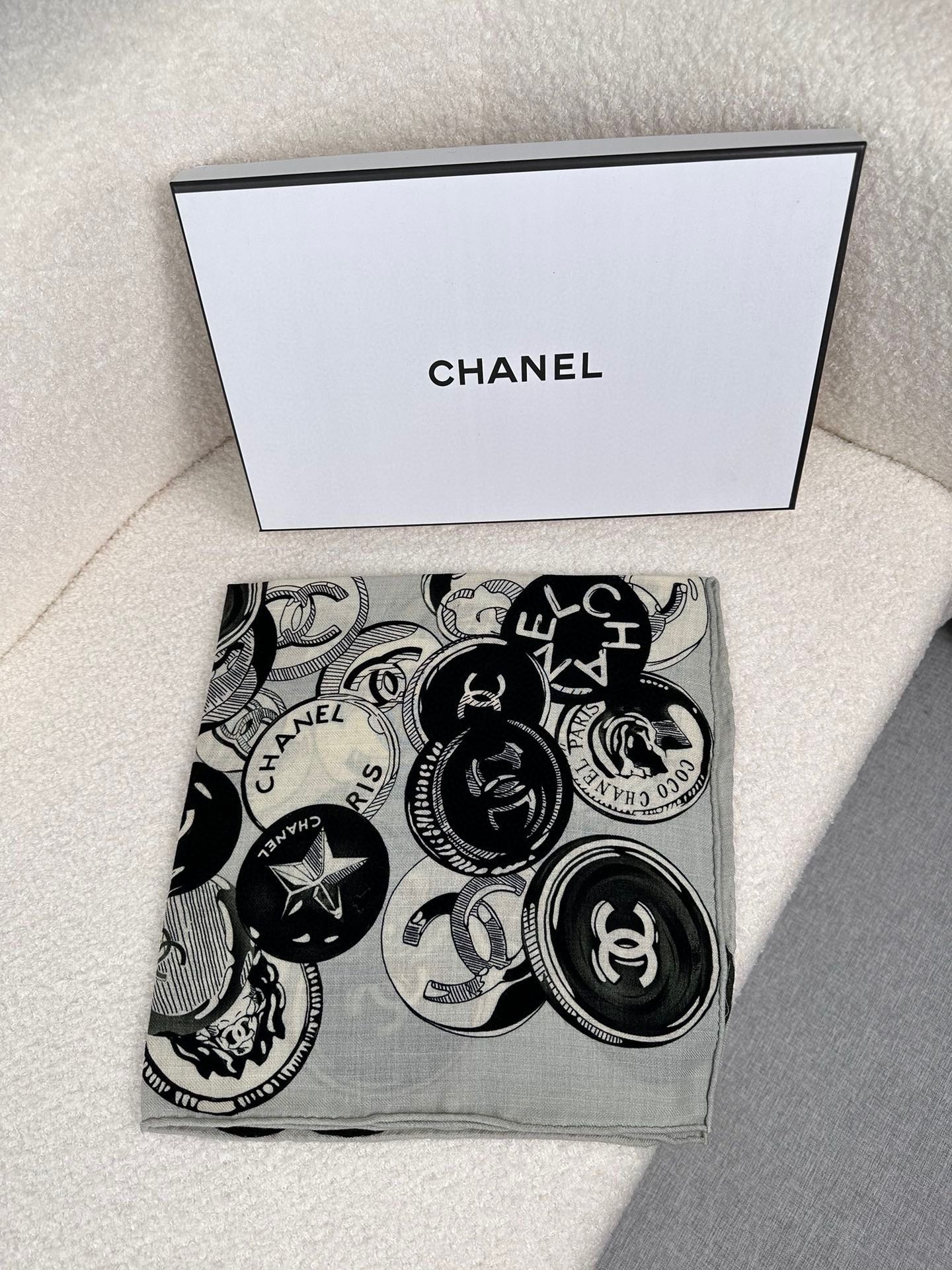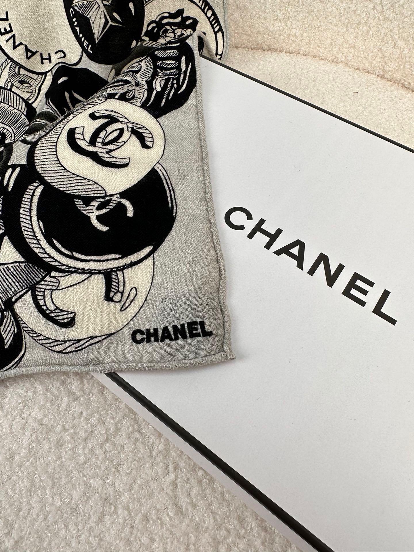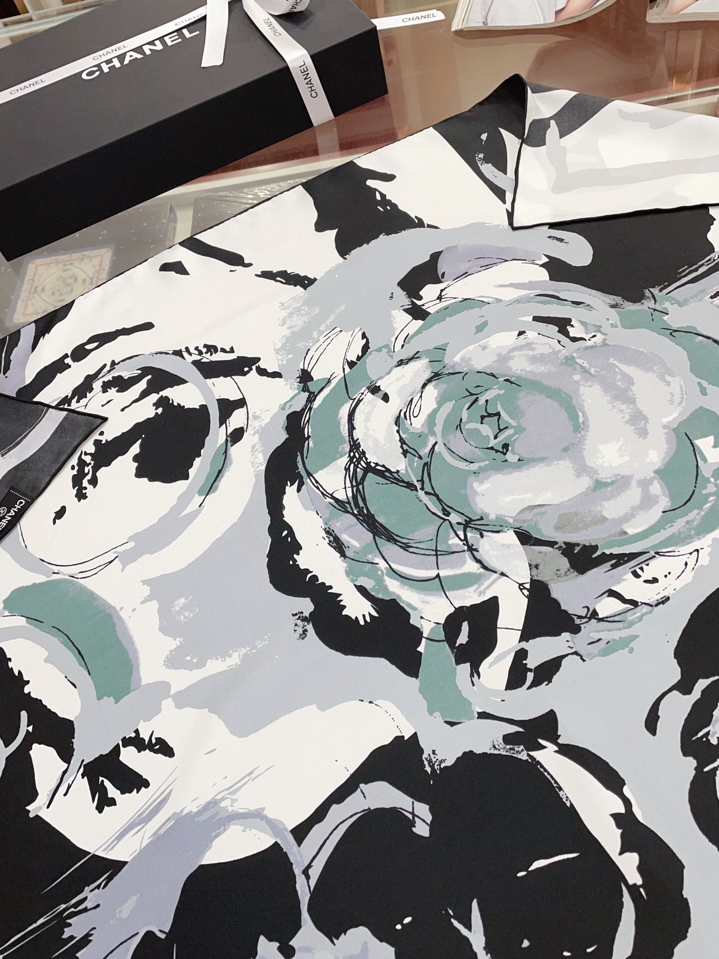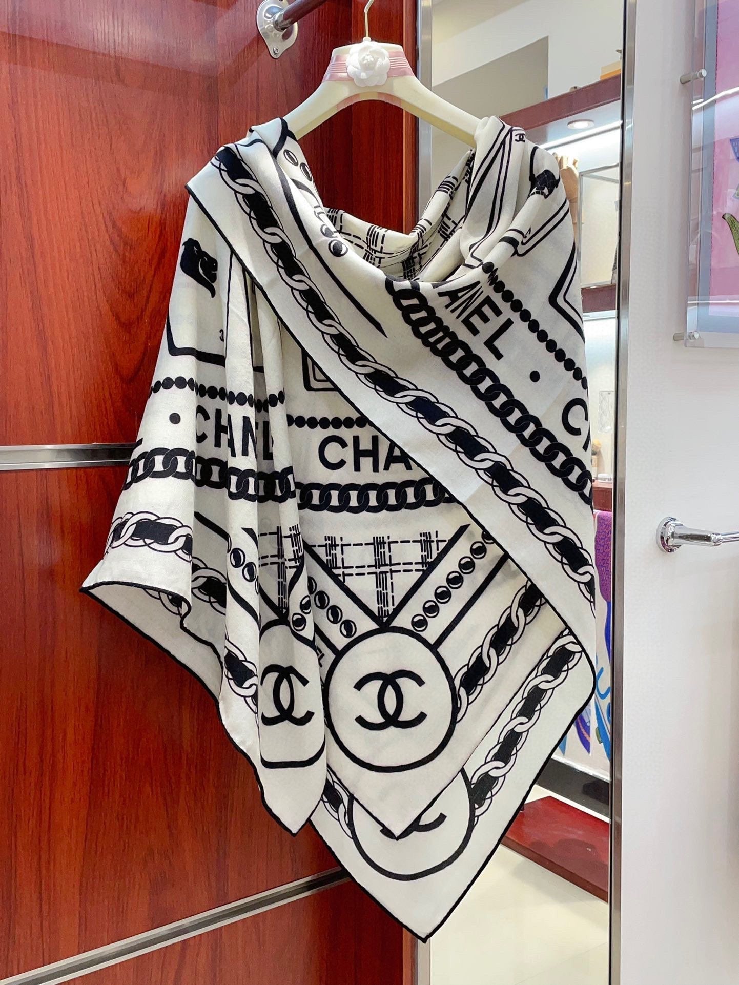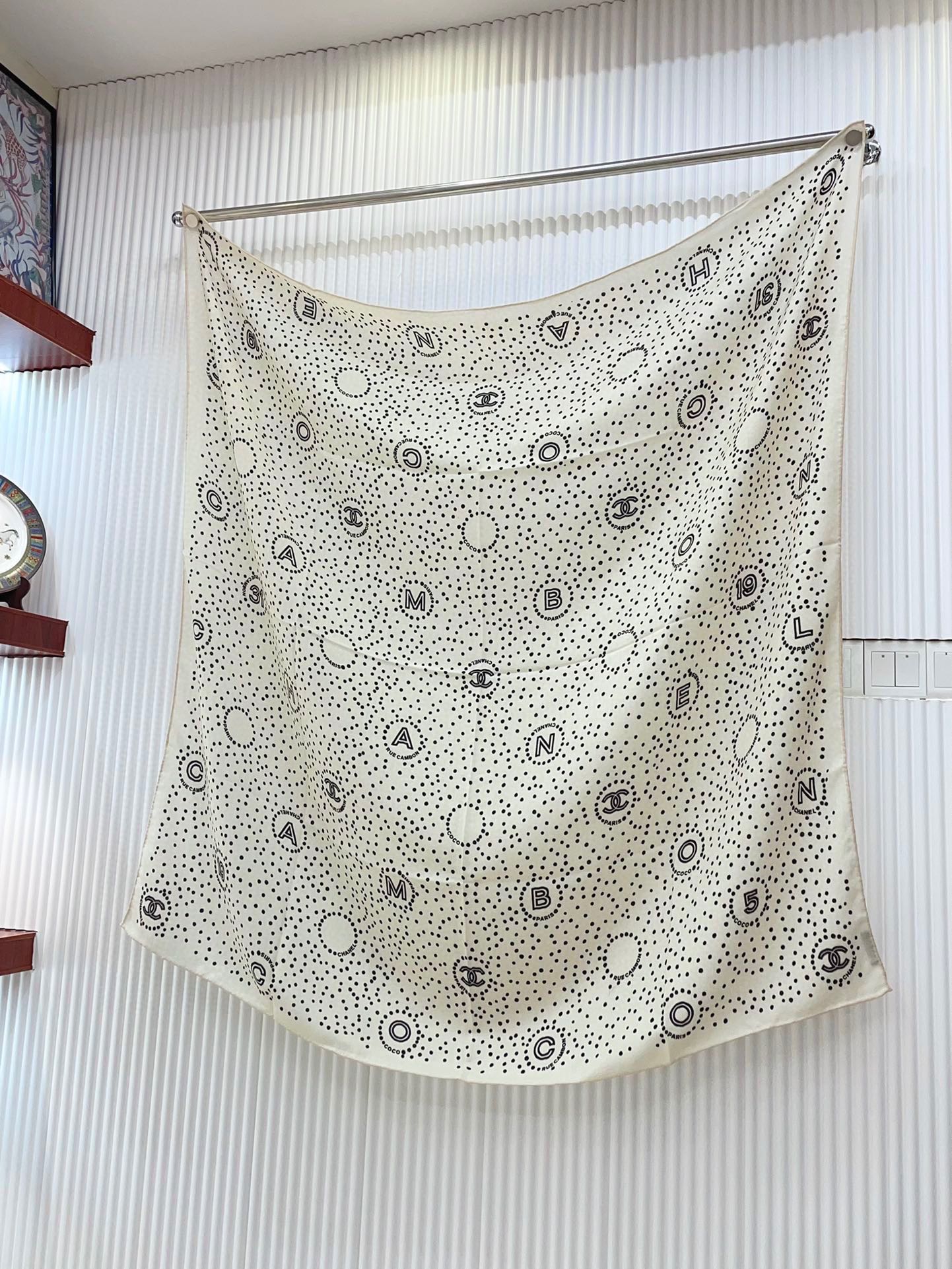CC Square Scarf 140 CM In Black White Cashmere Silk 408418