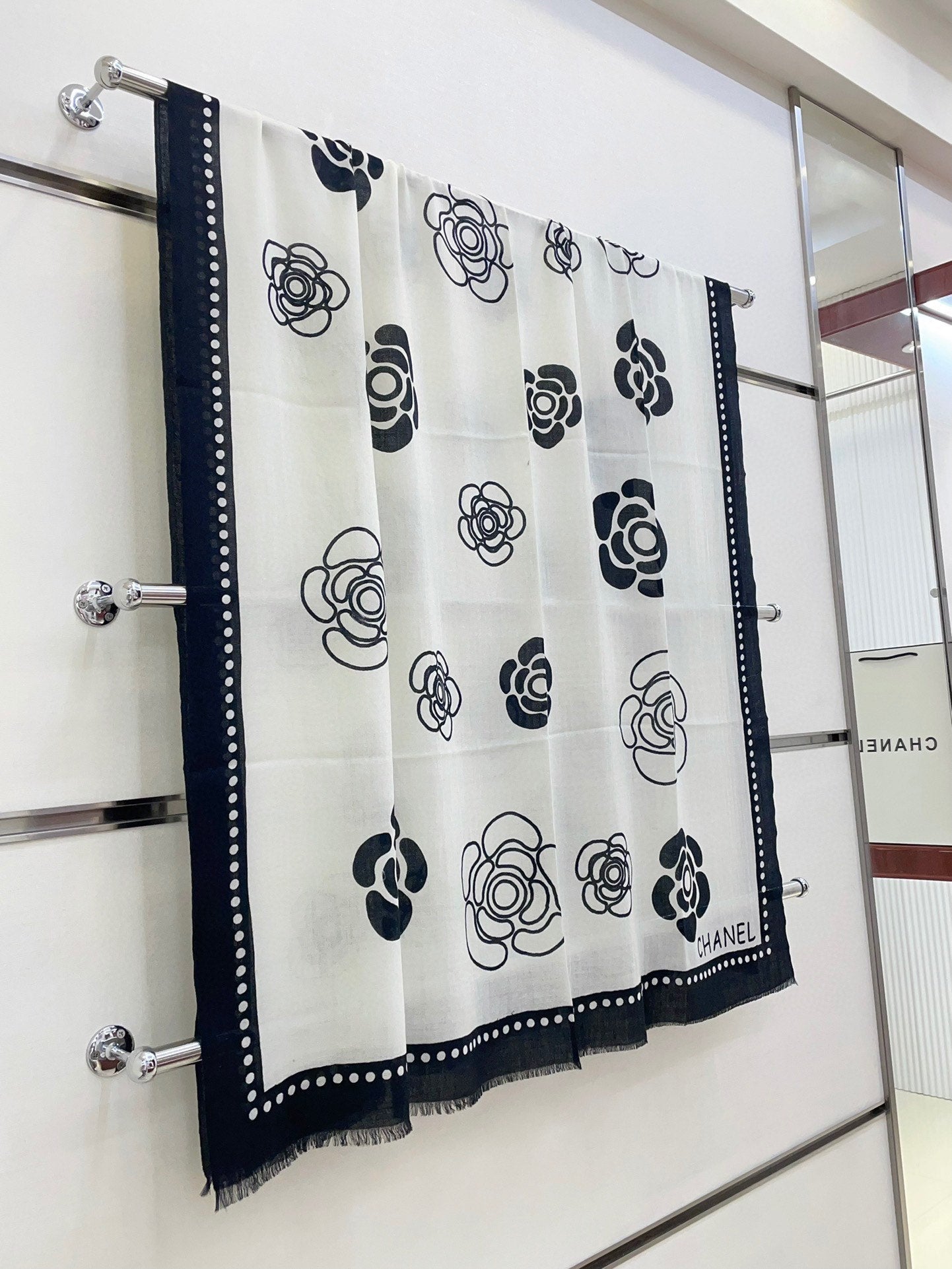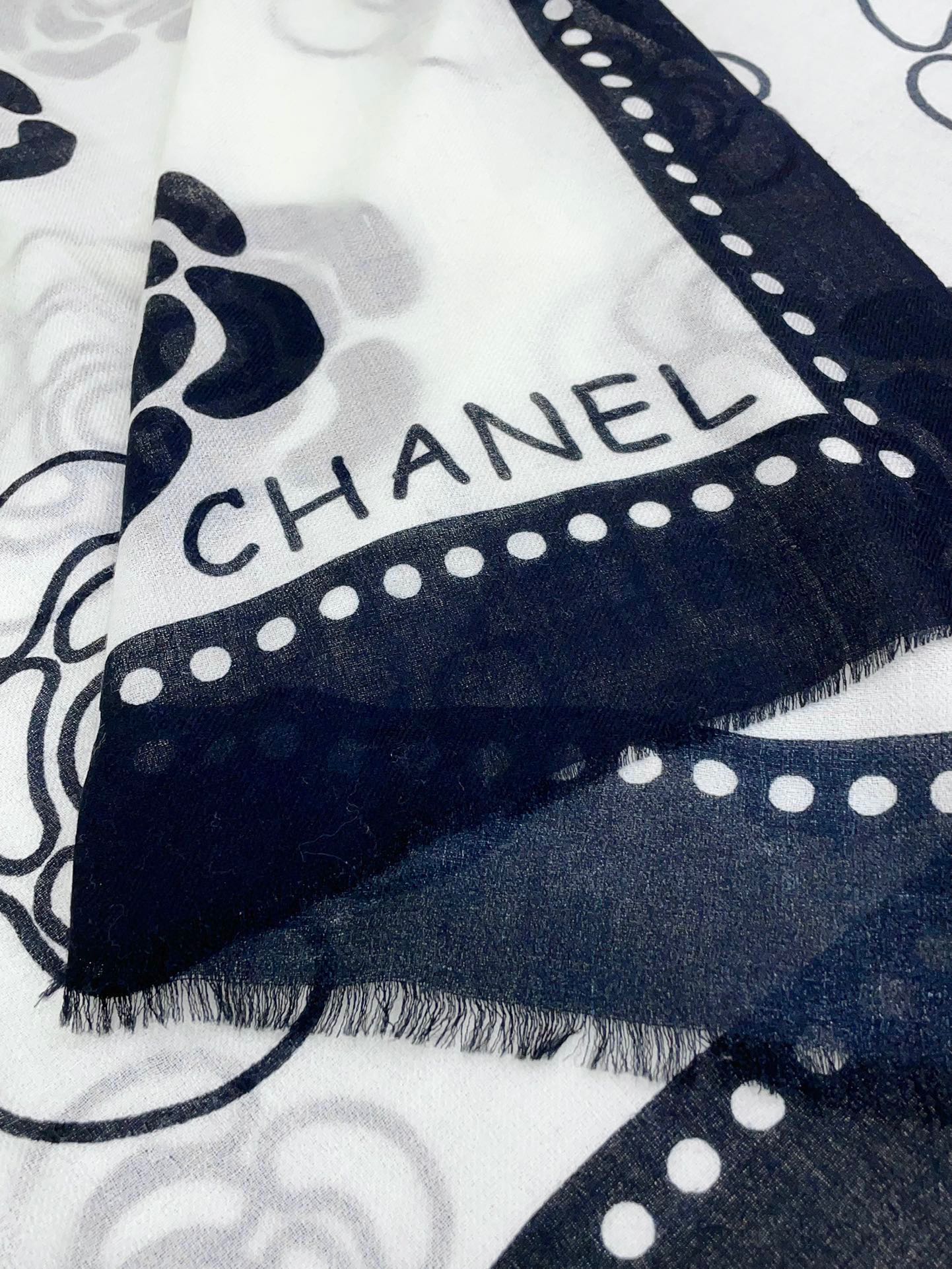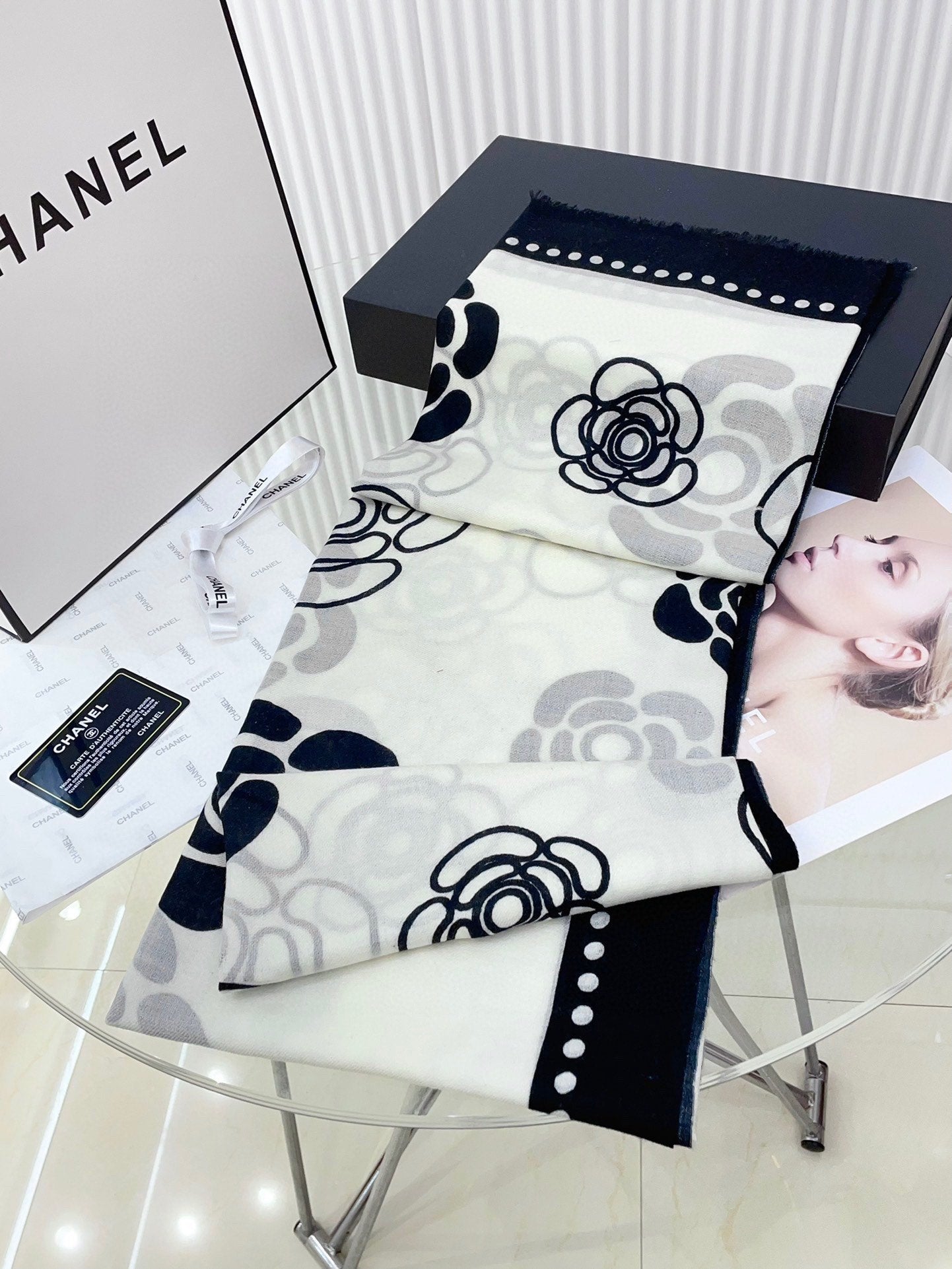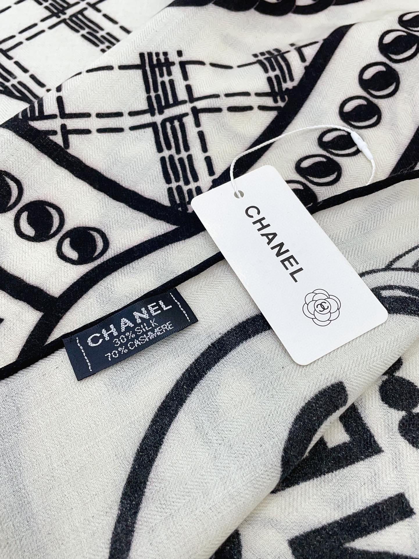 CC Scarf 180 CM In White Black Cashmere Silk 401133