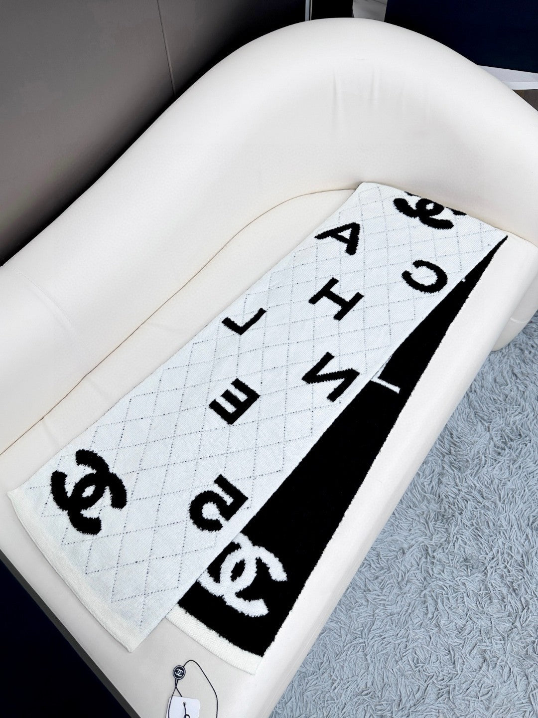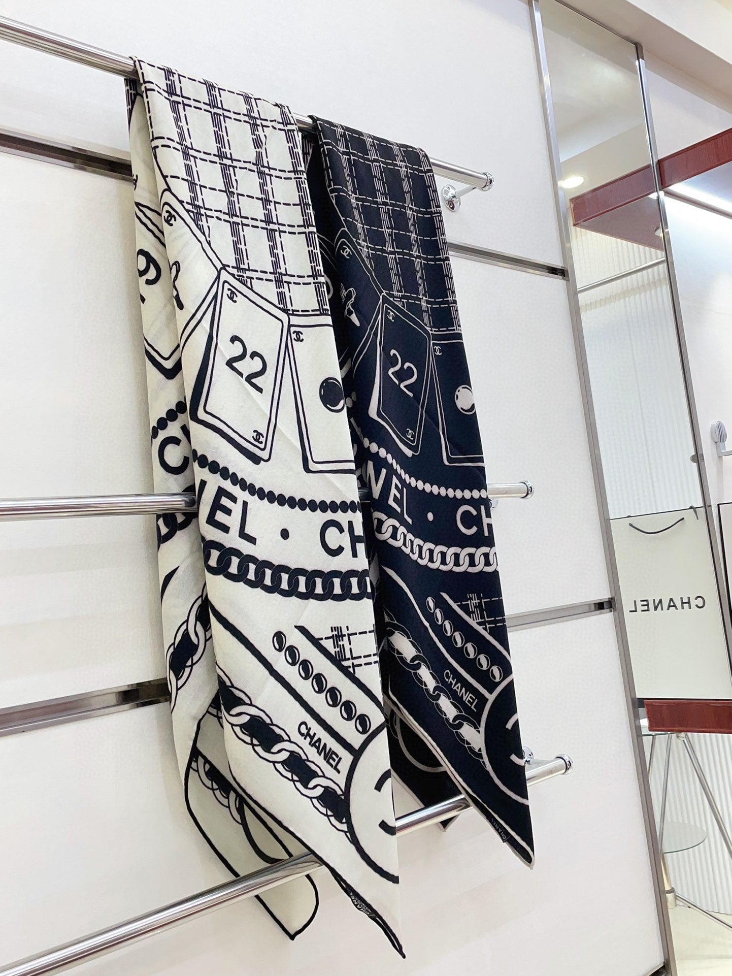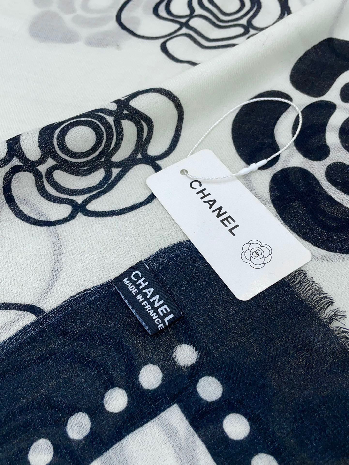 CC Scarf 180 CM In White Black Cashmere Silk 401133