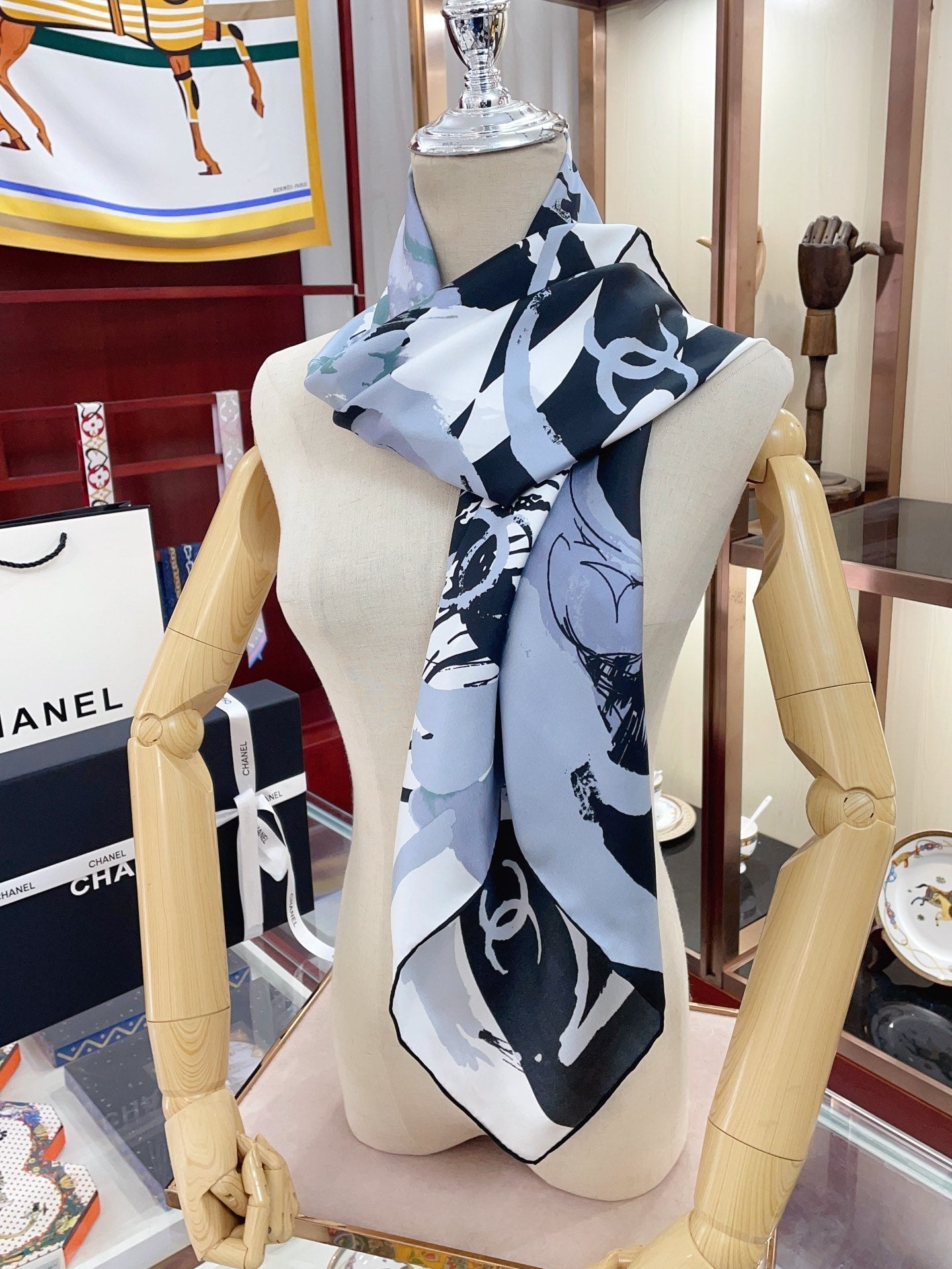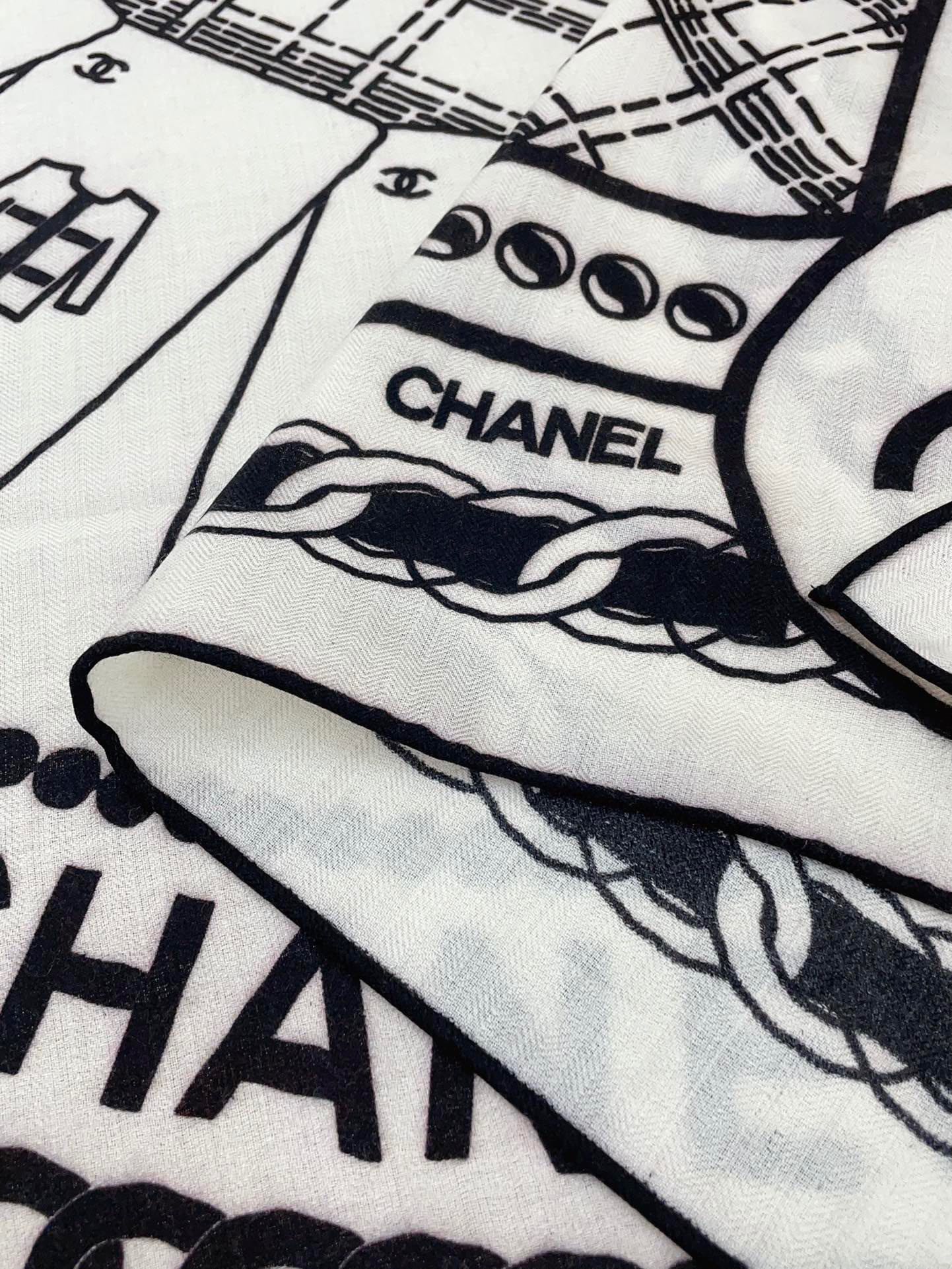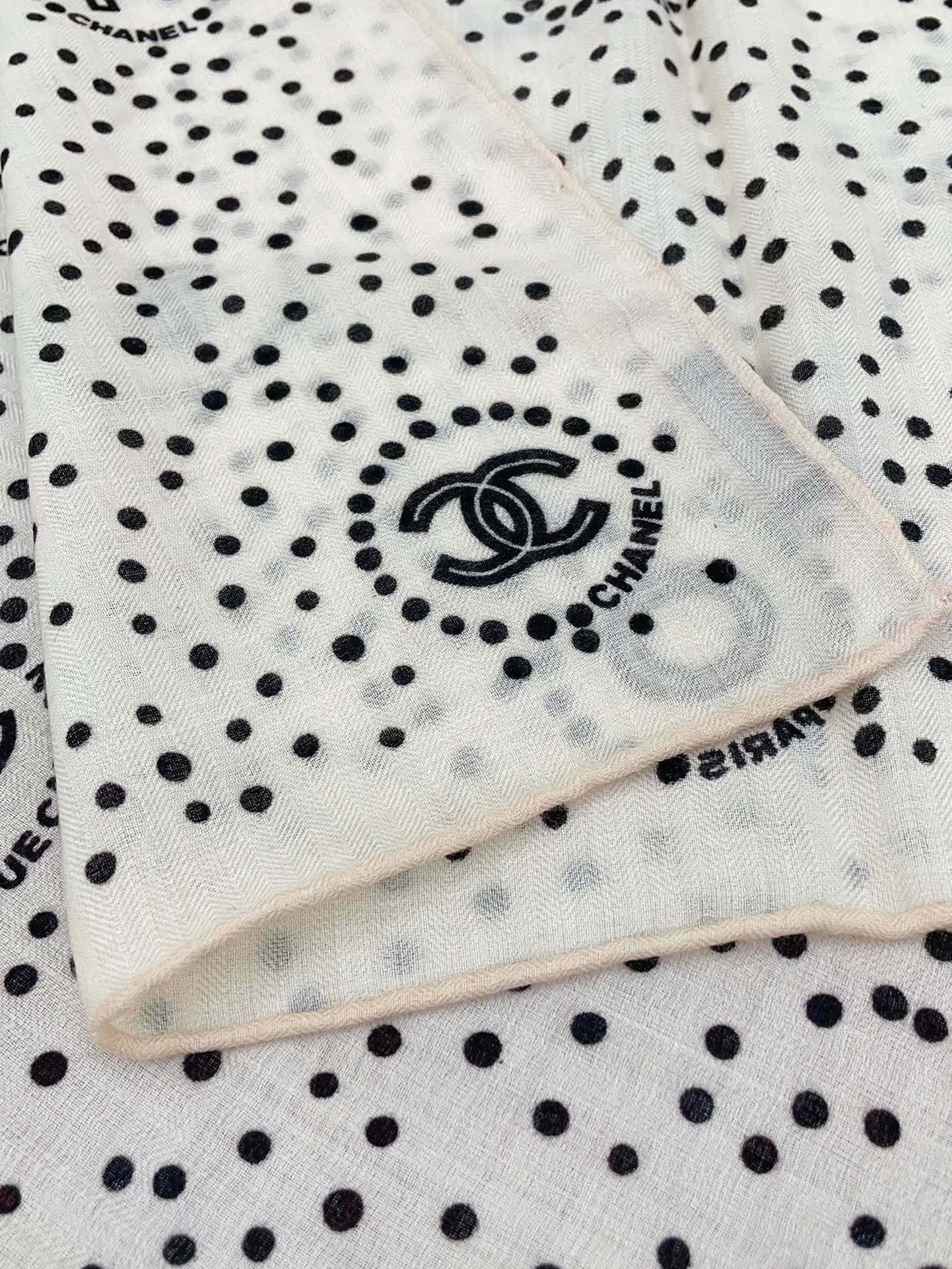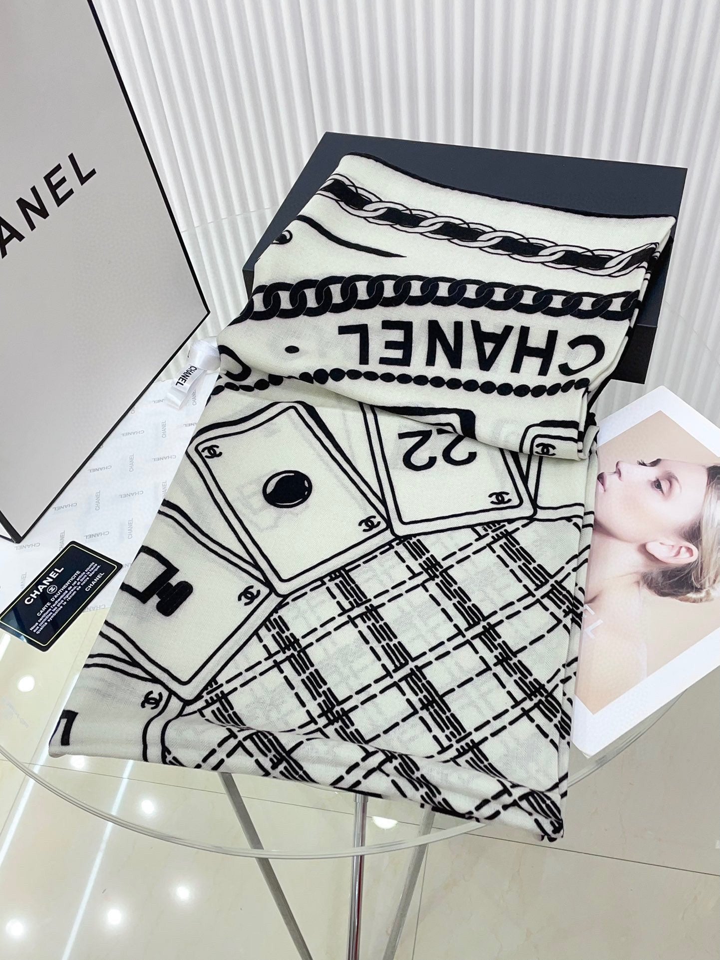 CC Scarf 180 CM In White Black Cashmere Silk 401133