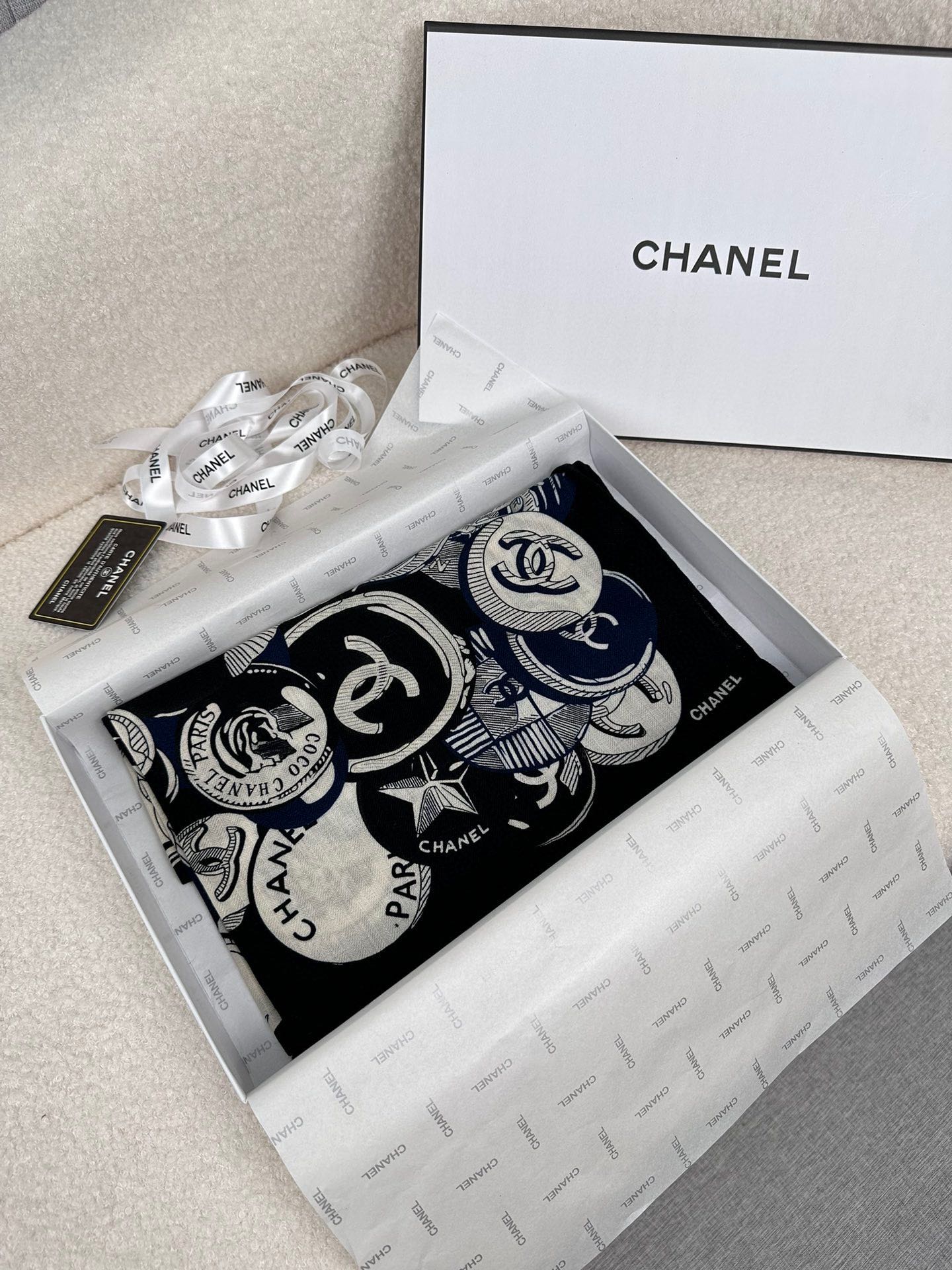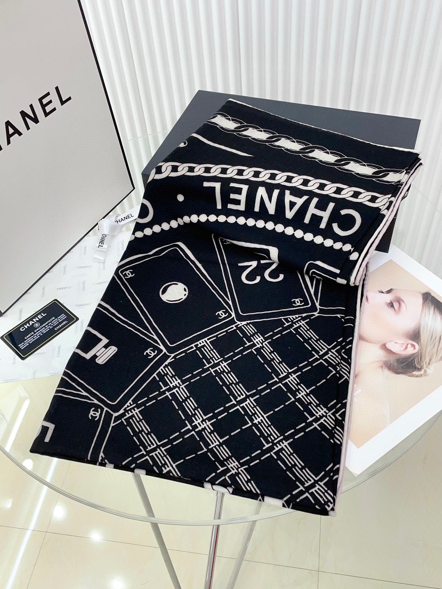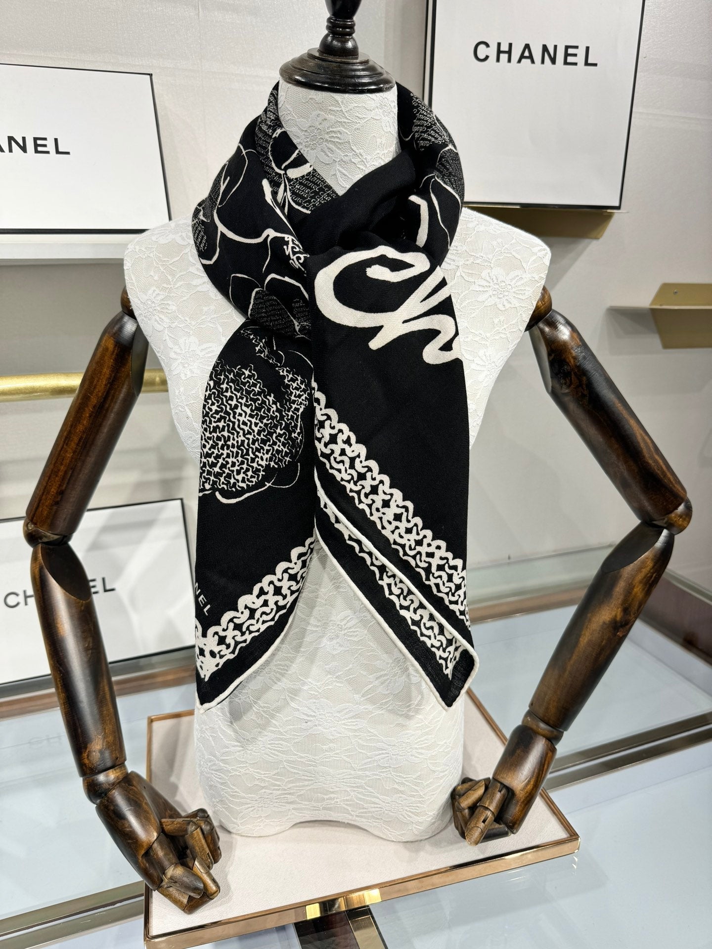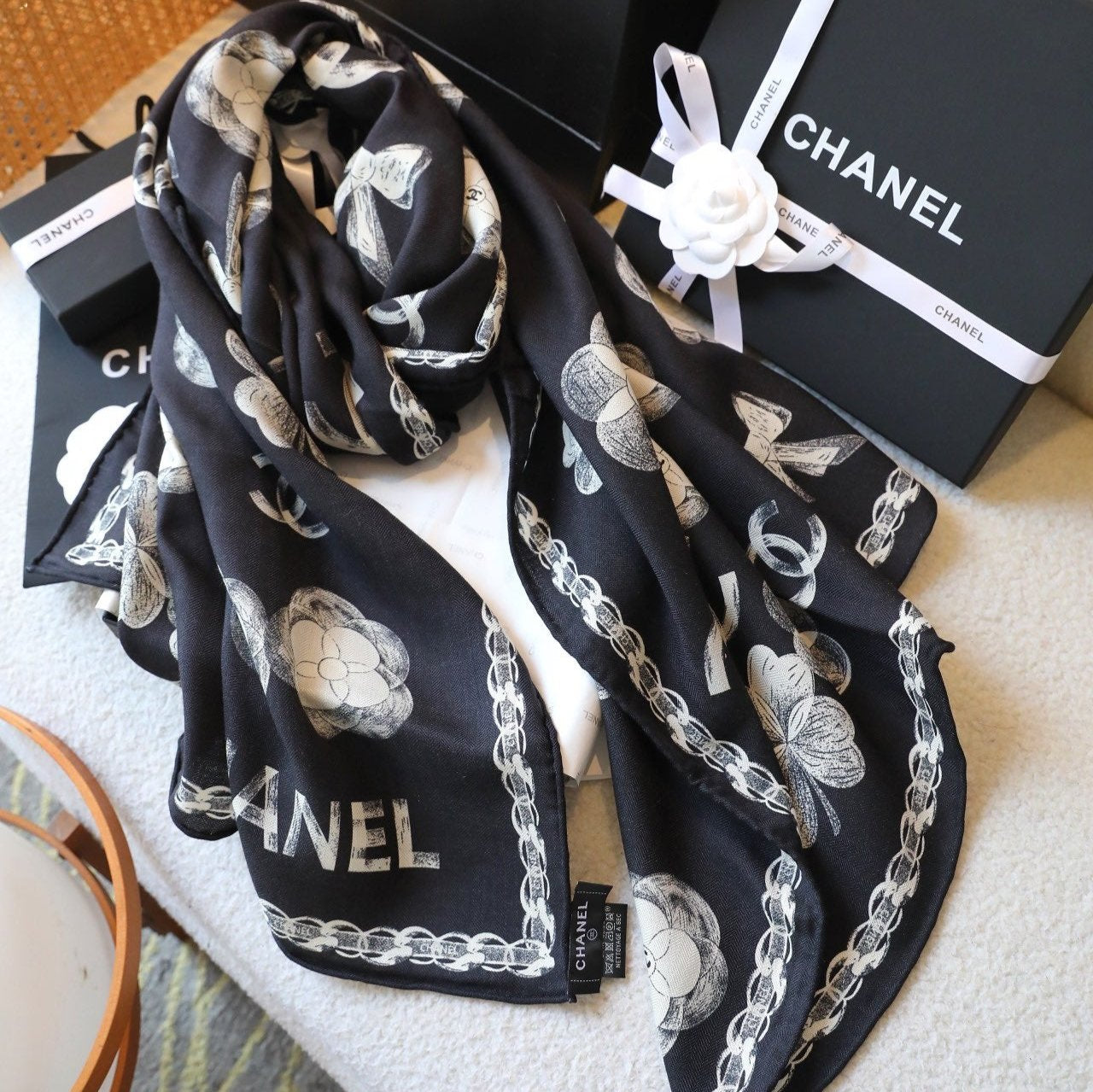 CC Scarf 190 CM In Black Logo Print Cashmere 401171