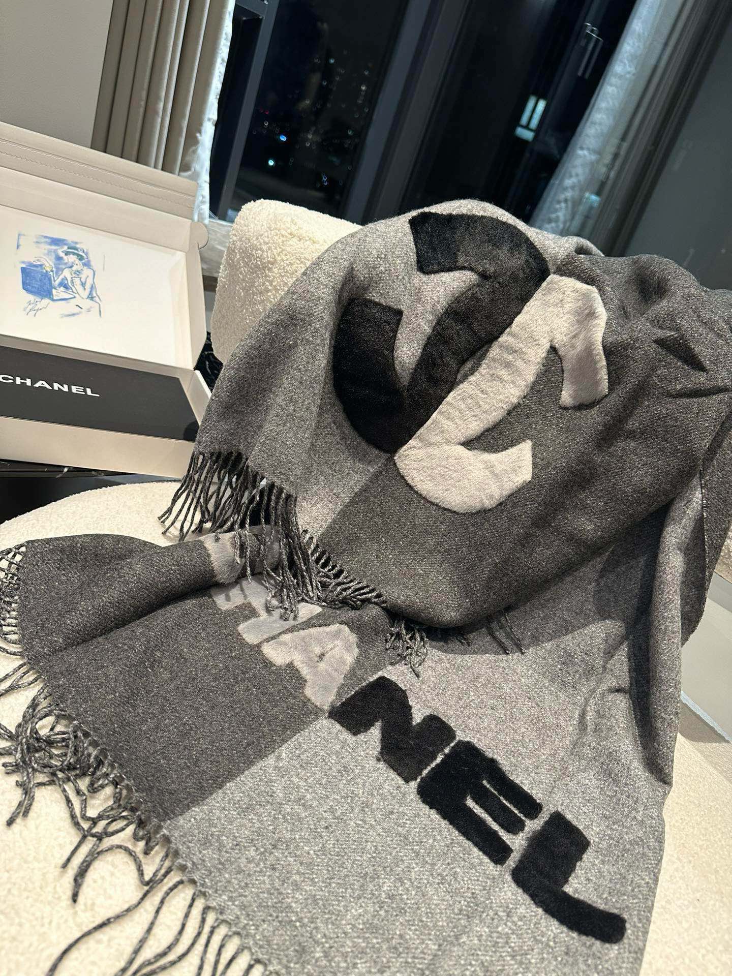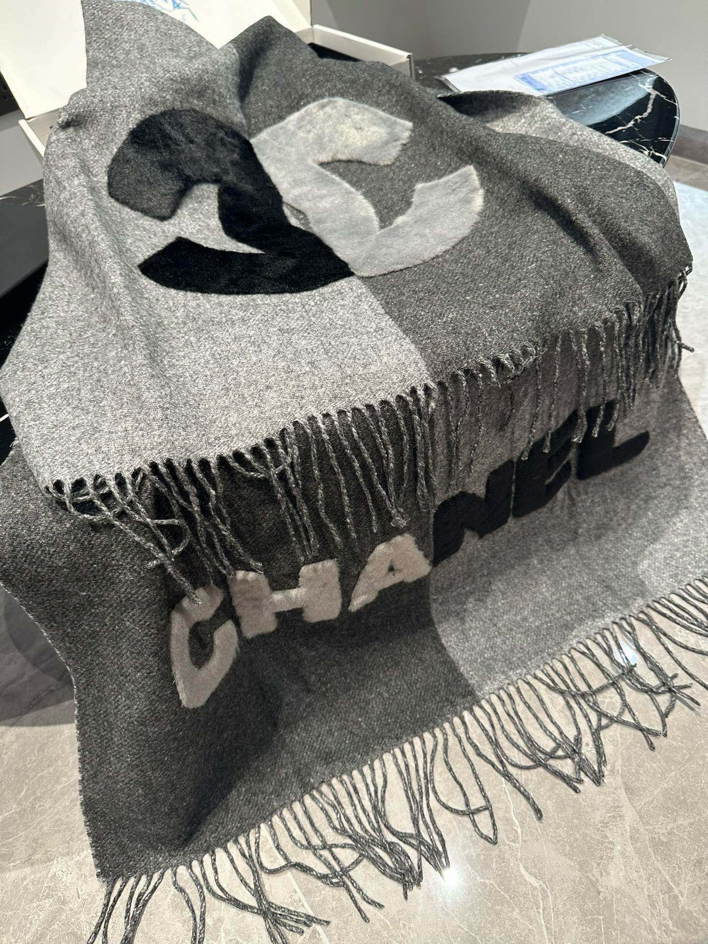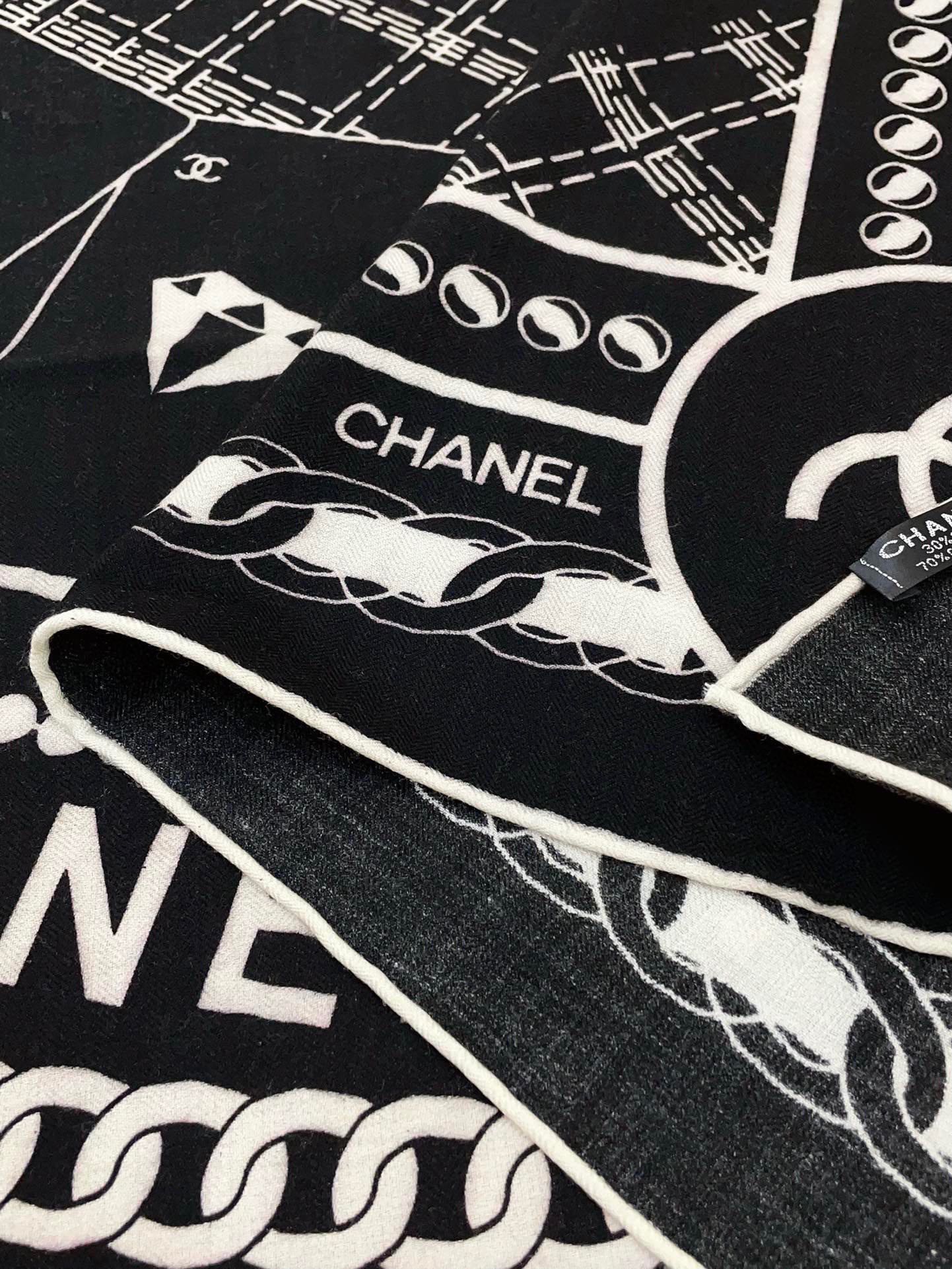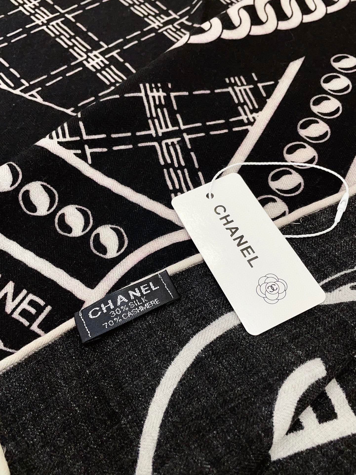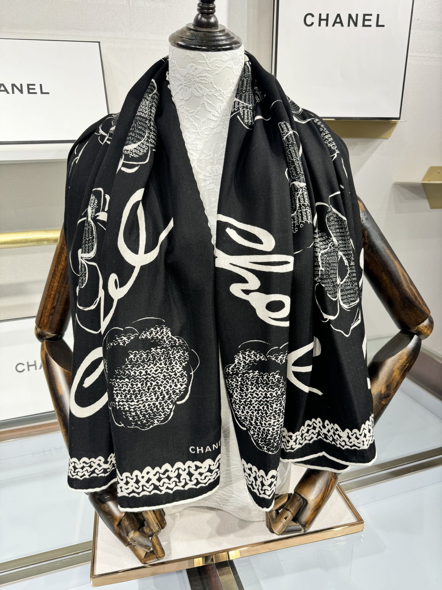 CC Scarf 190 CM In Black Logo Print Cashmere 401171