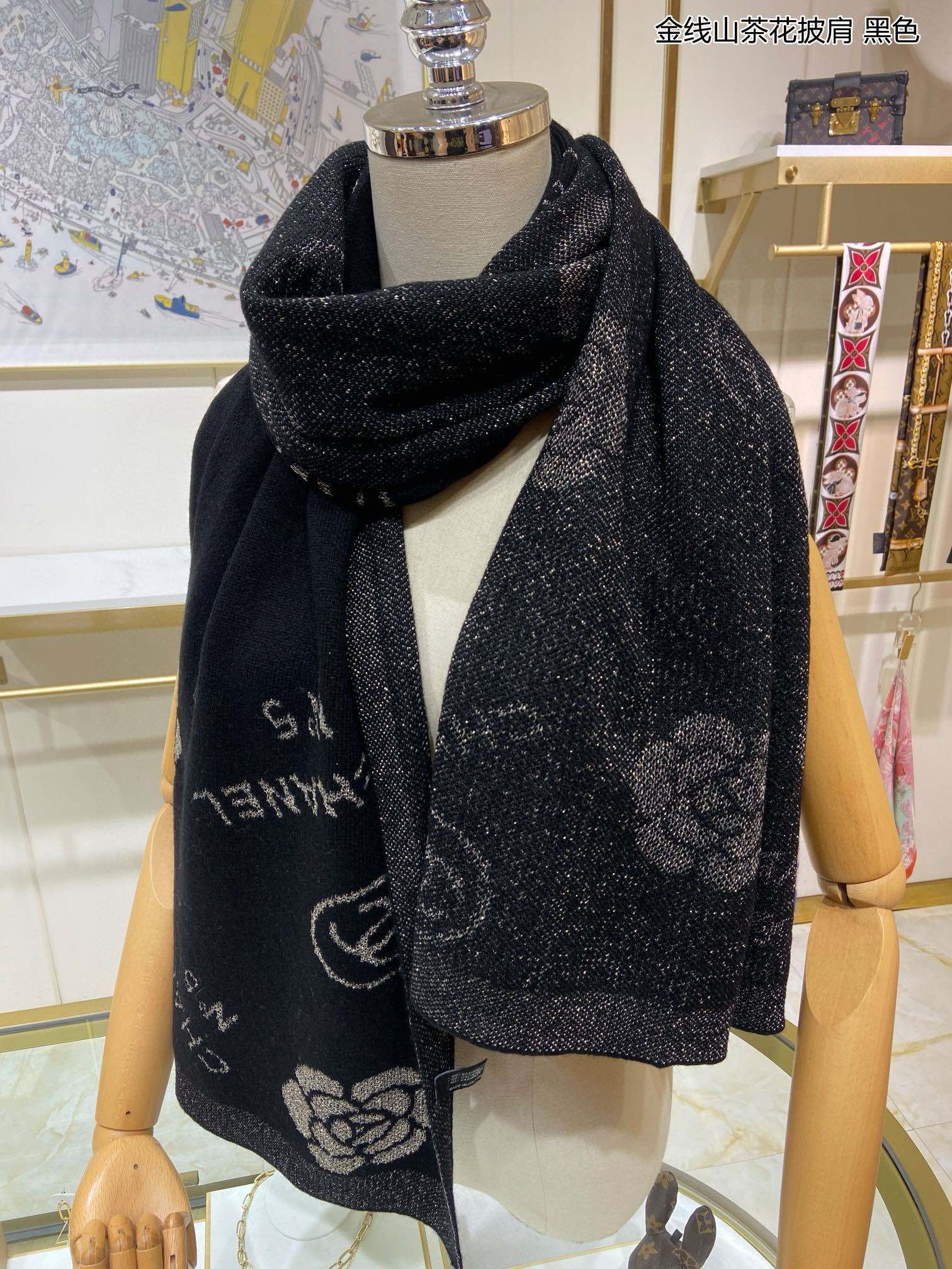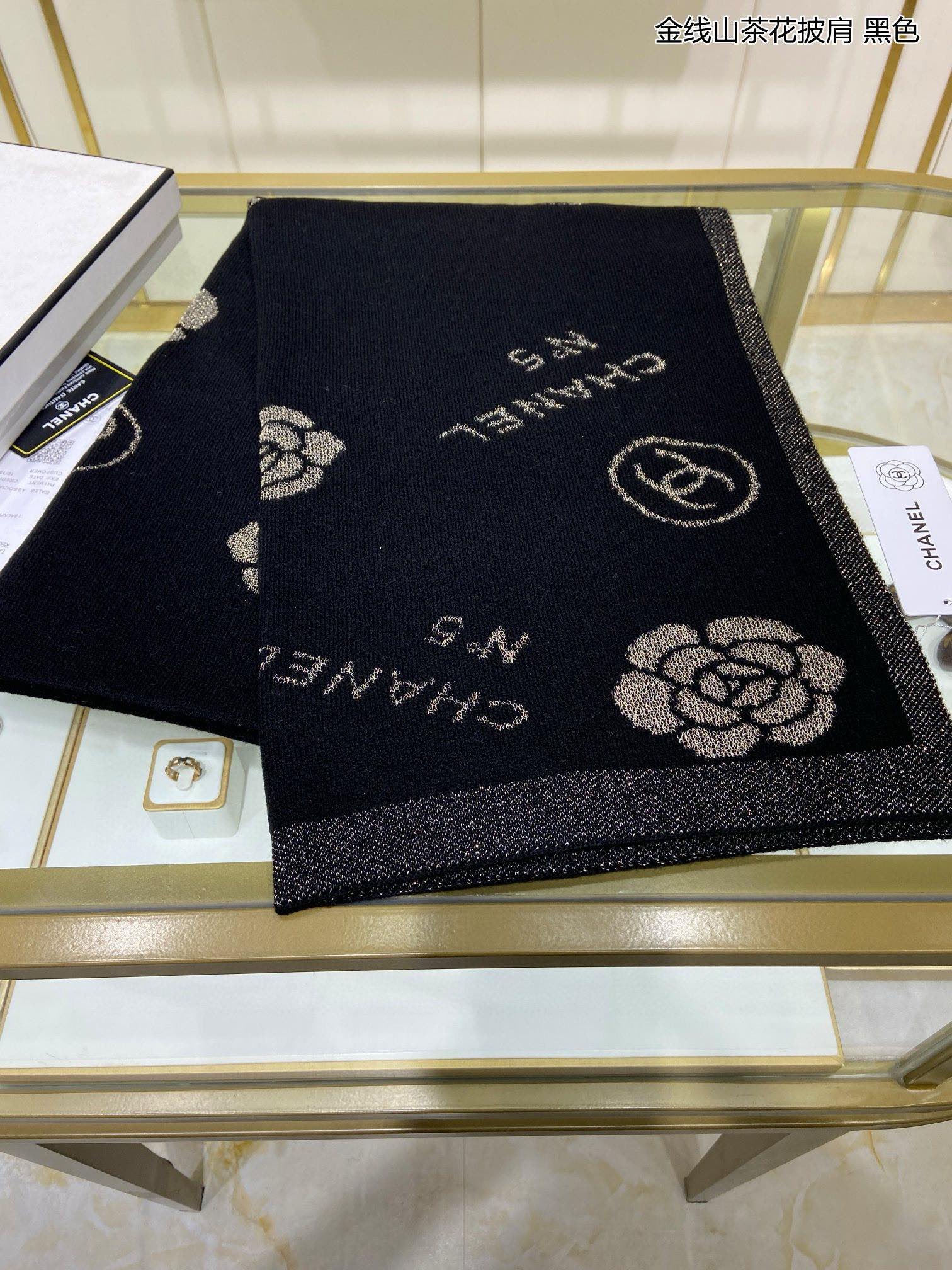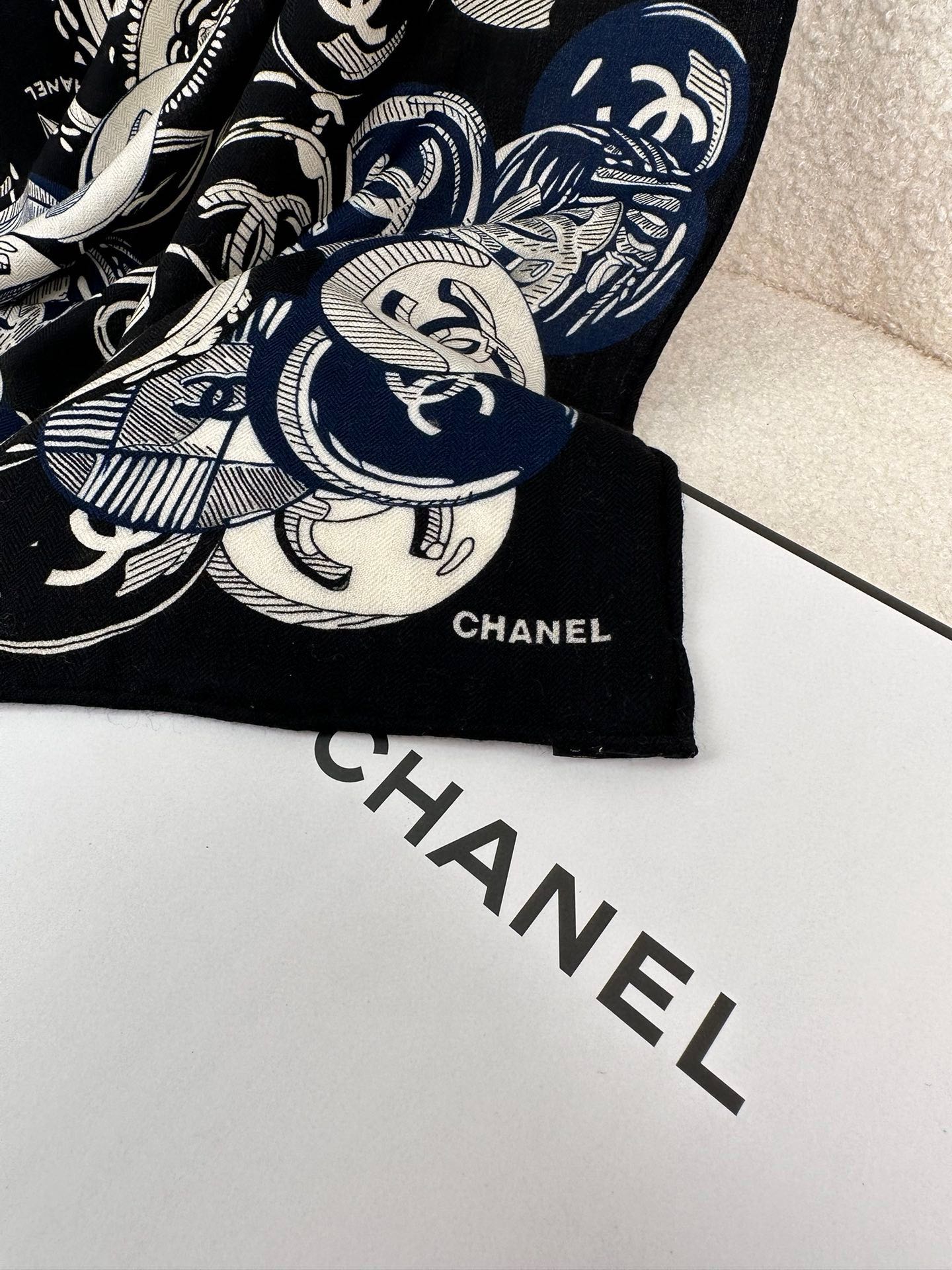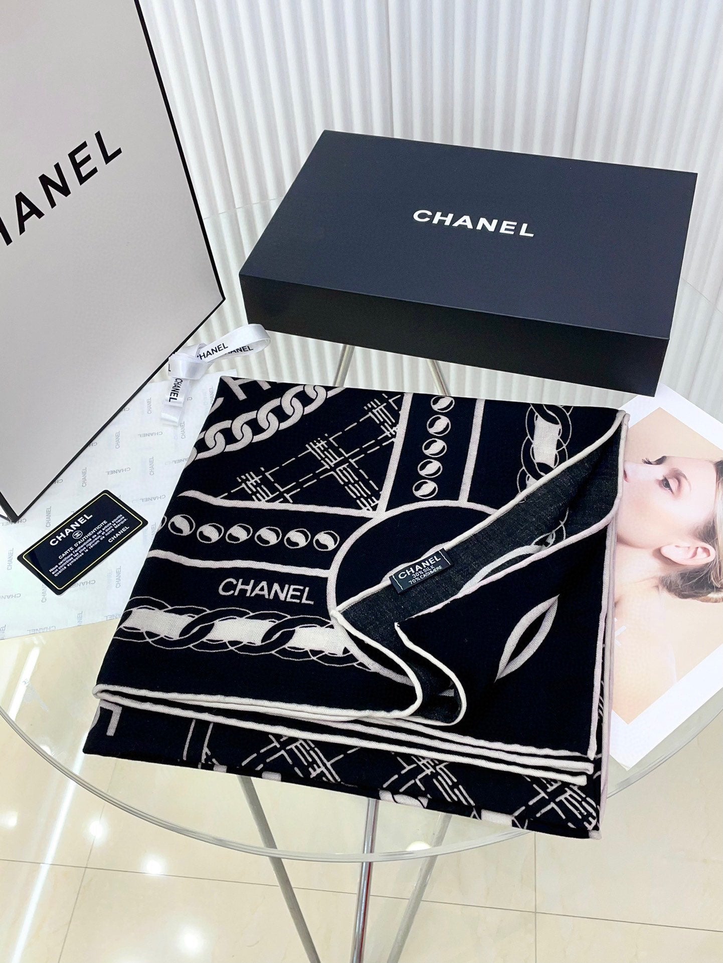 CC Scarf 190 CM In Black Logo Print Cashmere 401171