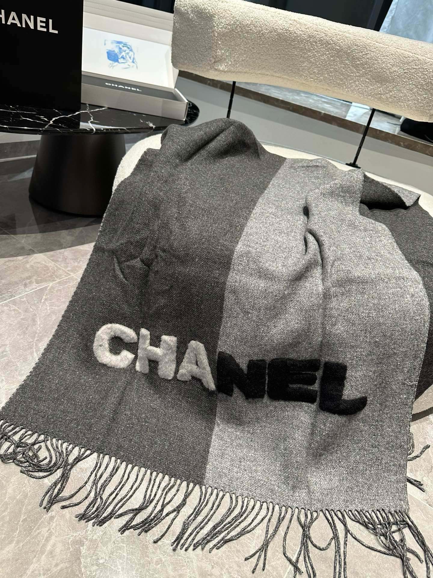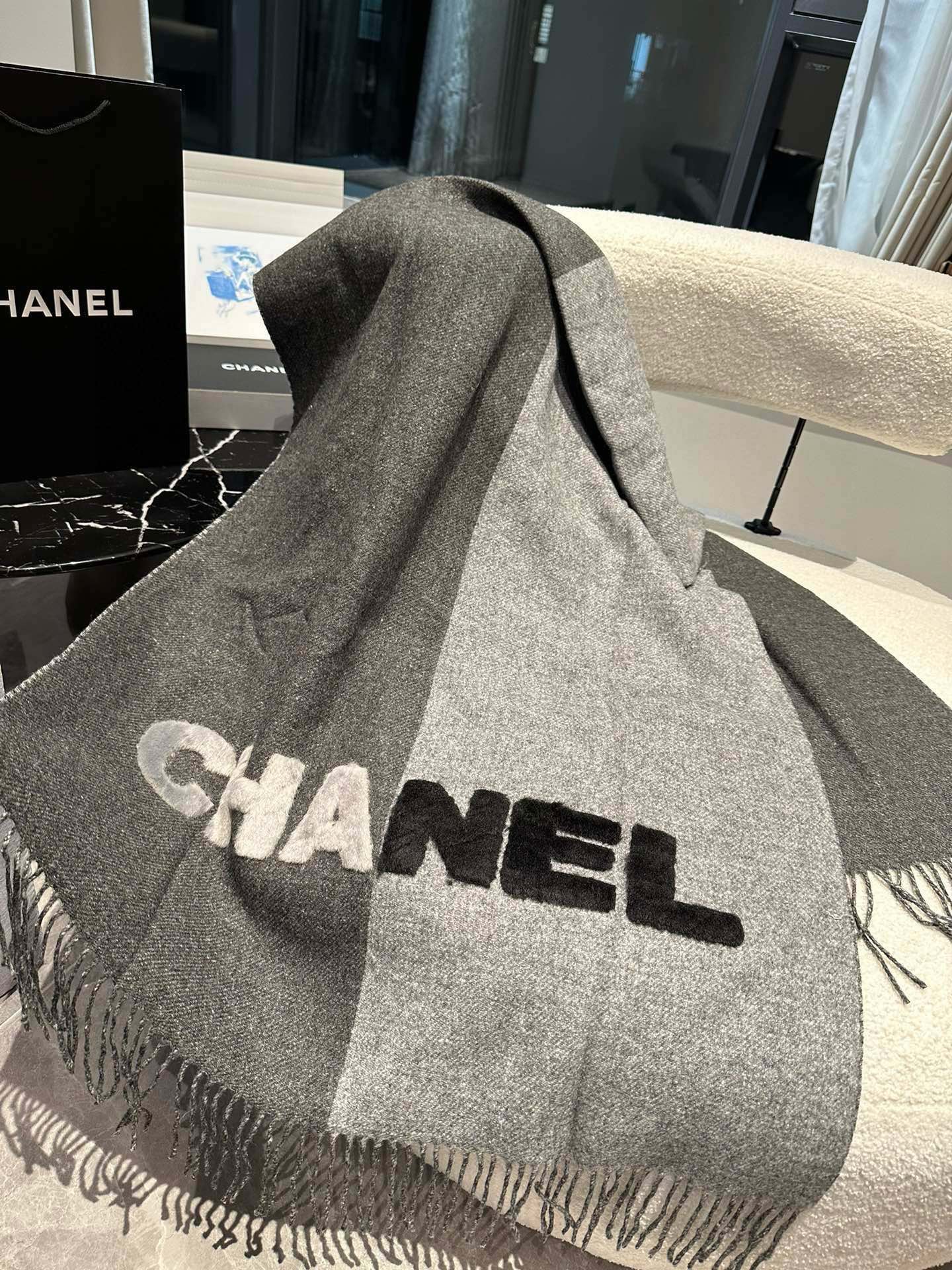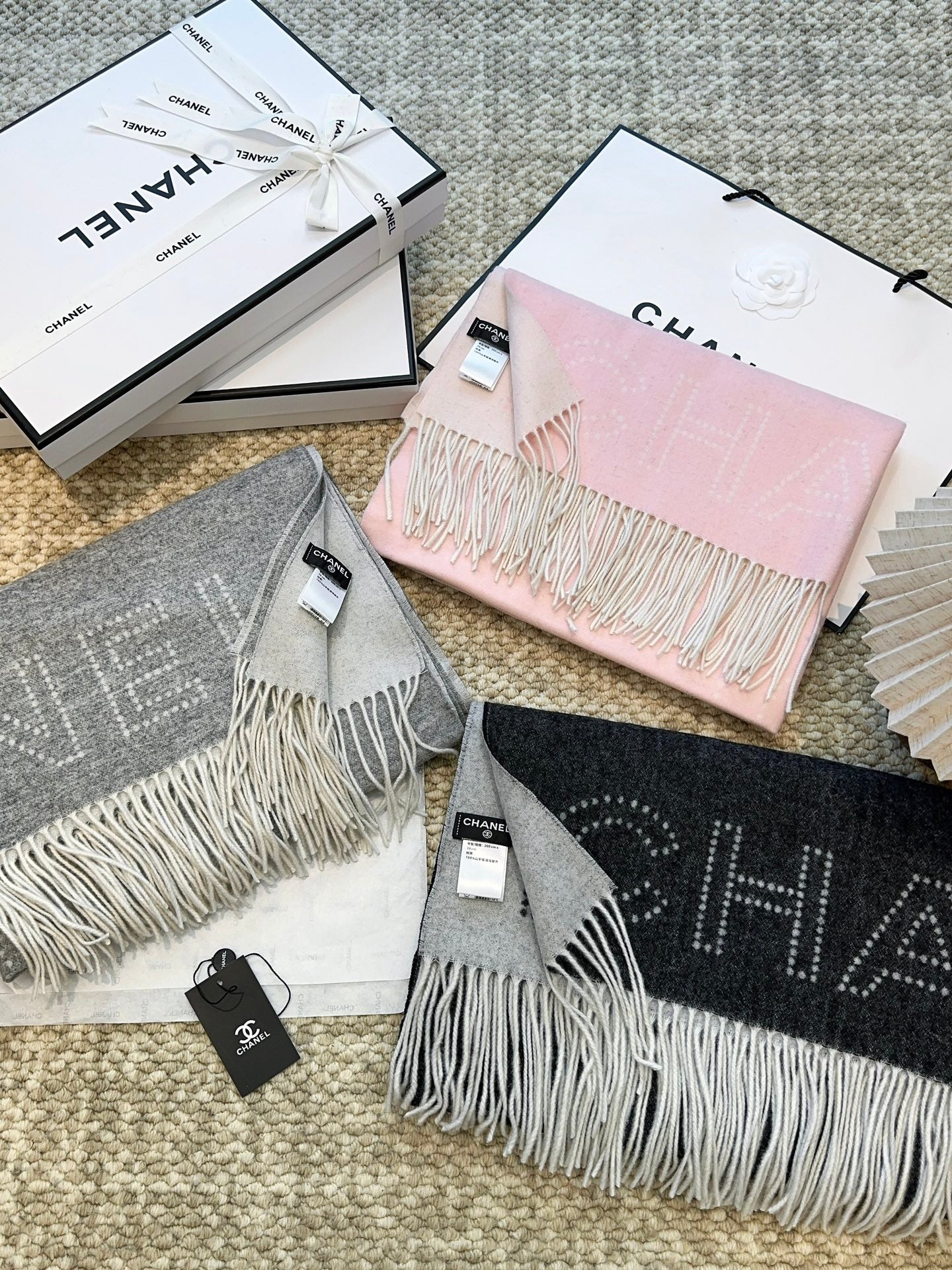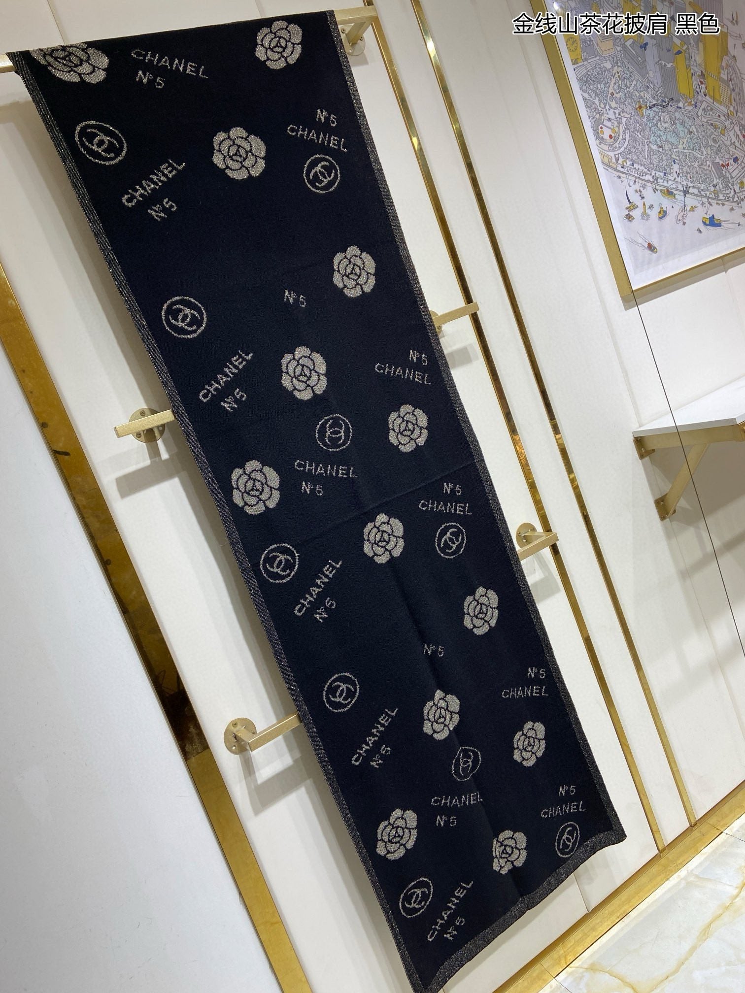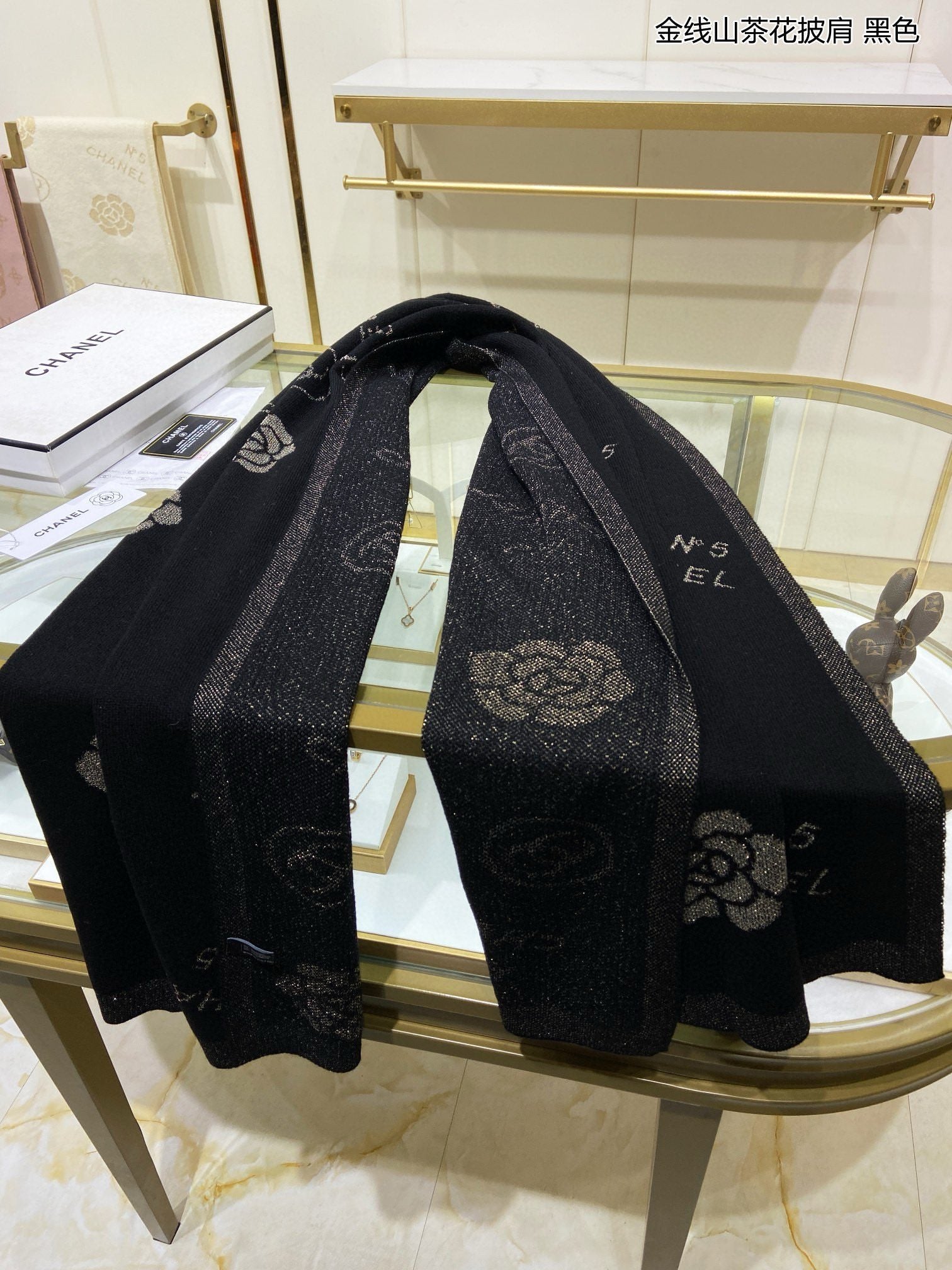 CC Scarf 190 CM In Black Logo Print Cashmere 401171