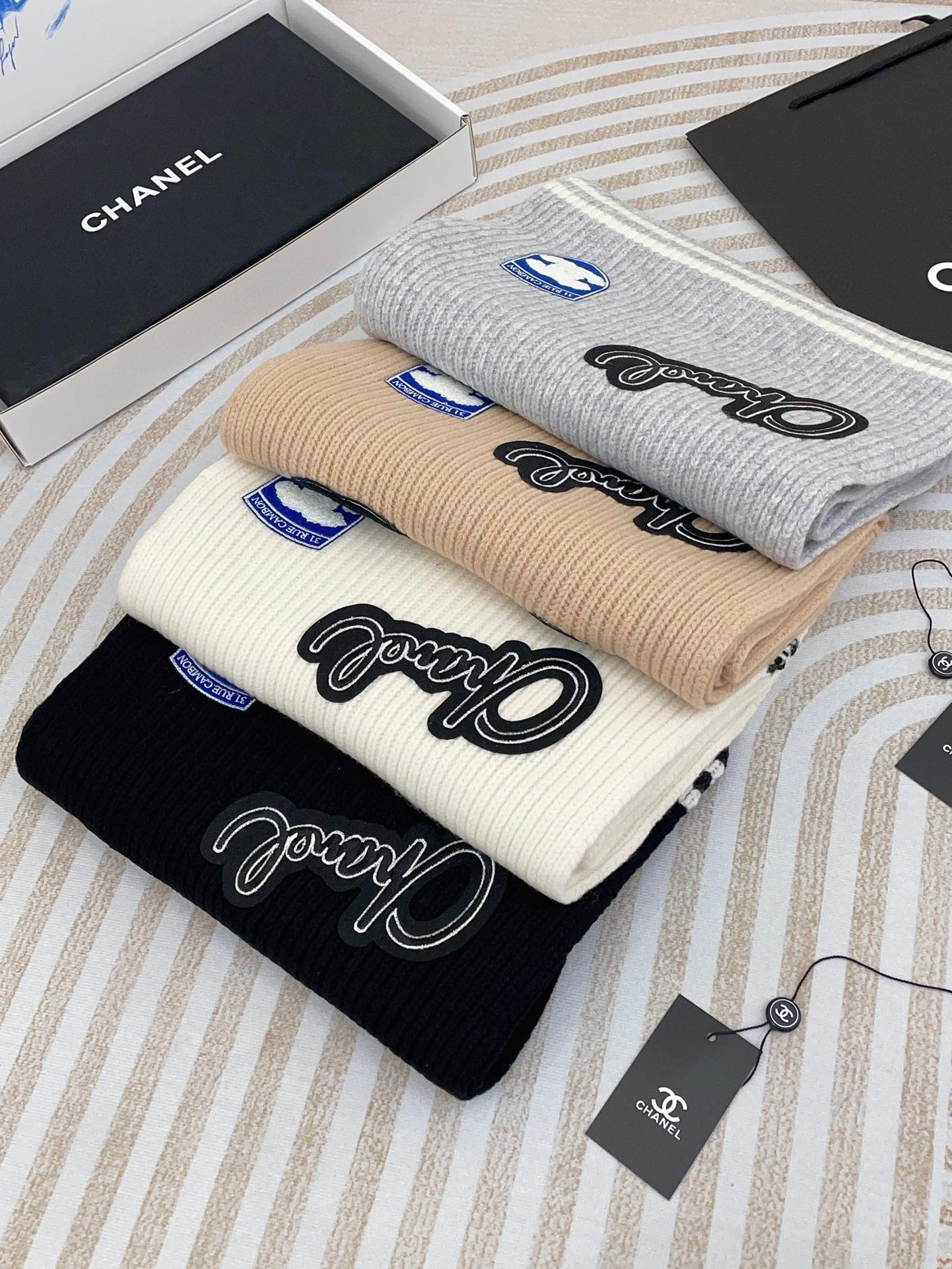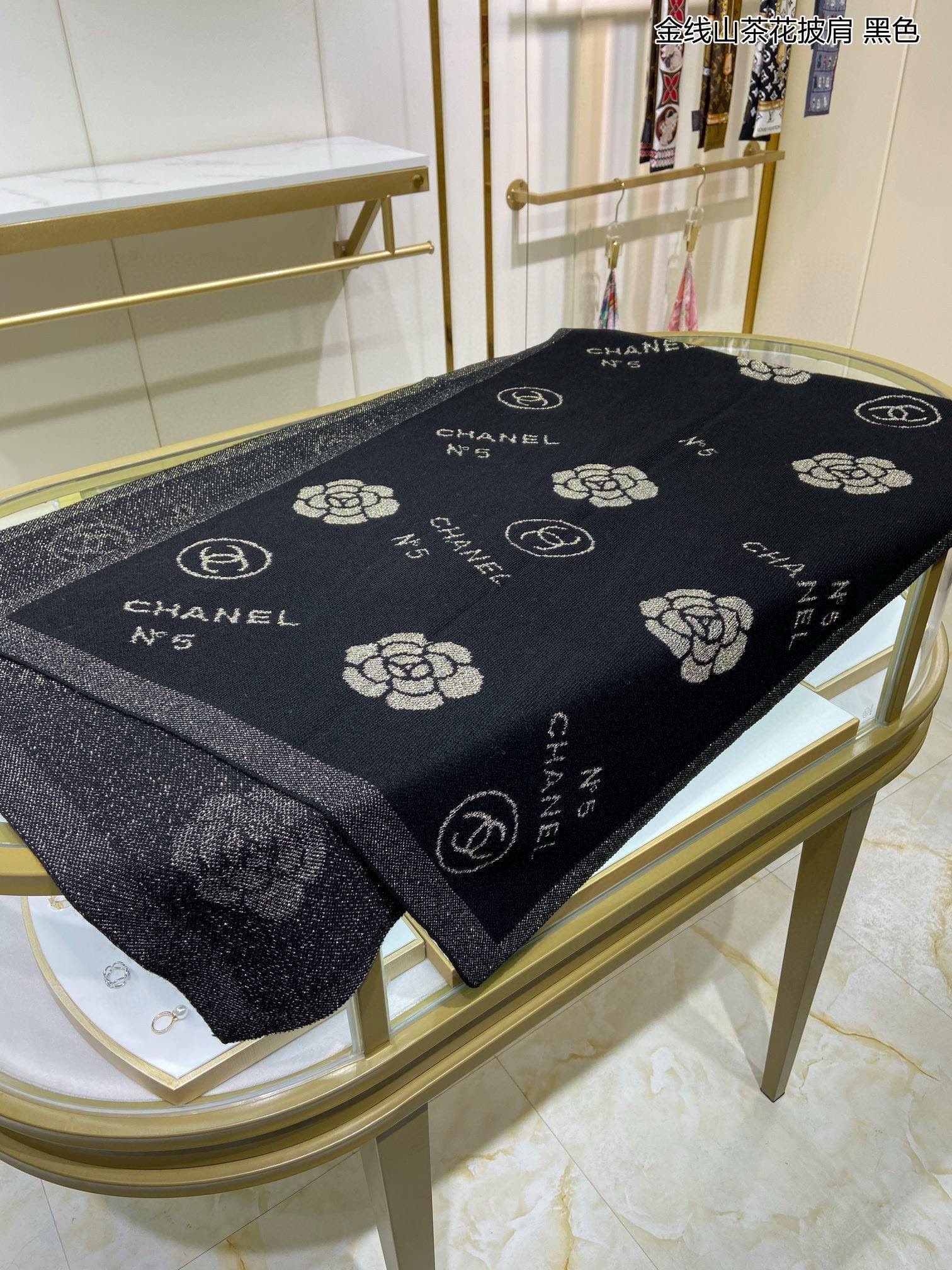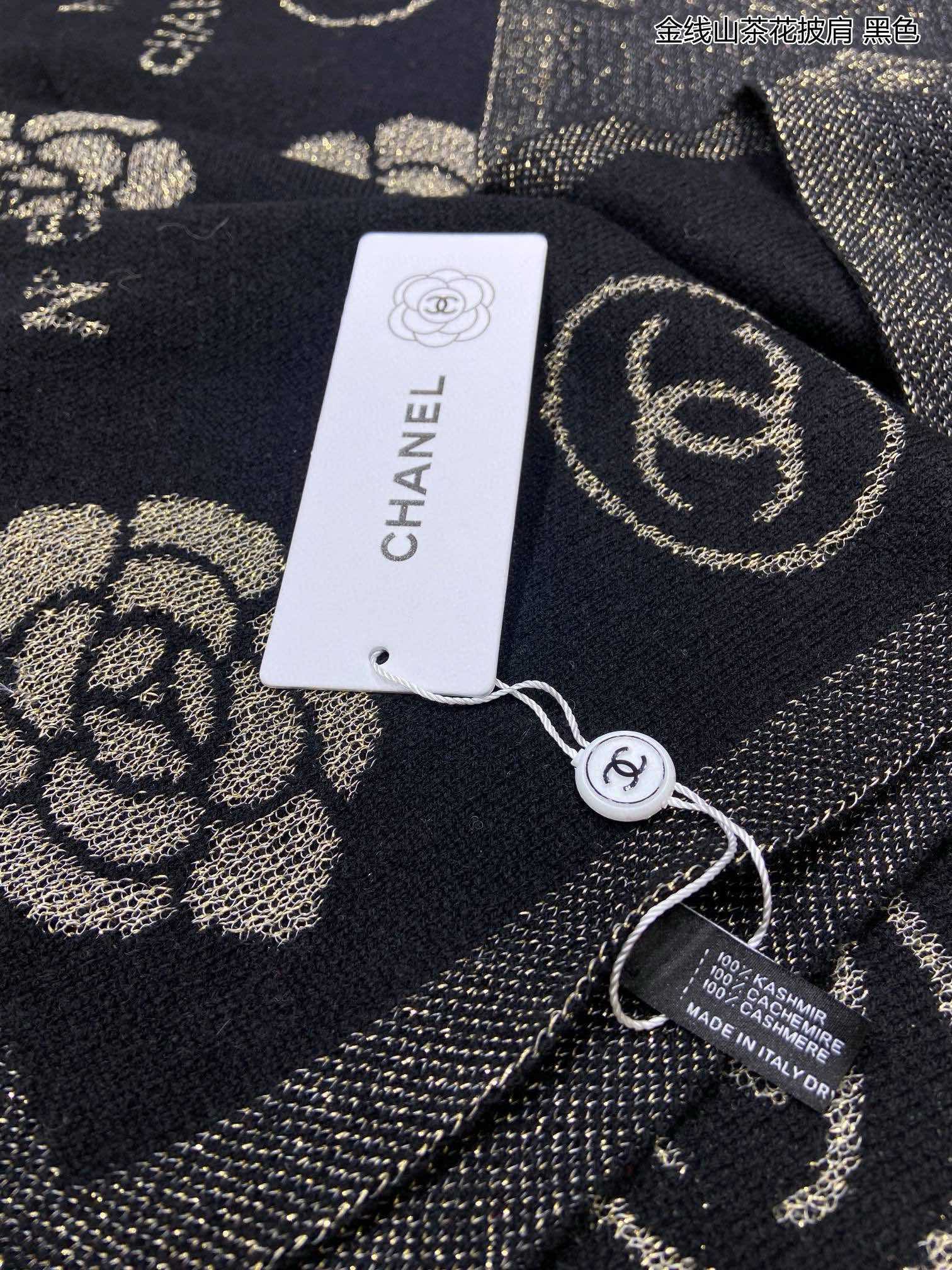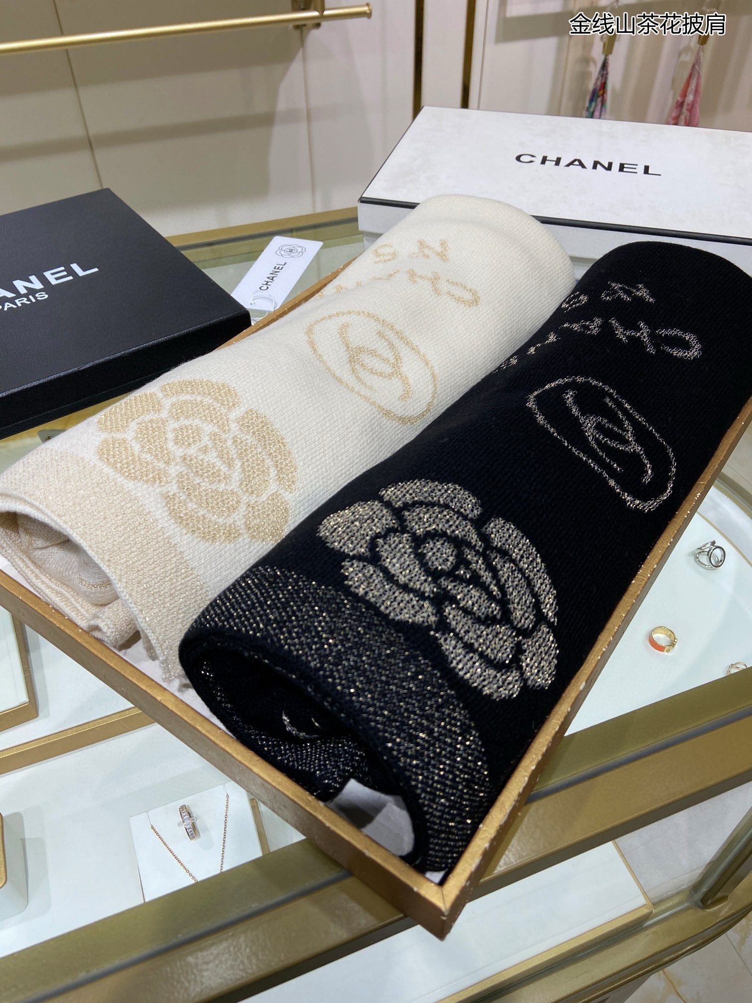 CC Scarf 190 CM In Black Logo Print Cashmere 401171