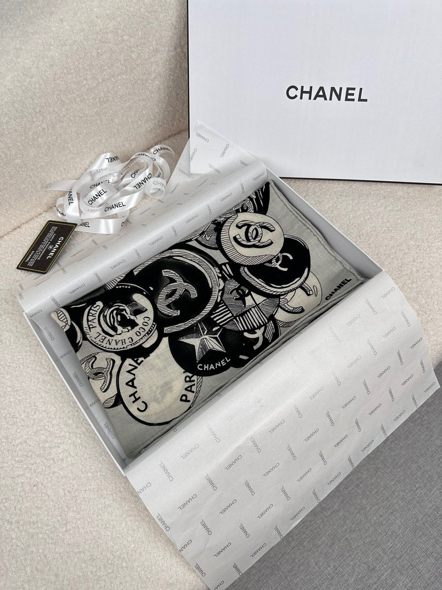 CC Scarf 180 CM In Black White Cashmere Silk 401134