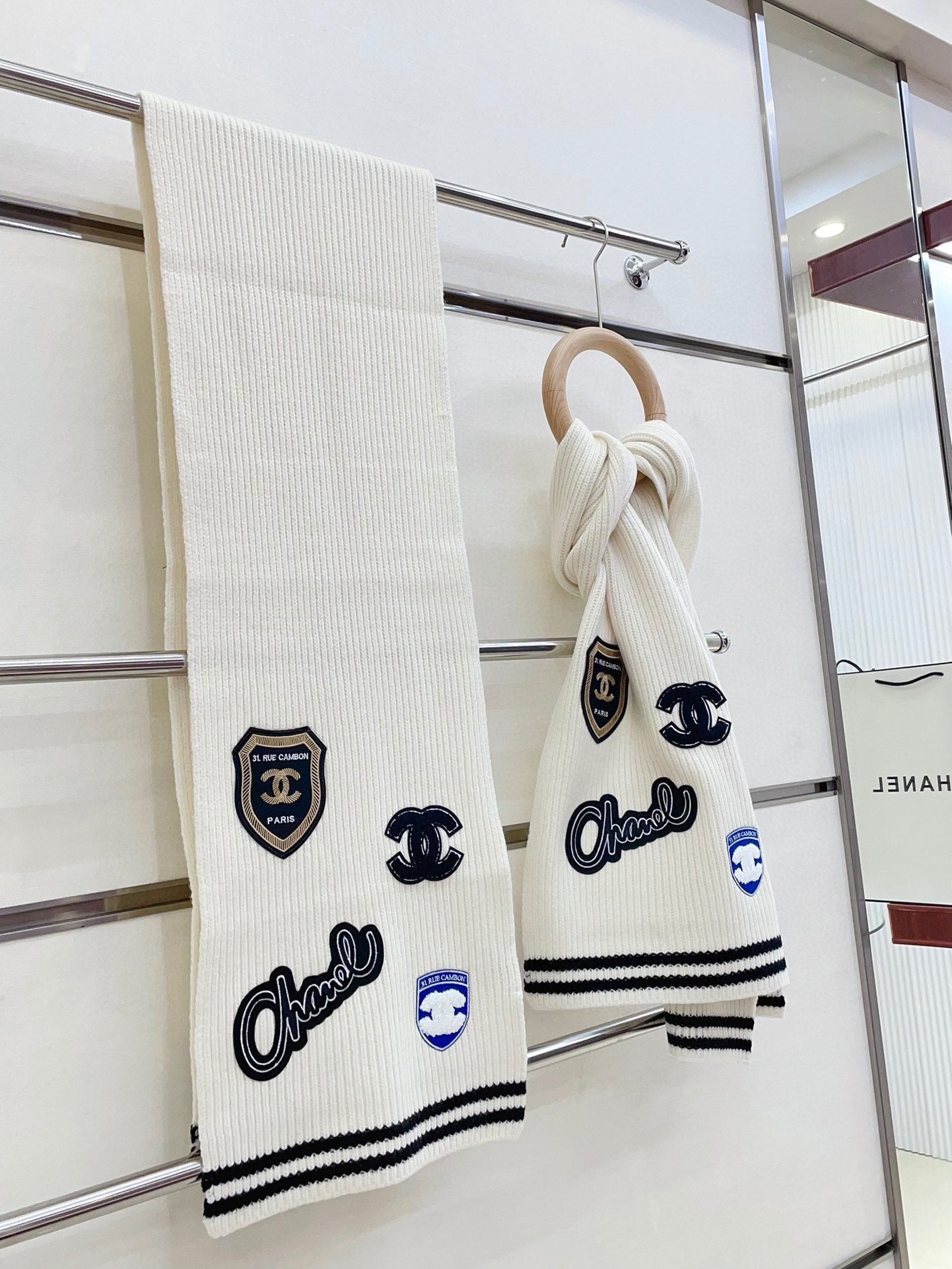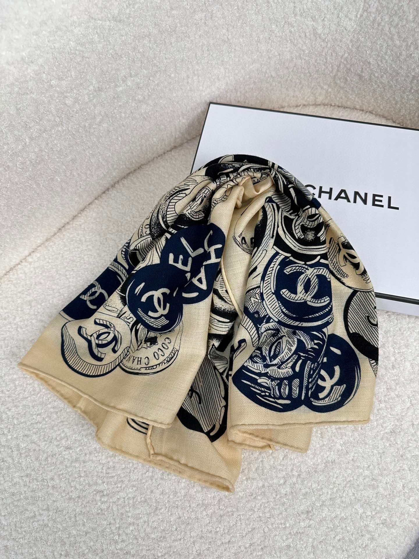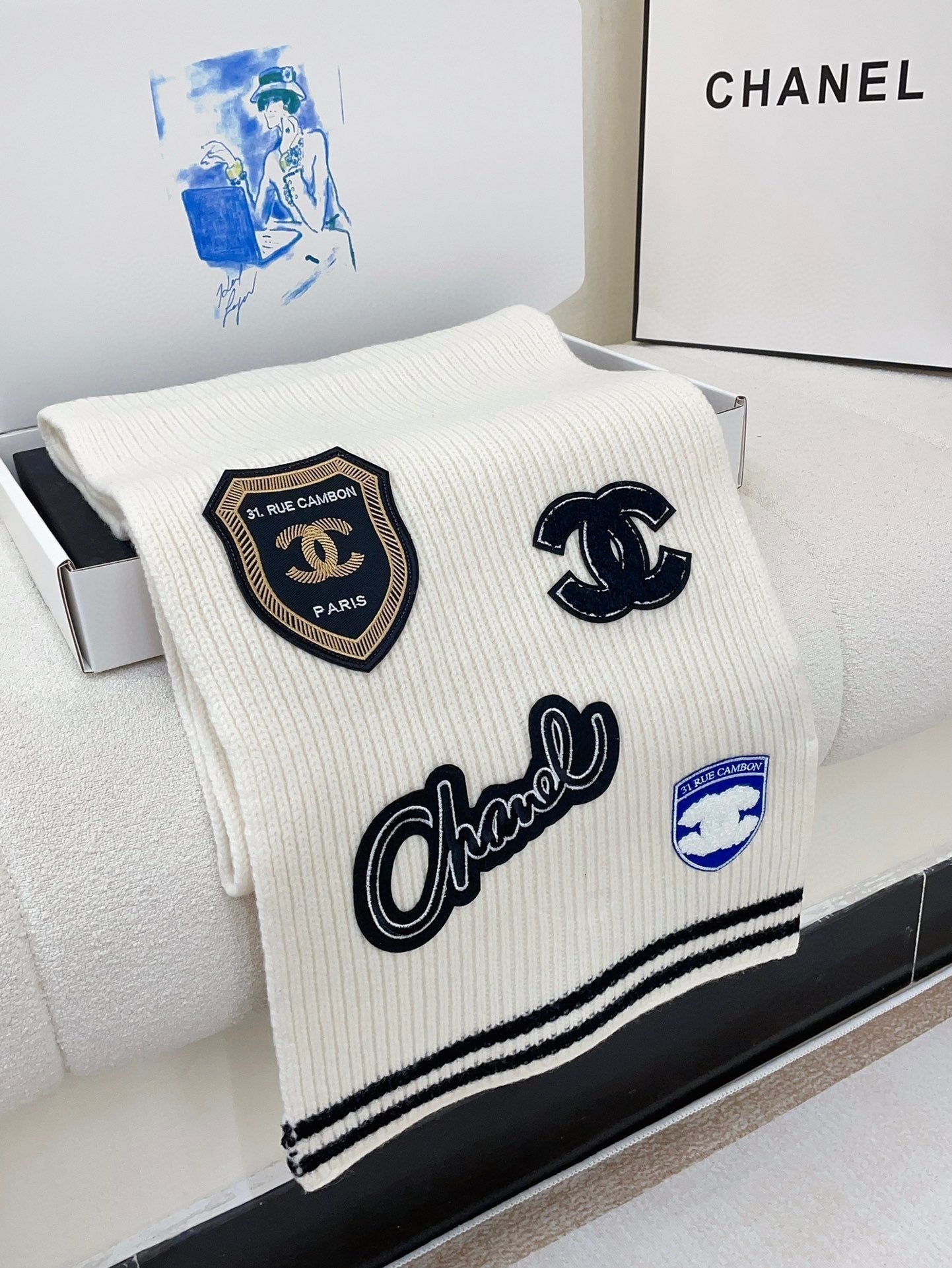 CC Scarf 190 CM In White Logo Print Cashmere 401169