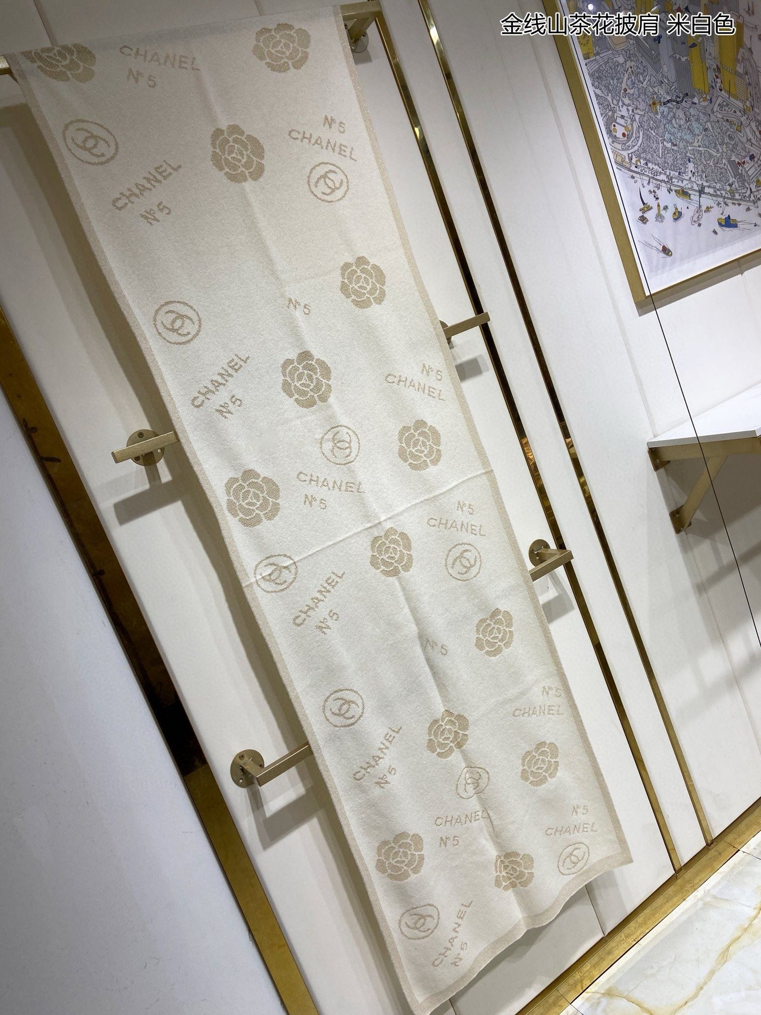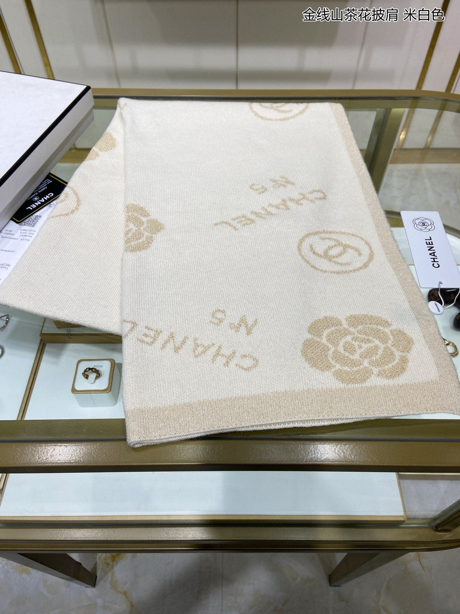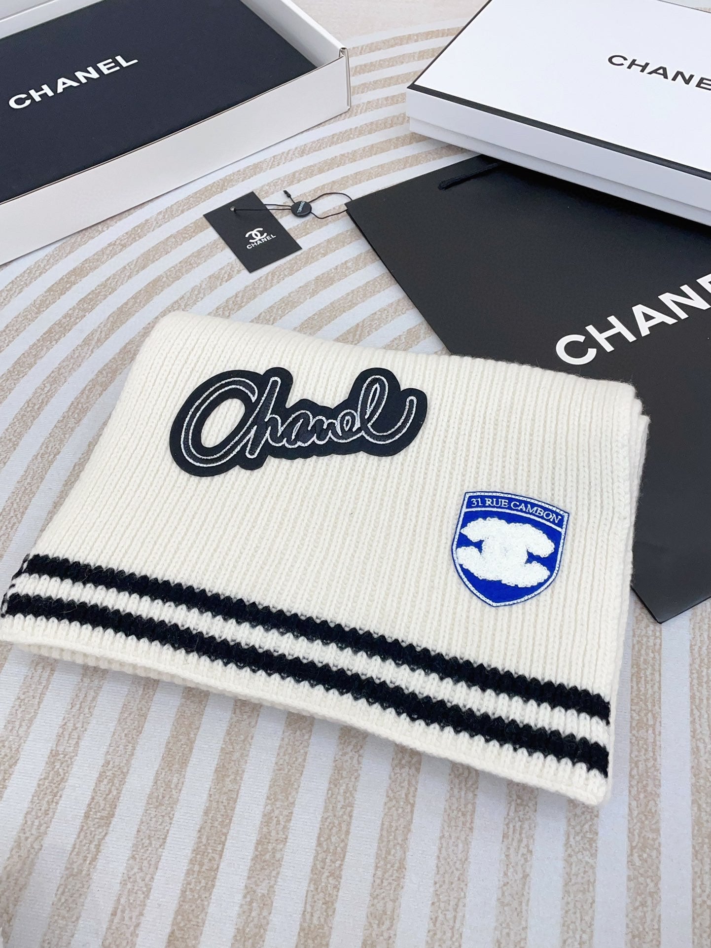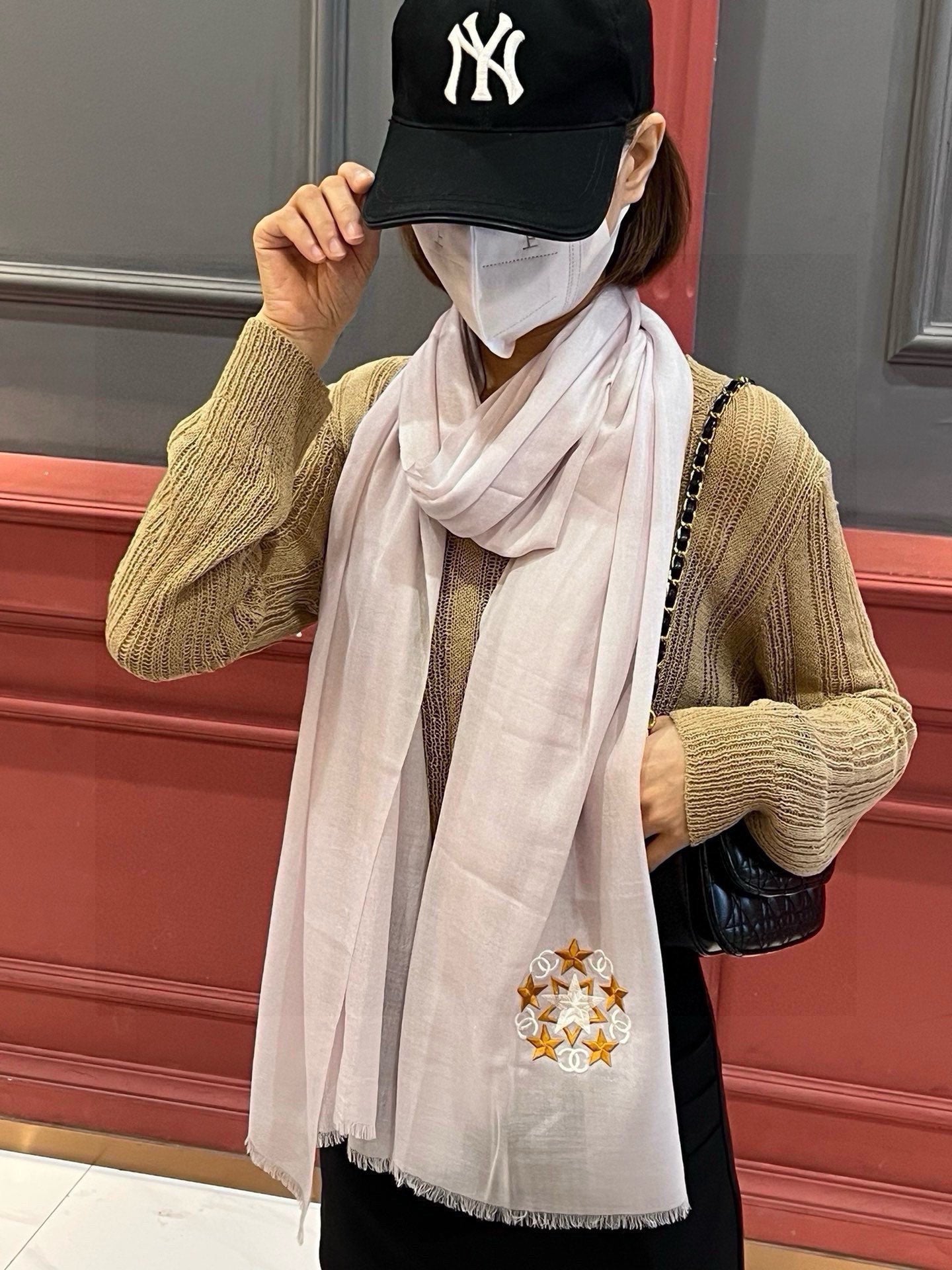 CC Scarf 190 CM In White Logo Print Cashmere 401169