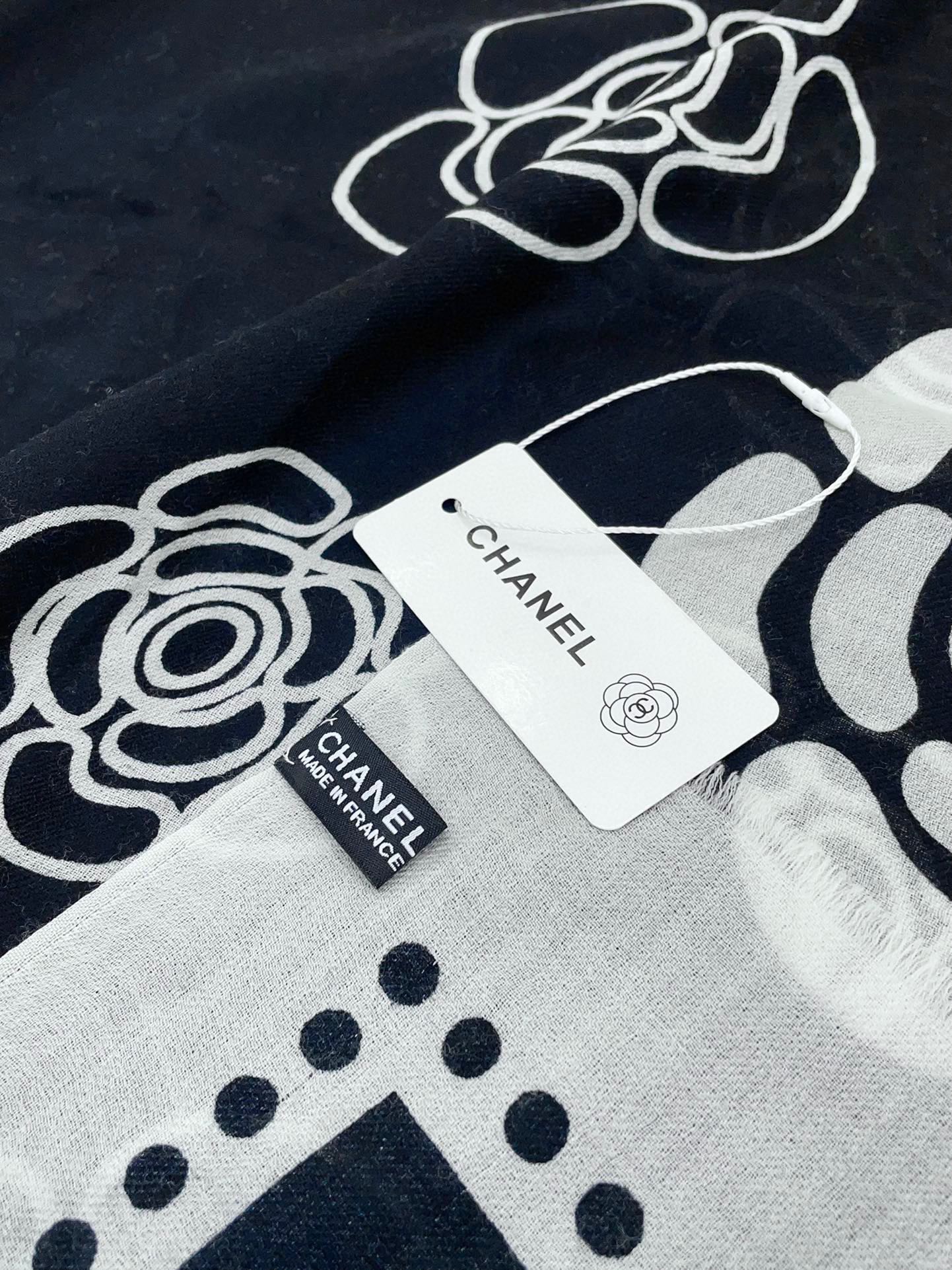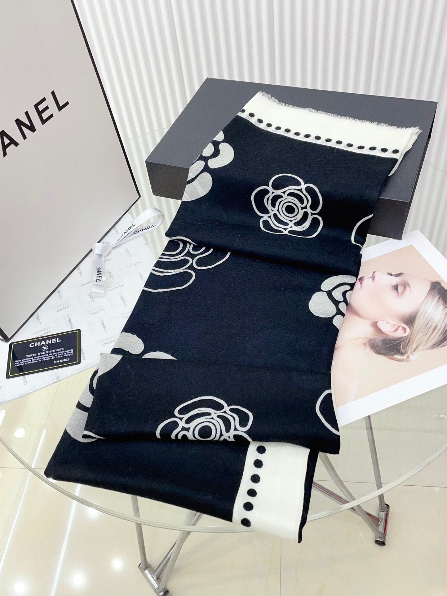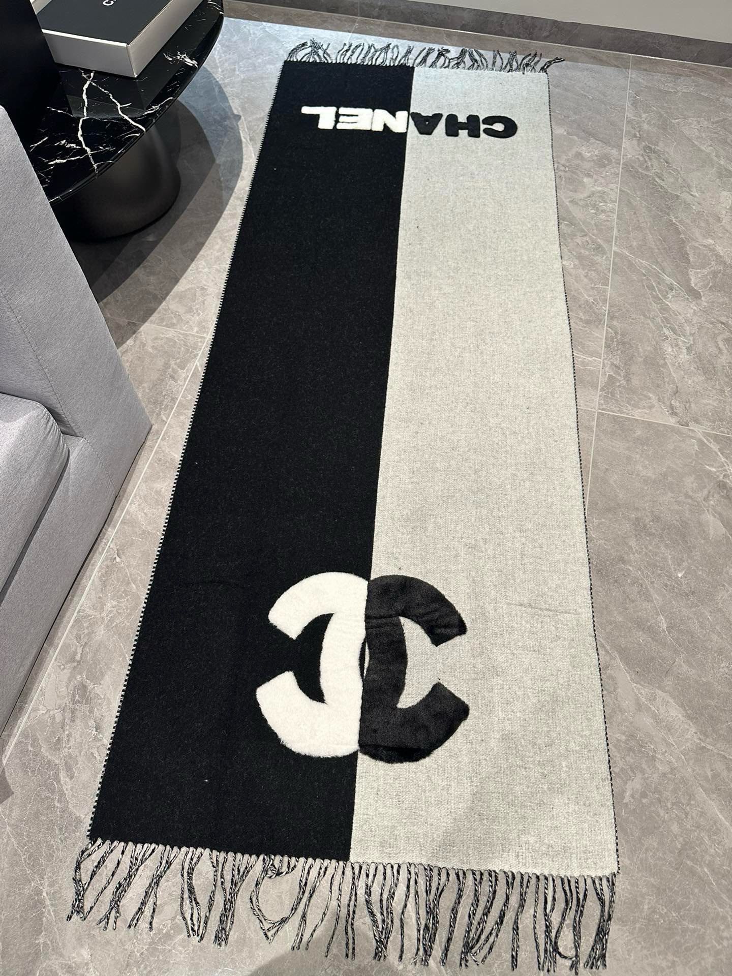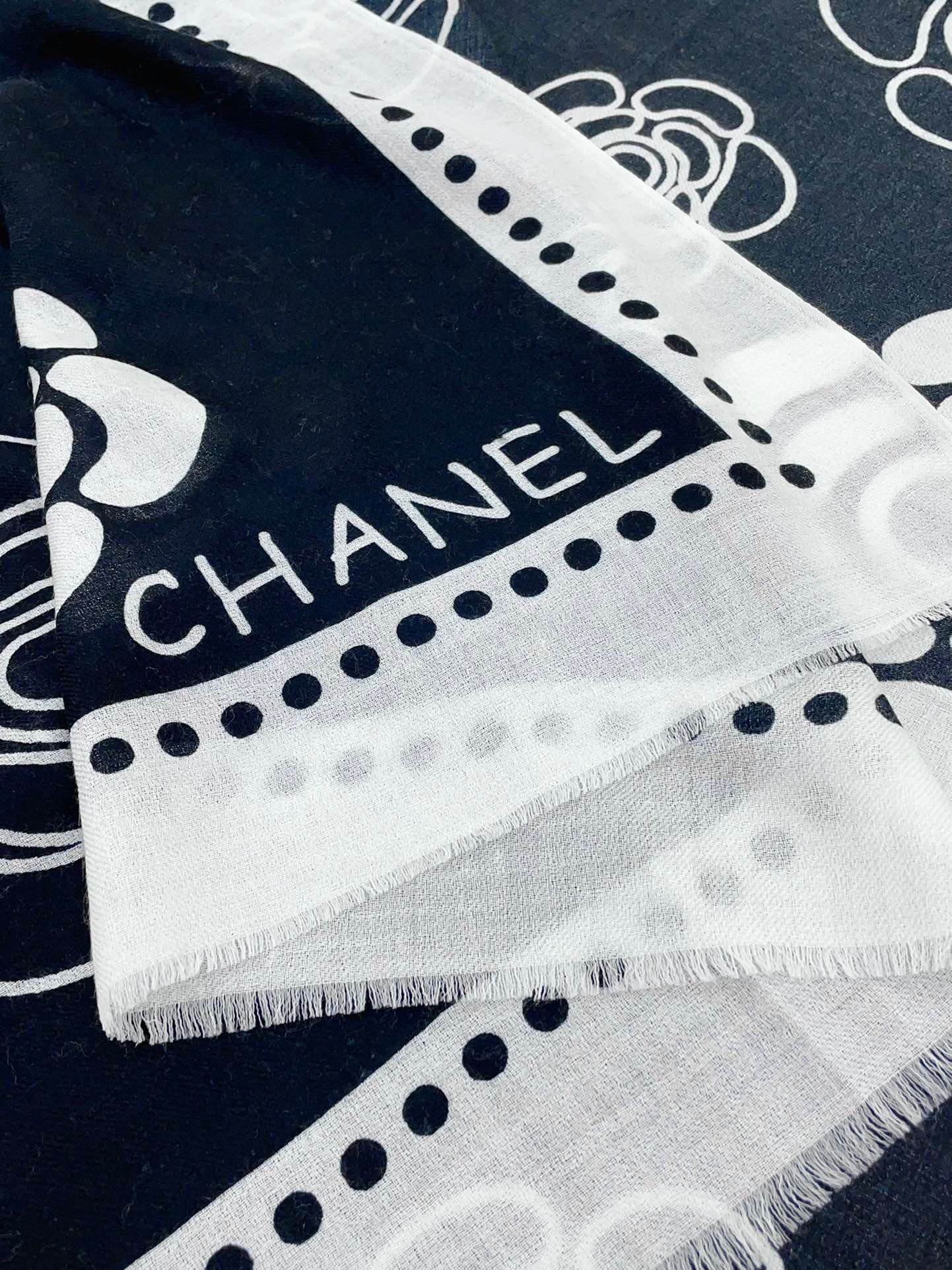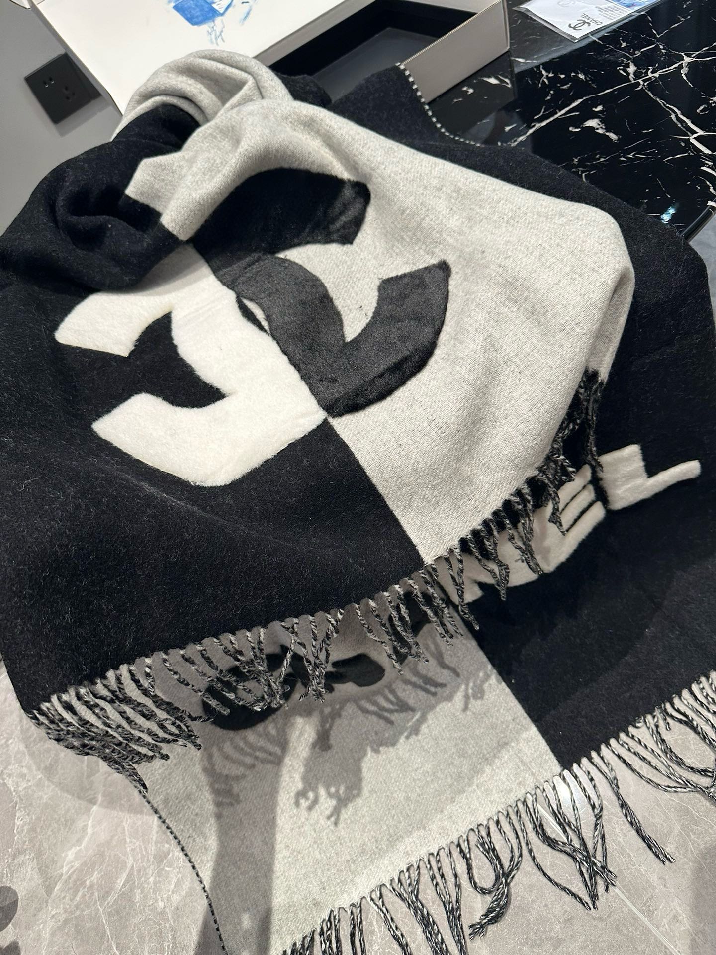 CC Scarf 180 CM In Black Mix White Cashmere And Wool Mix Silk 407255