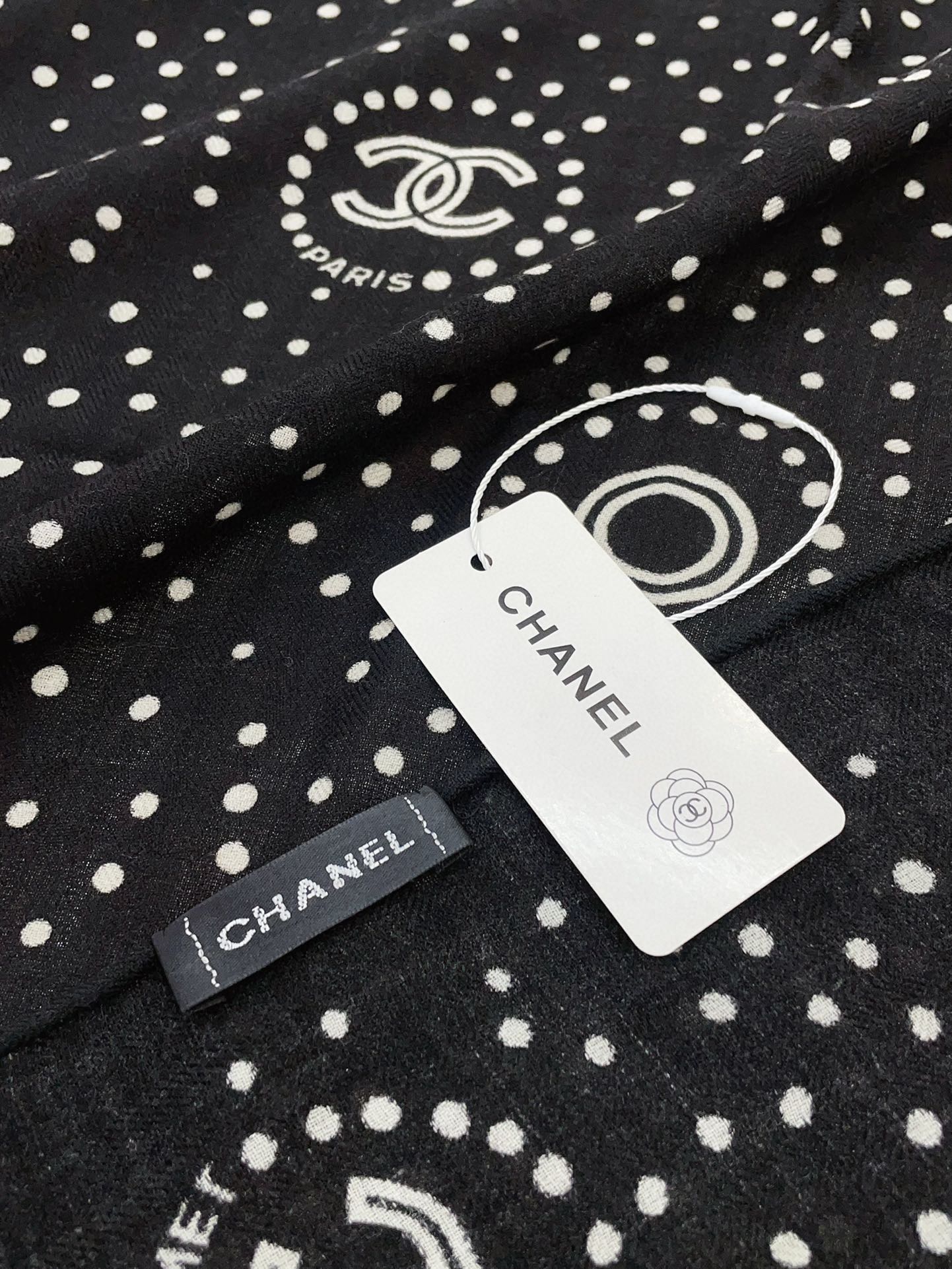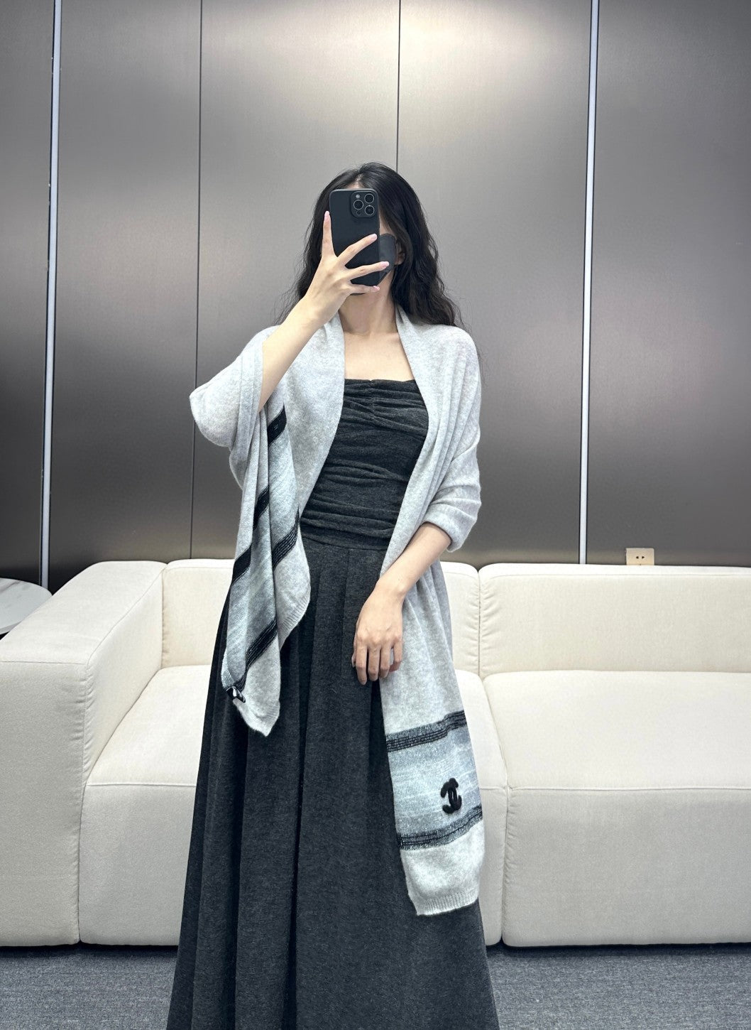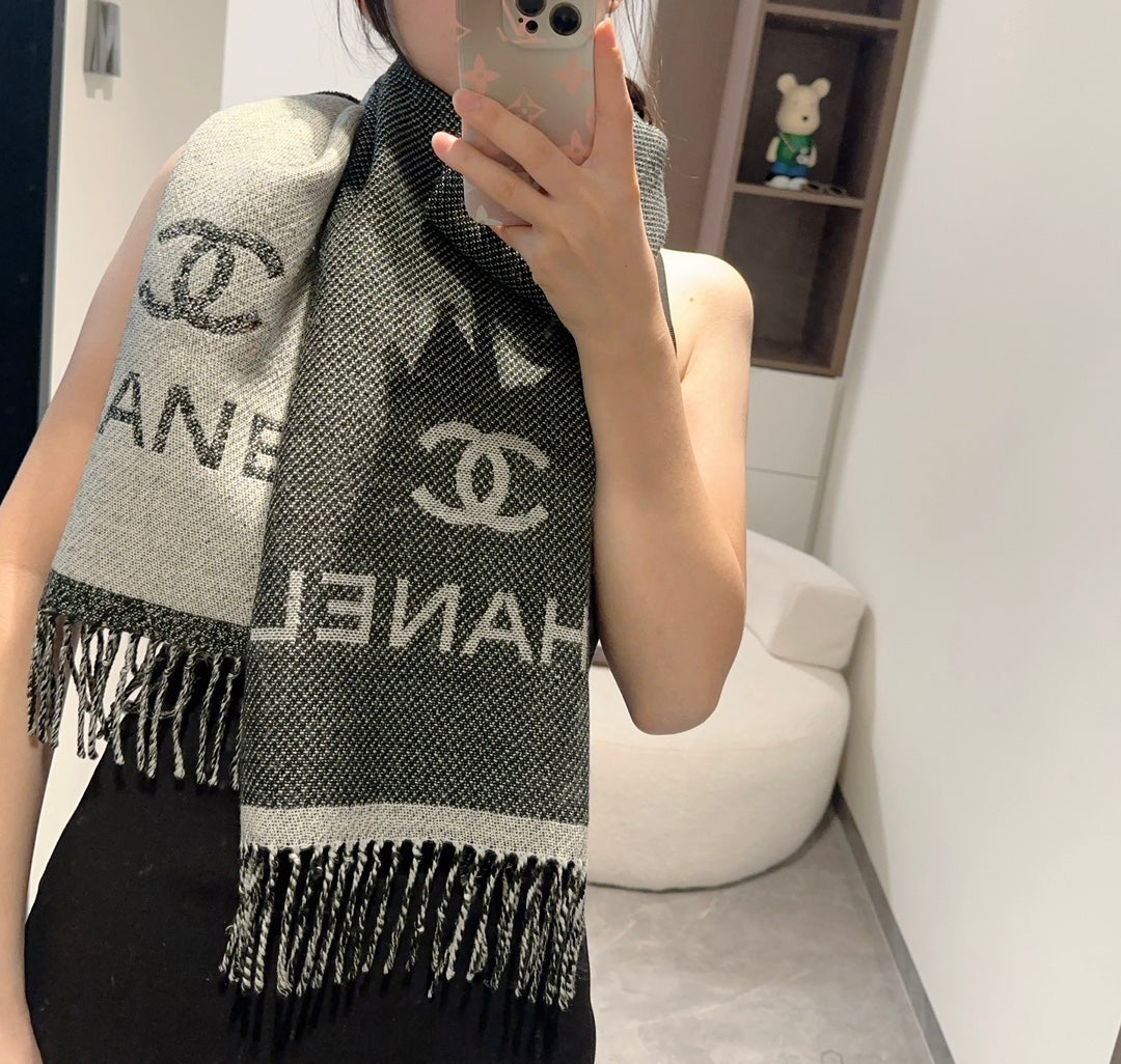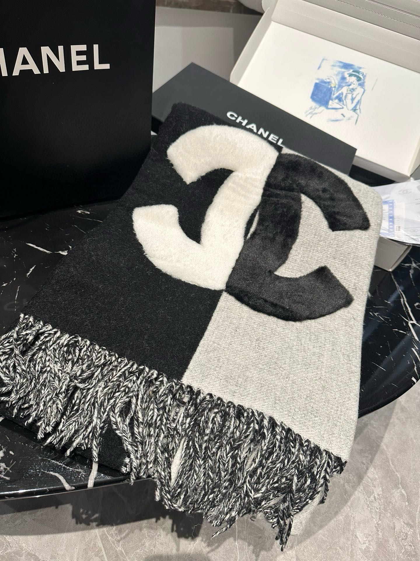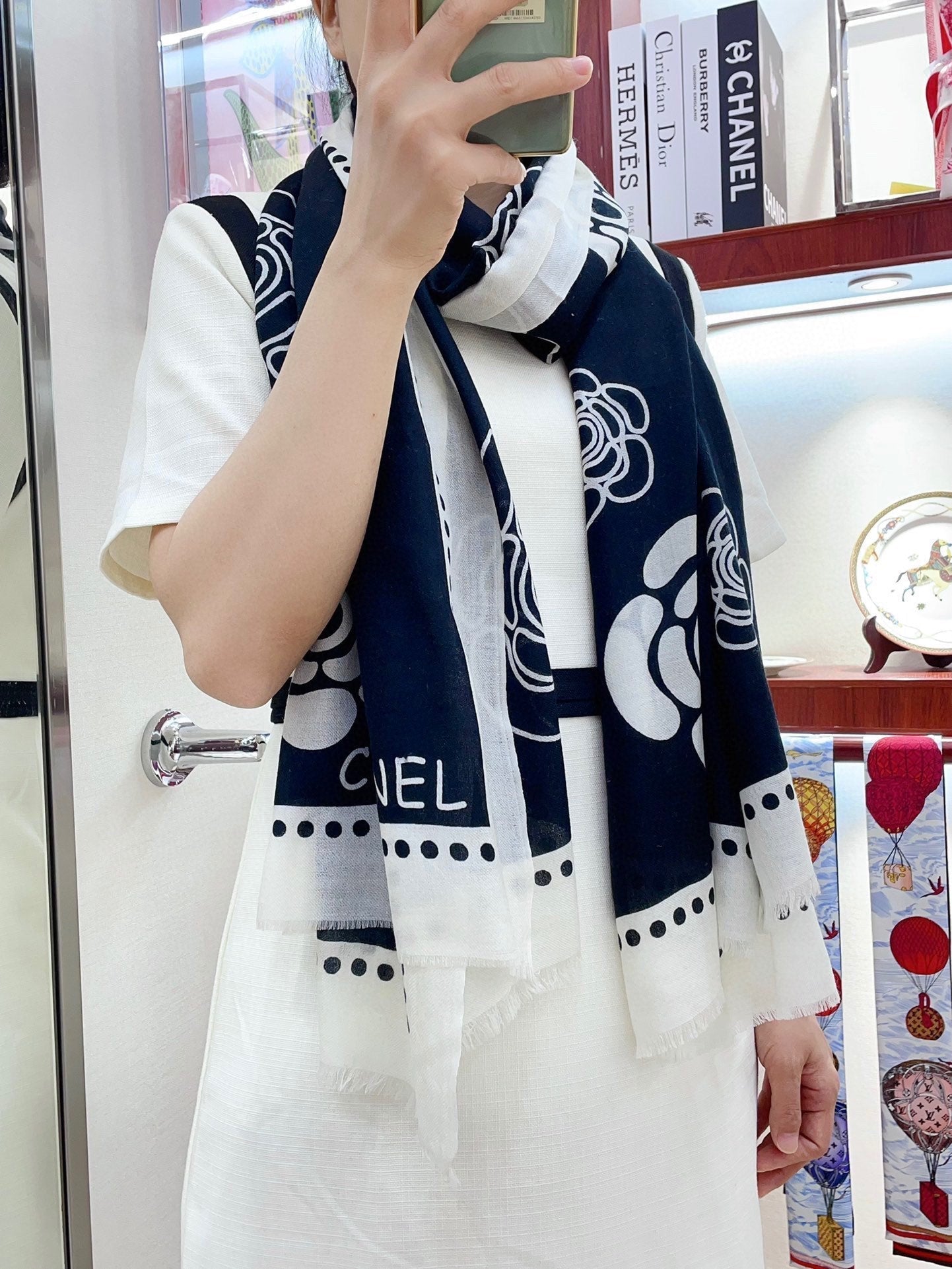 CC Scarf 180 CM In Black Mix White Cashmere And Wool Mix Silk 407255