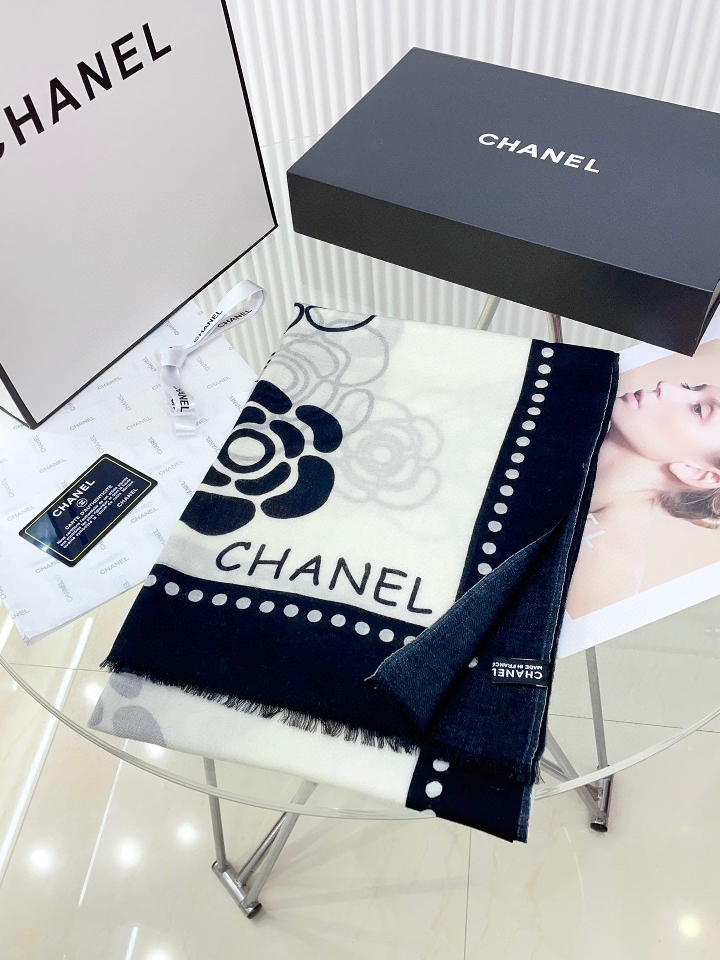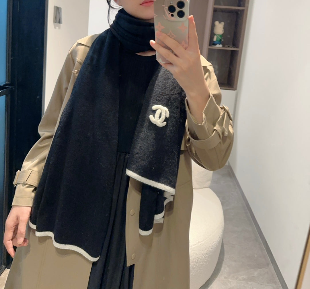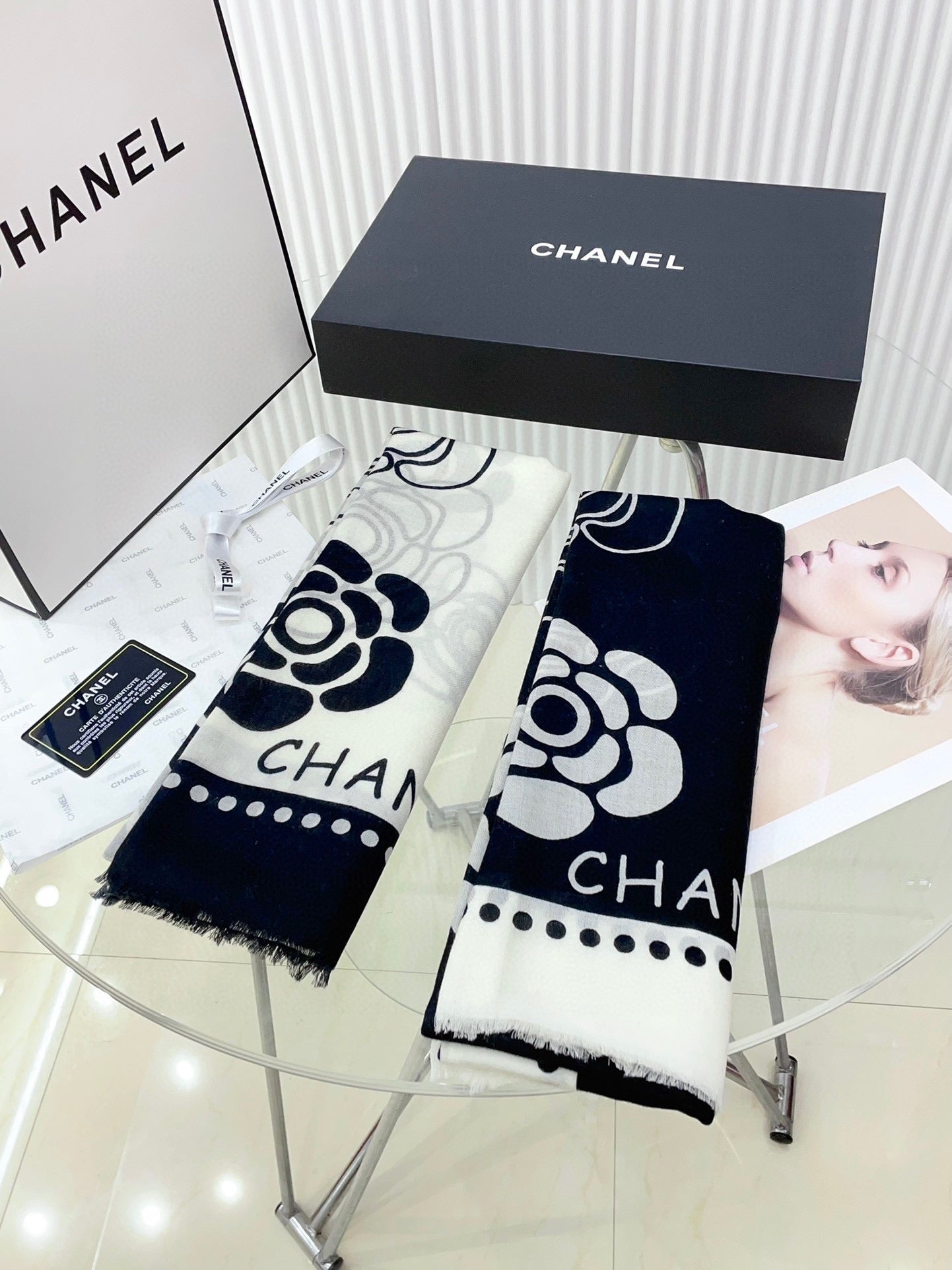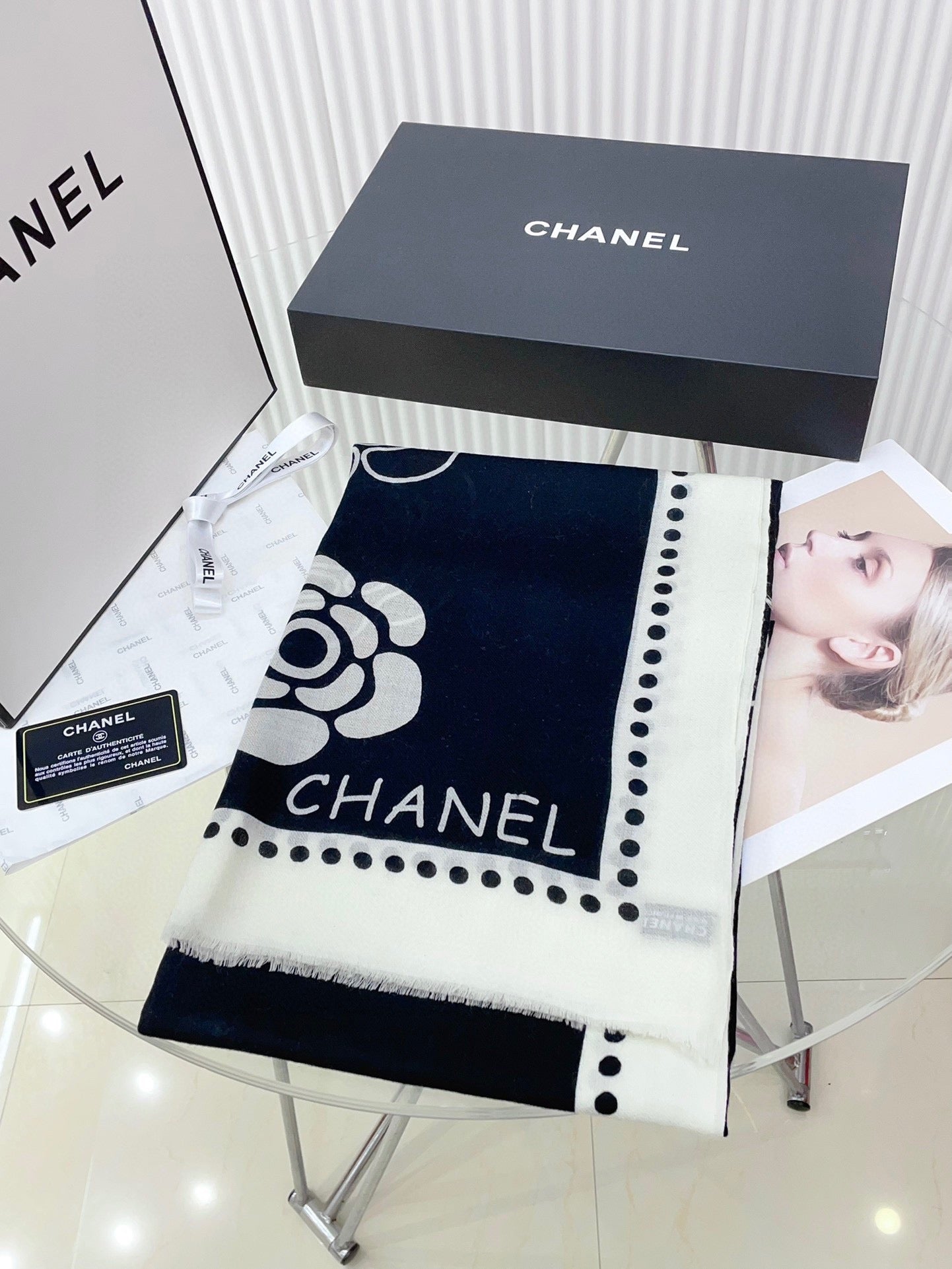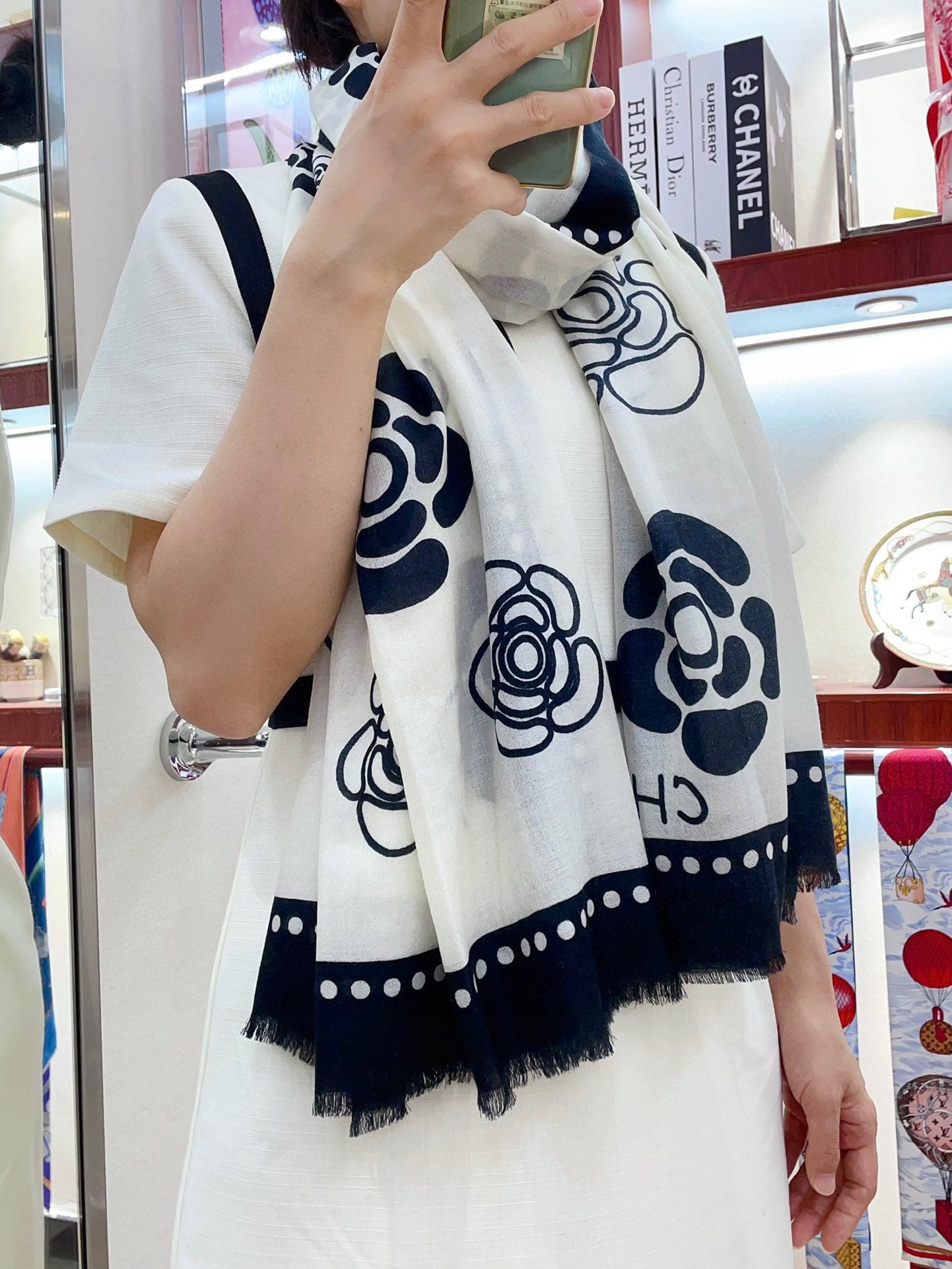 CC Scarf 180 CM In Black Mix White Cashmere And Wool Mix Silk 407255
