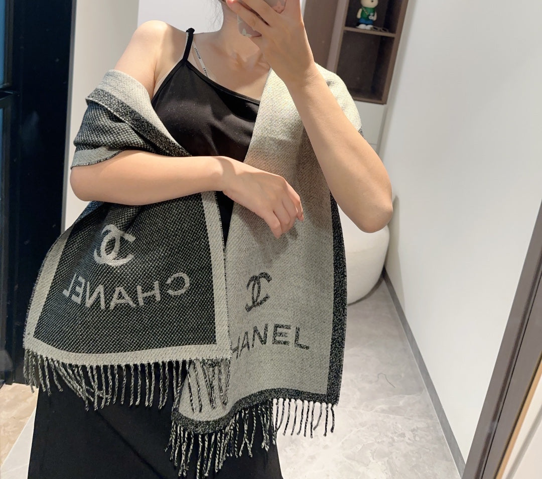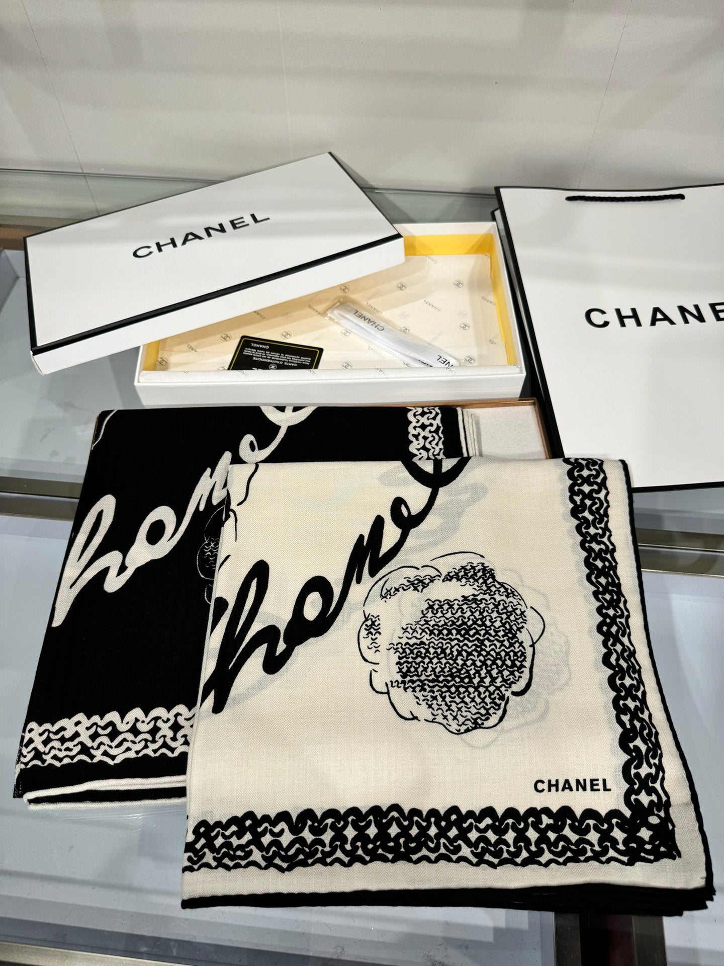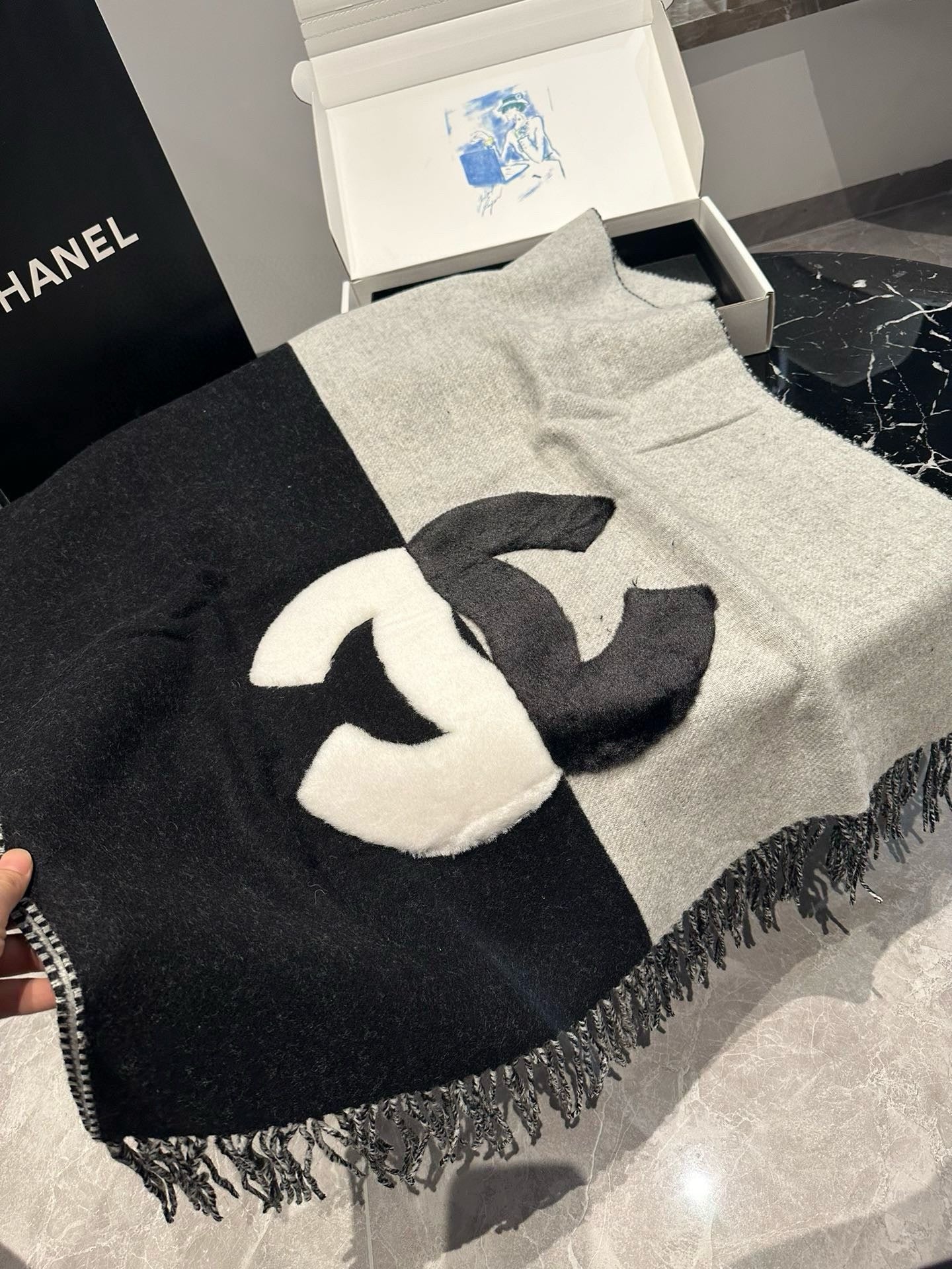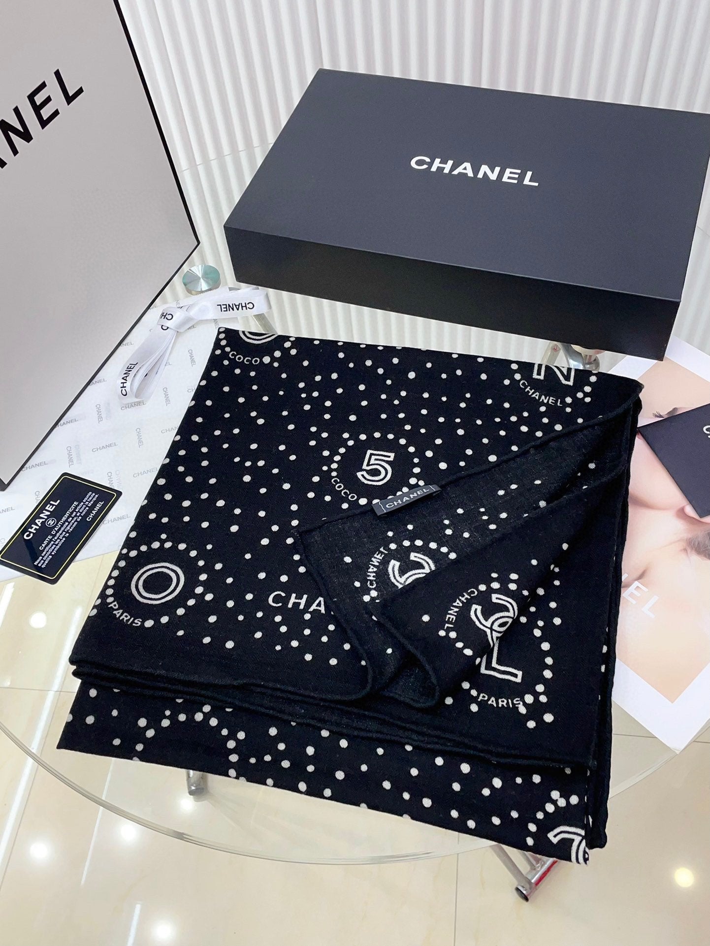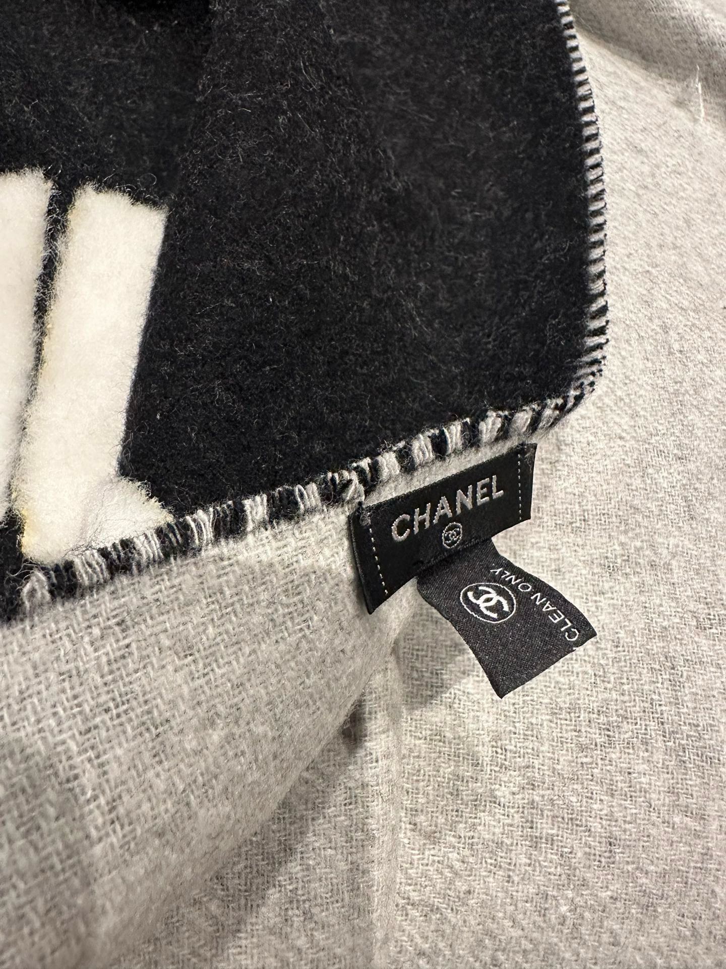 CC Scarf 180 CM In Black Mix White Cashmere And Wool Mix Silk 407255