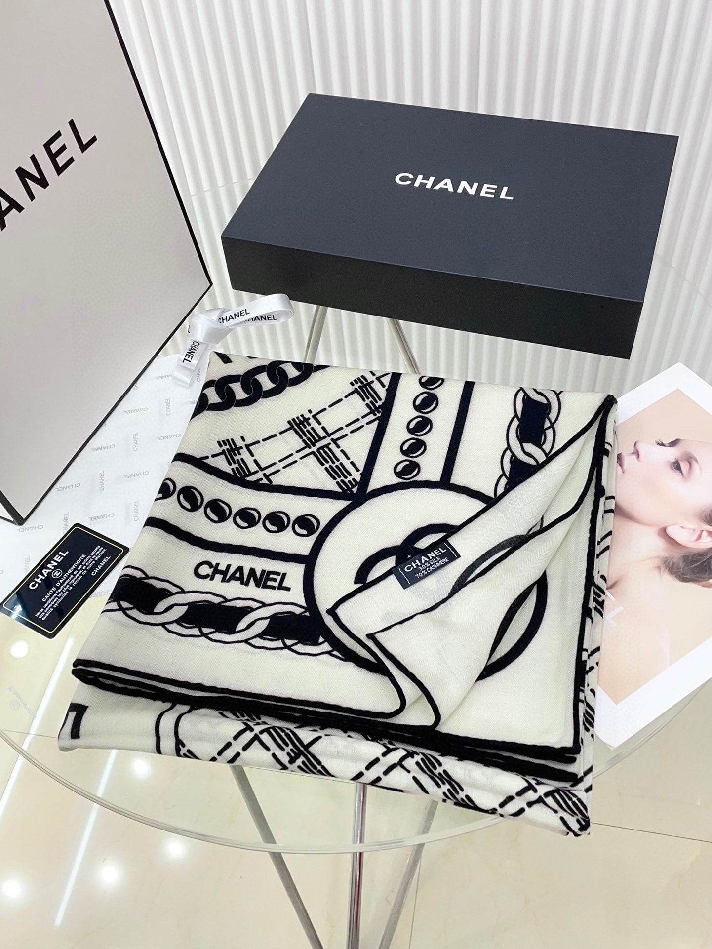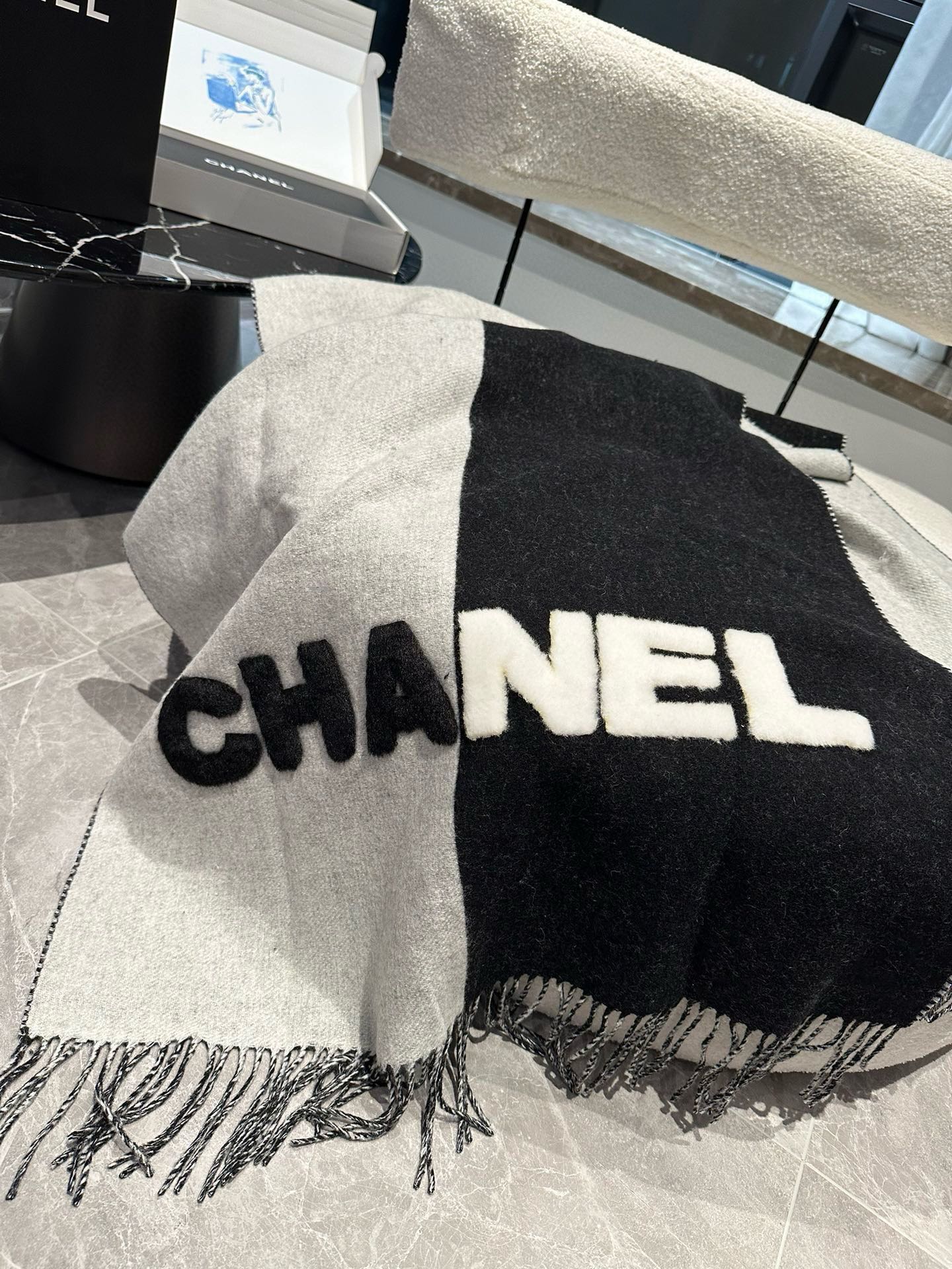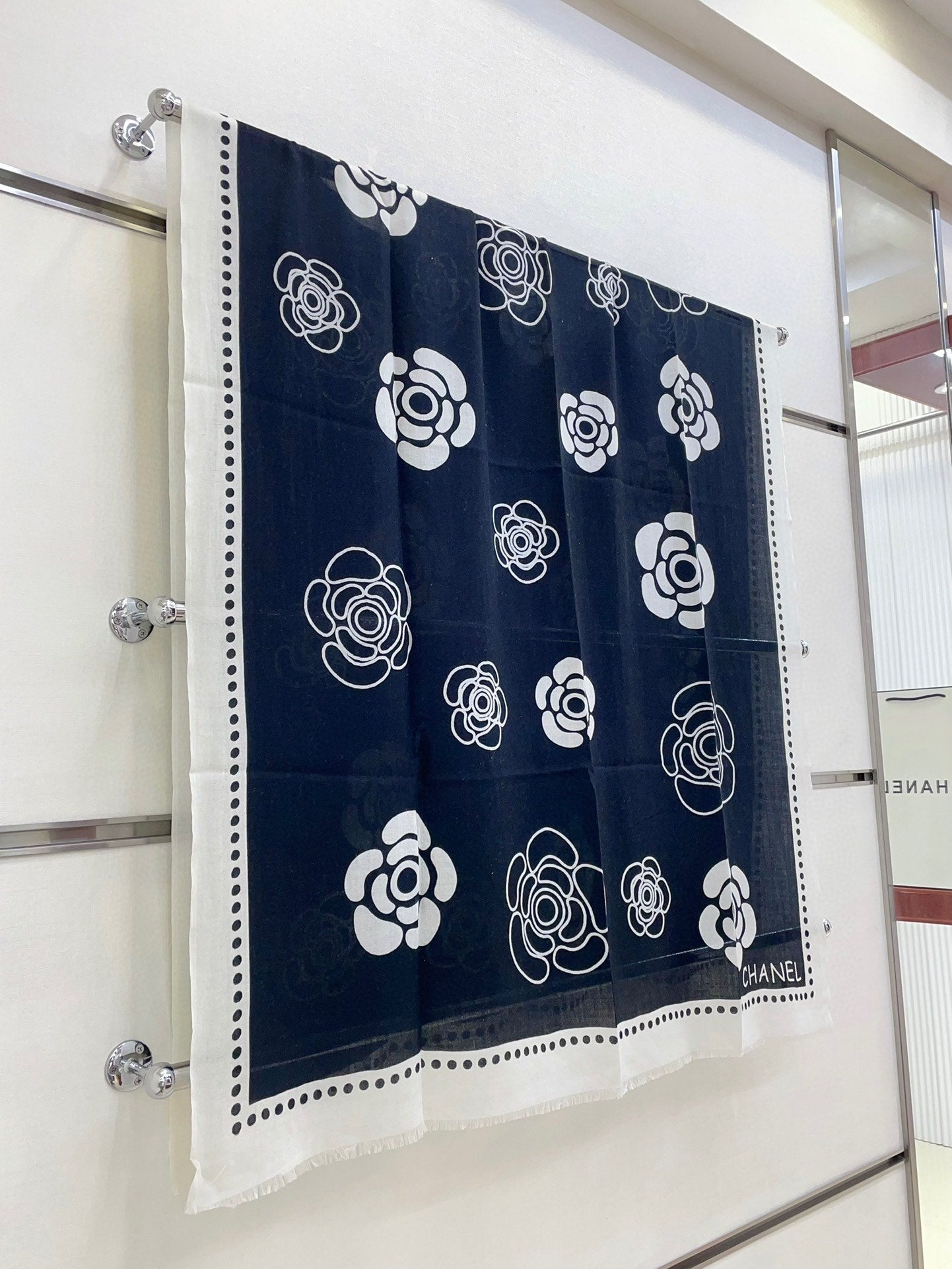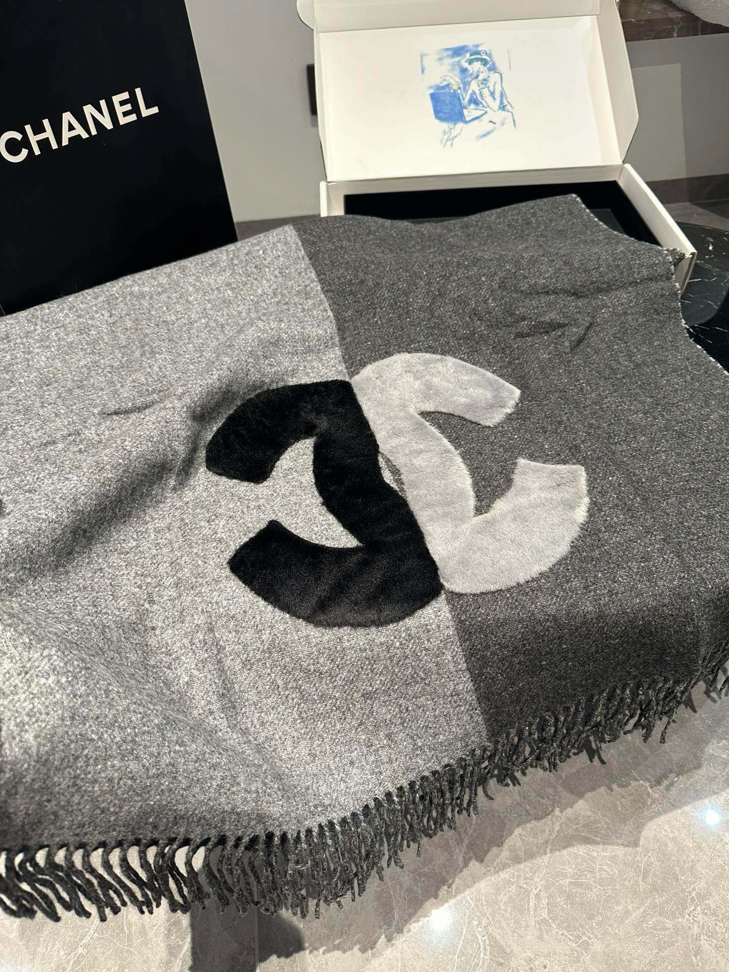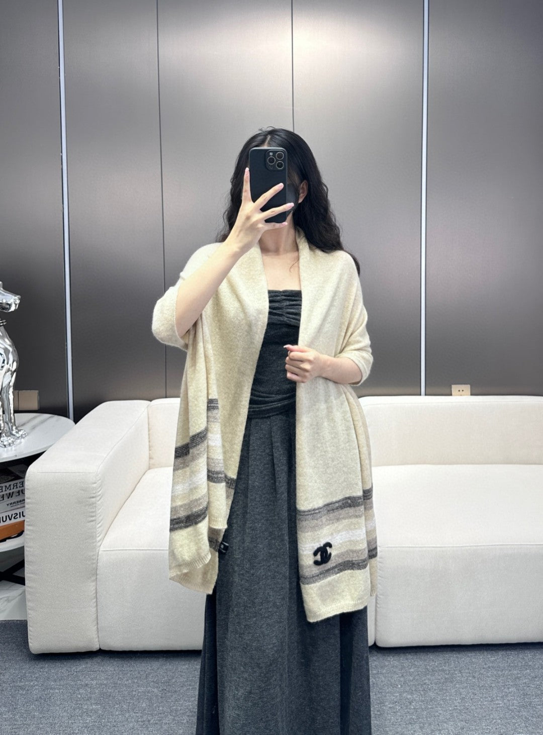 CC Scarf 180 CM In Black Mix White Cashmere And Wool Mix Silk 407255
