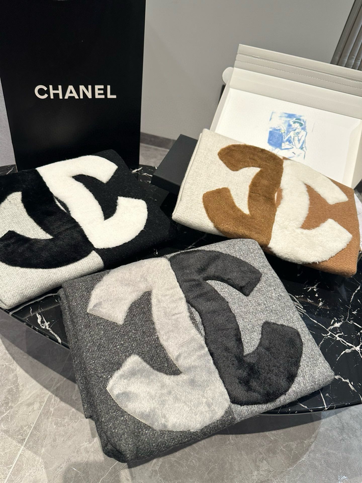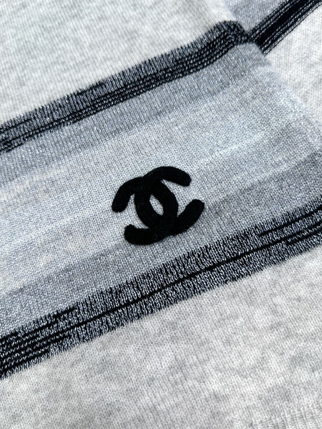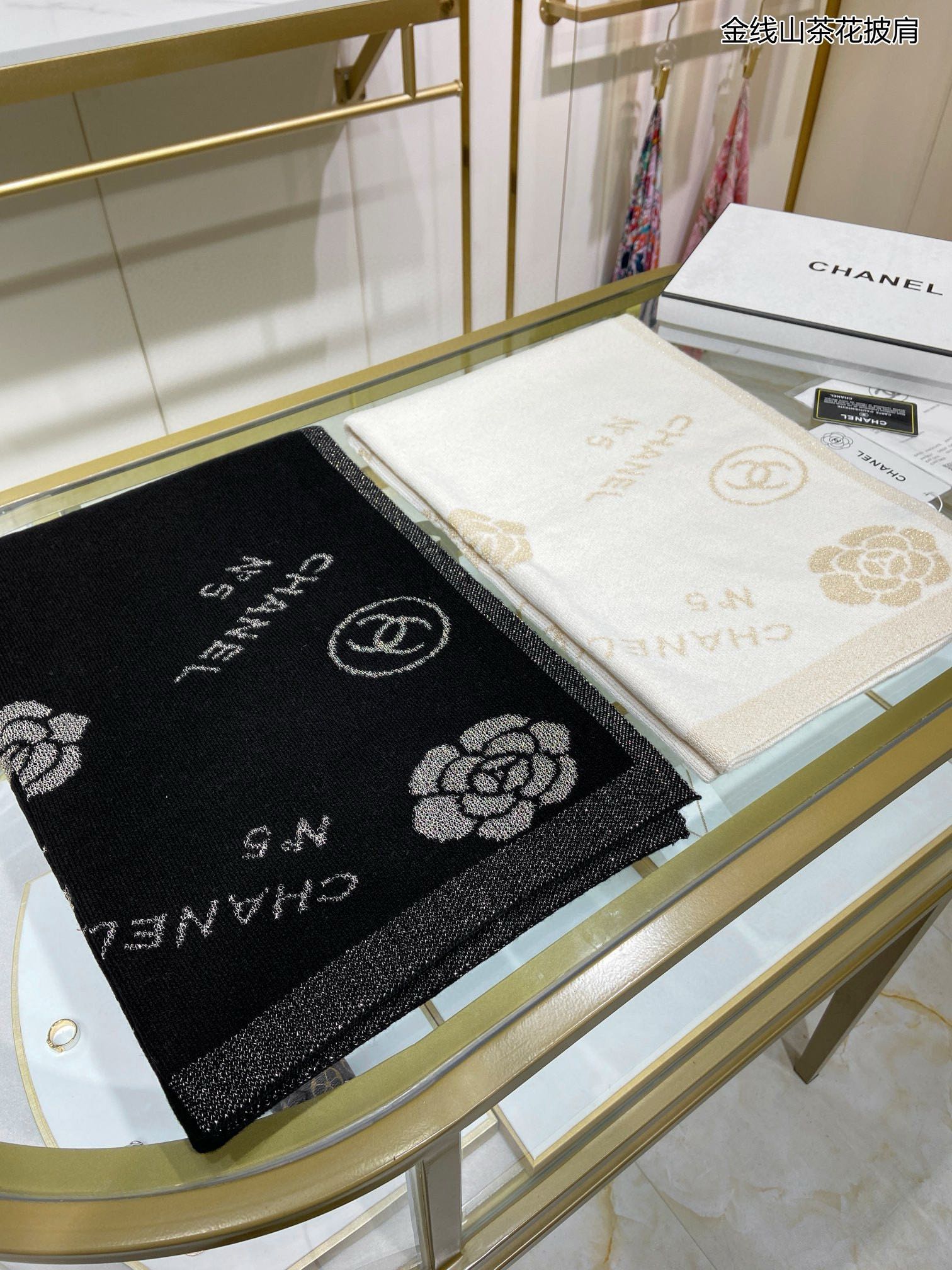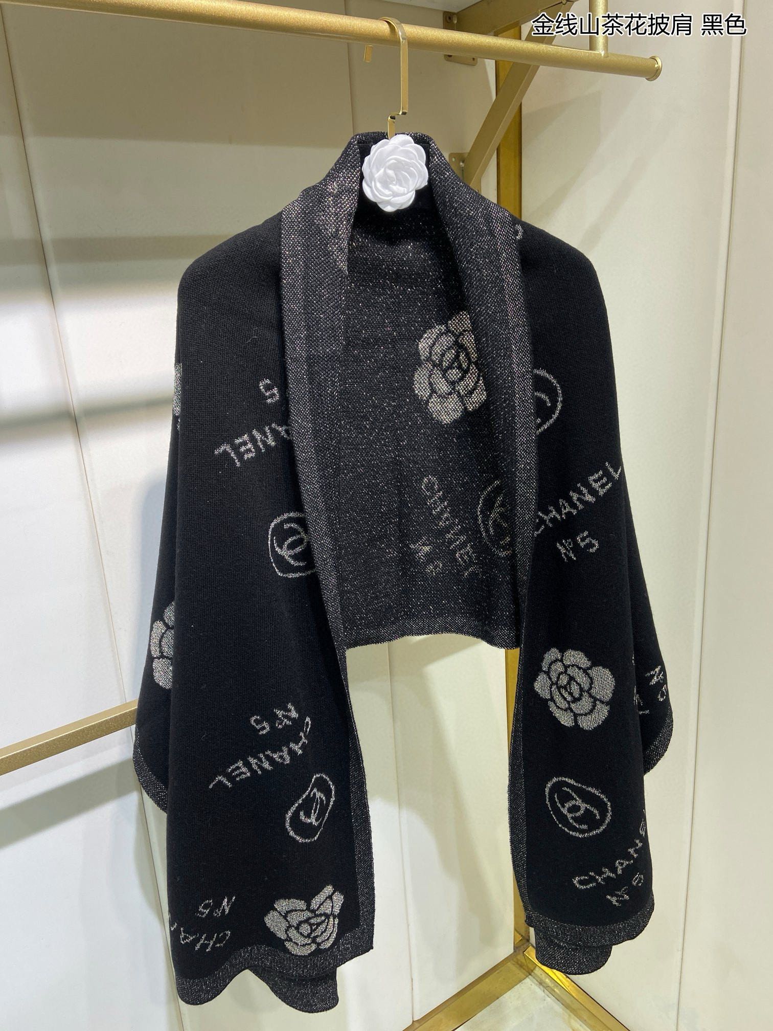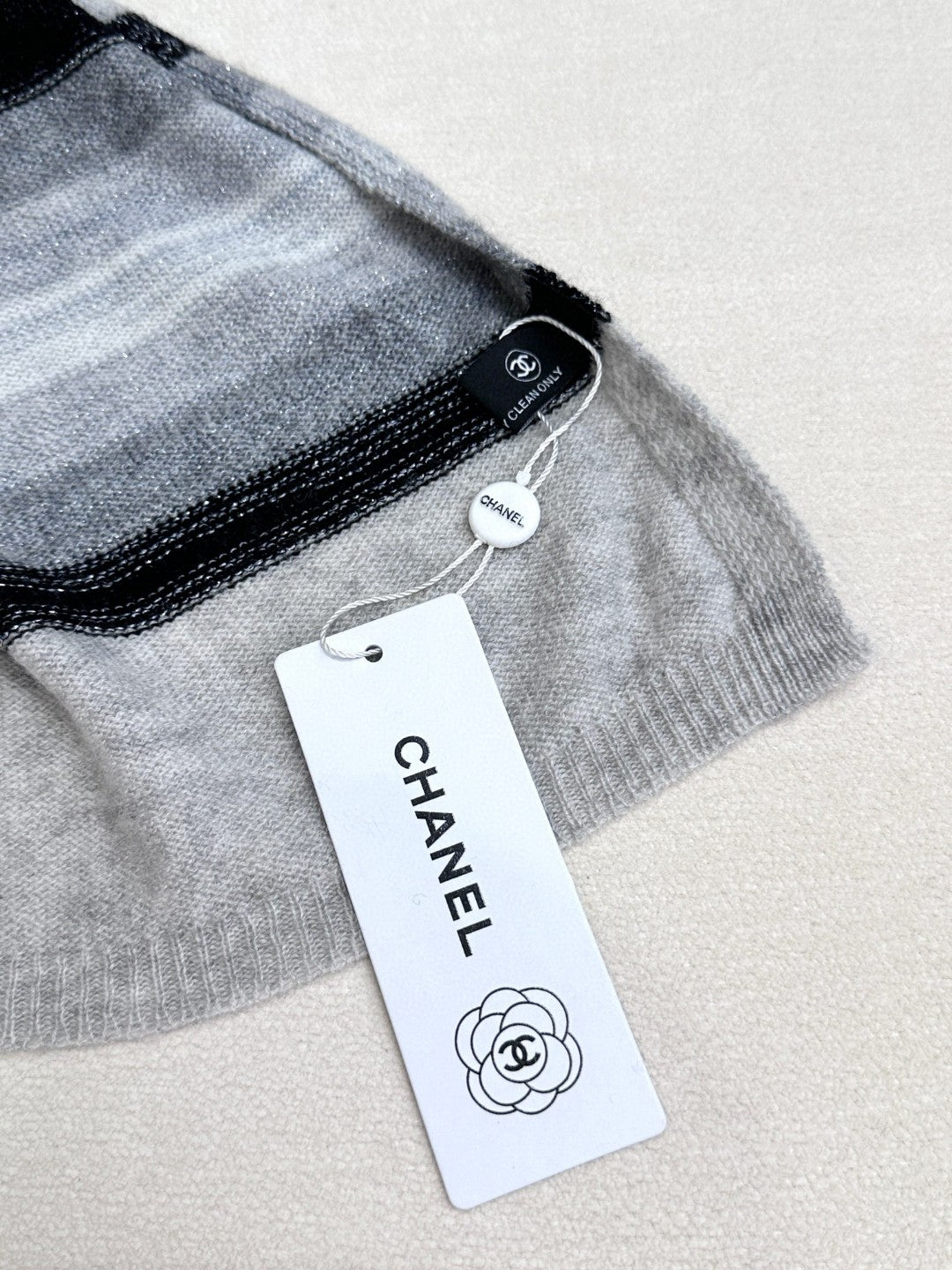 CC Scarf 180 CM In Black Mix White Cashmere And Wool Mix Silk 407255