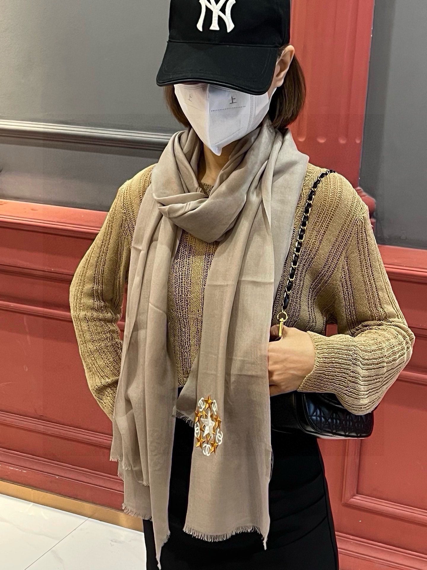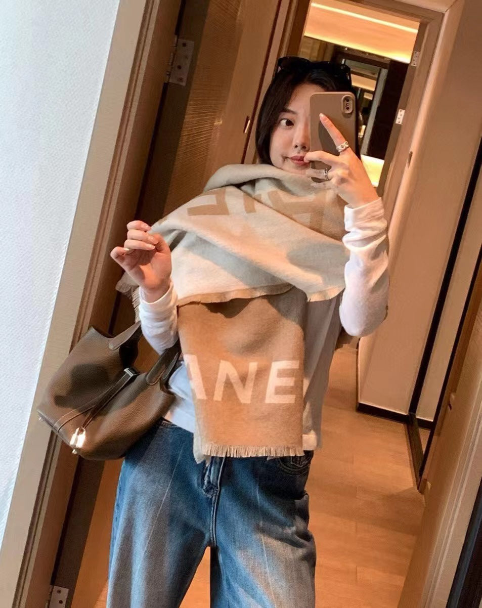CC Scarf 200 CM In Beige Mix Grey Cashmere 405496