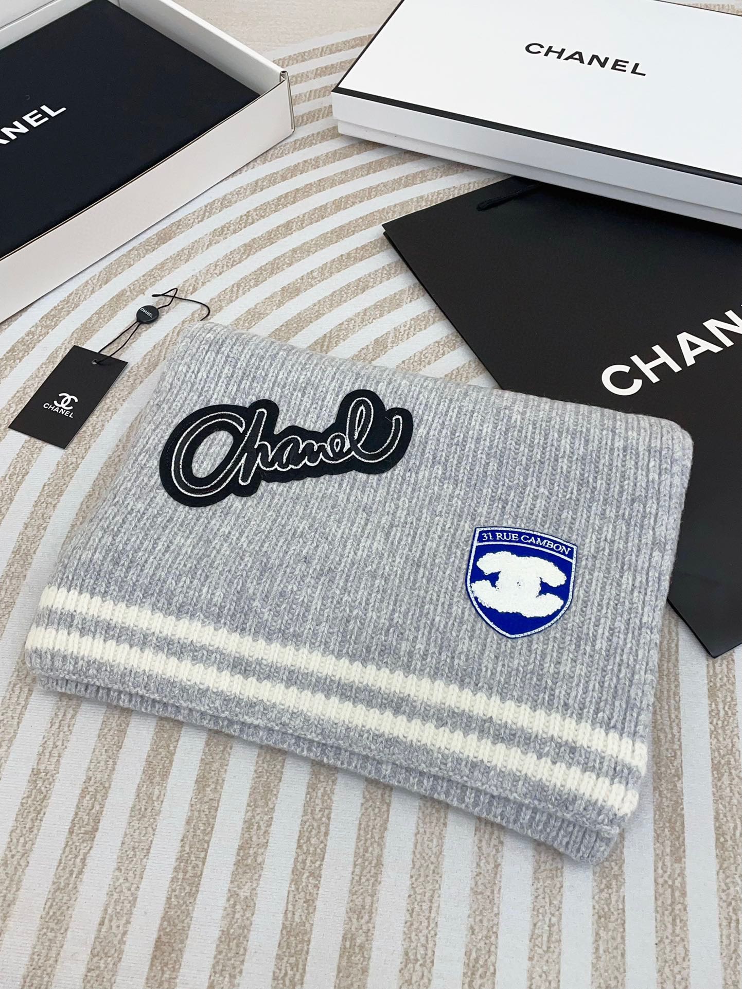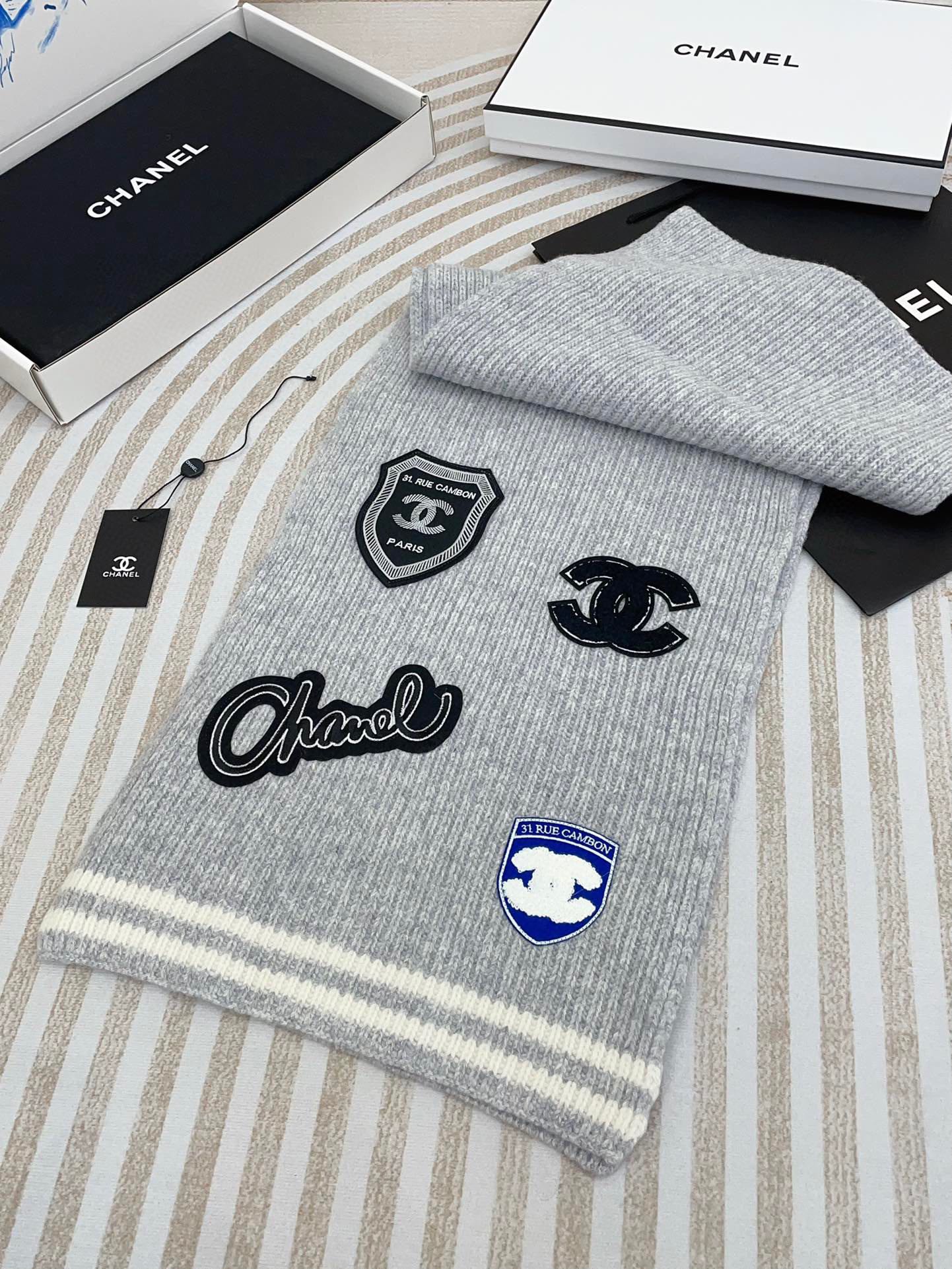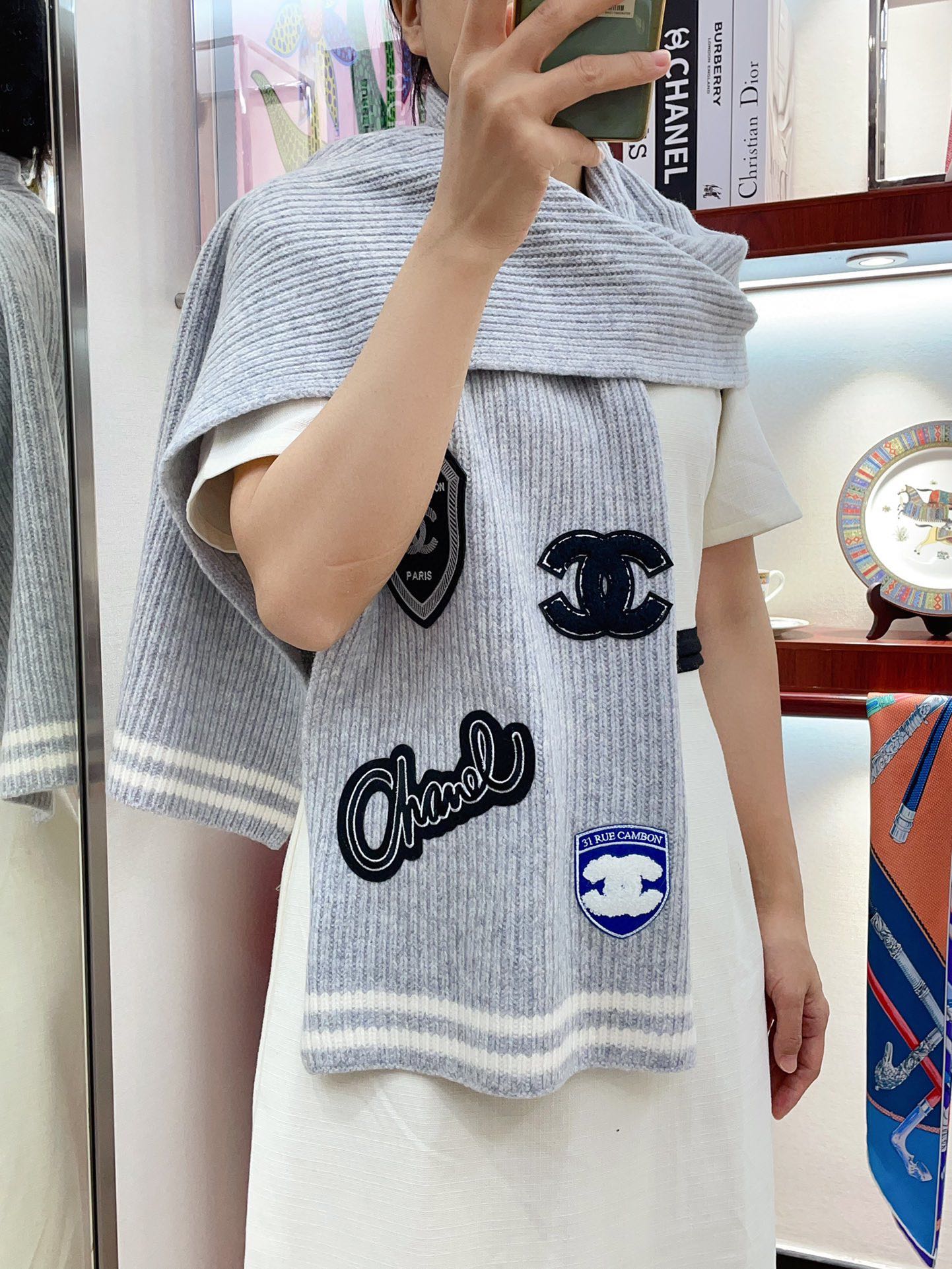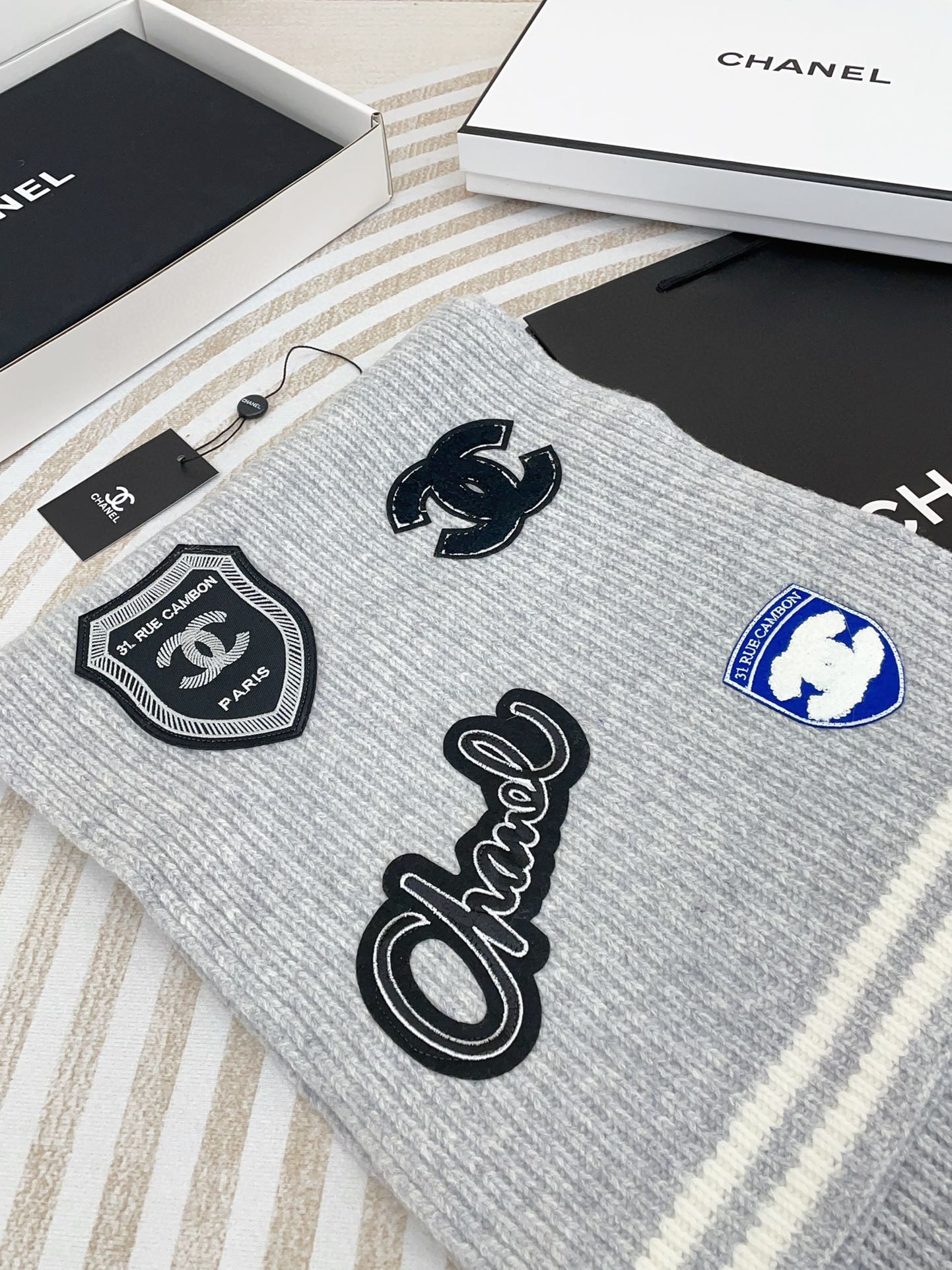 CC Scarf 190 CM In Grey Logo Print Cashmere 401170