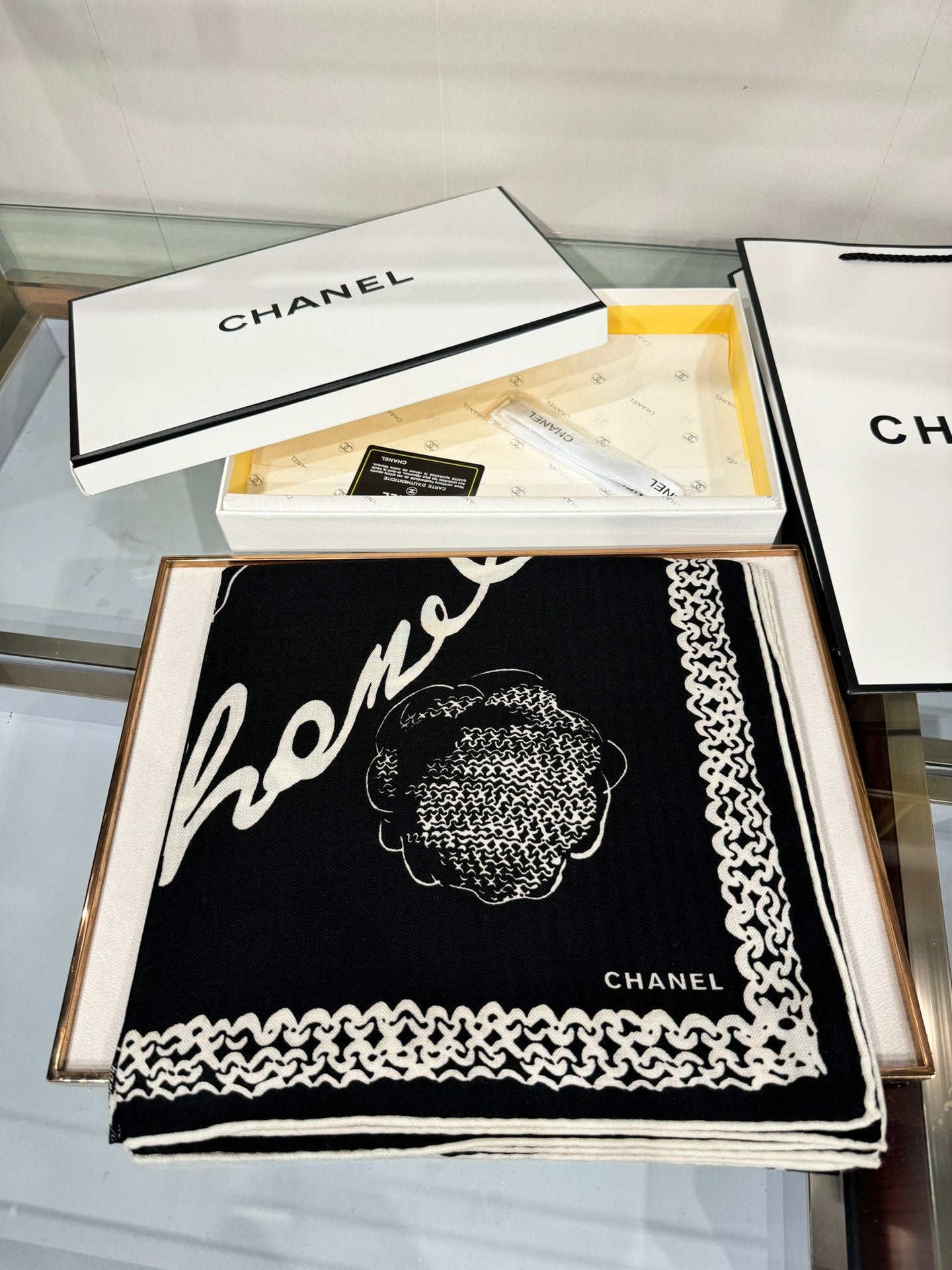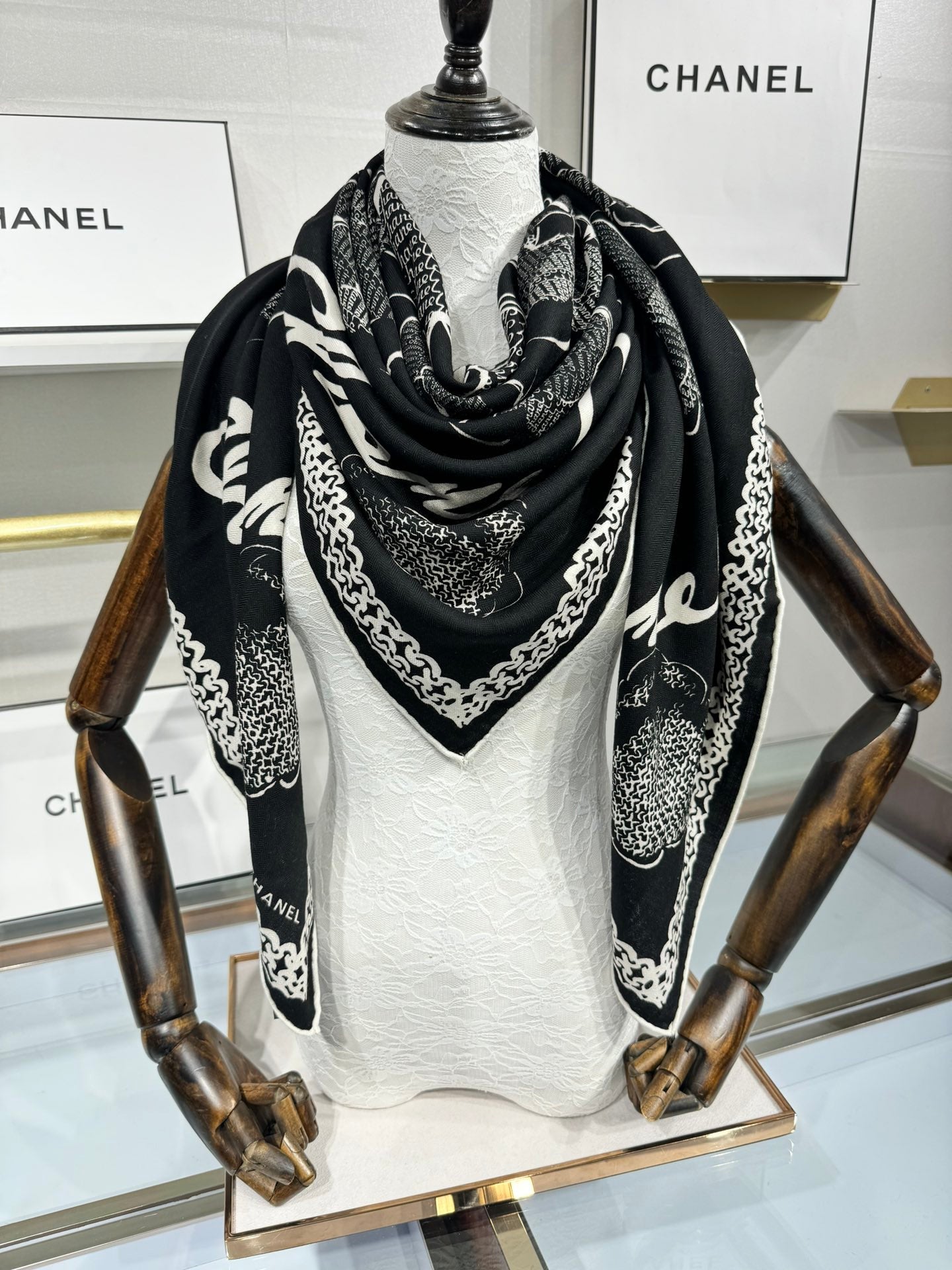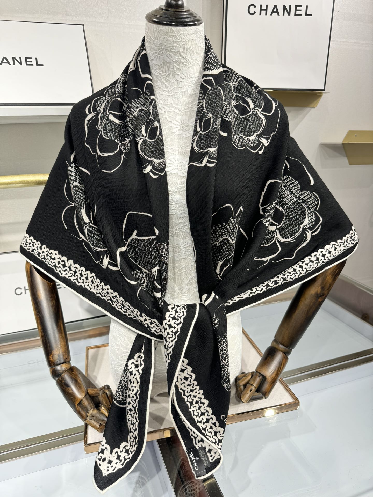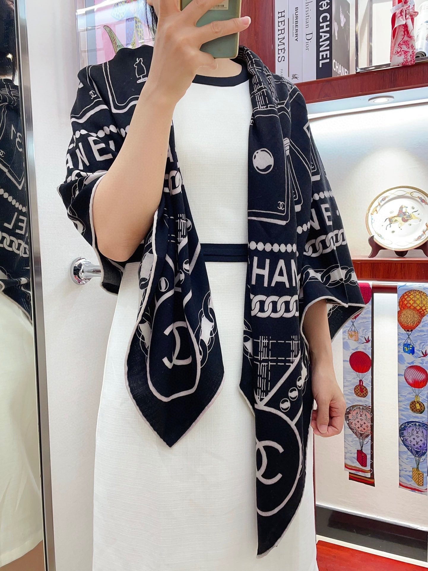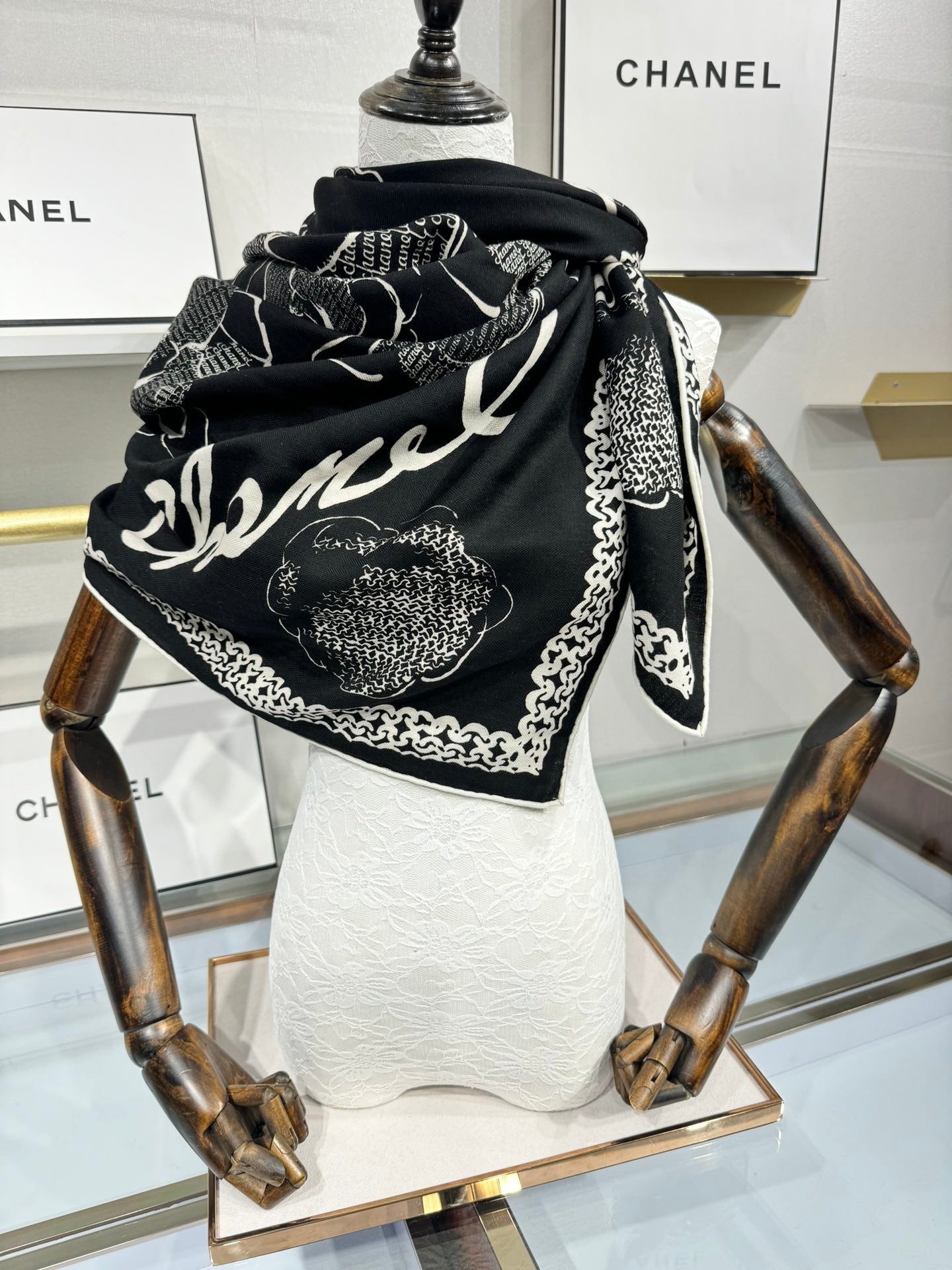 CC Square Scarf 140 CM In Black Mix White Cashmere And Silk 398280