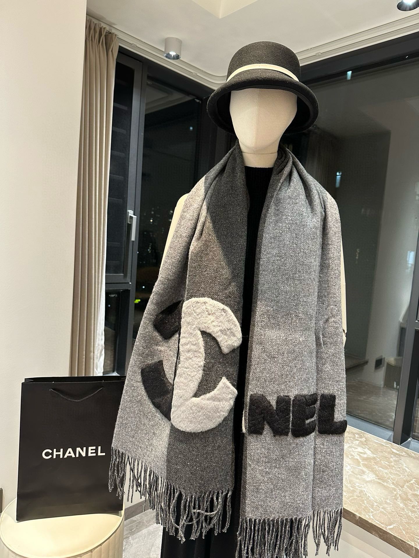 CC Scarf 180 CM In Black Mix Grey Cashmere 407235