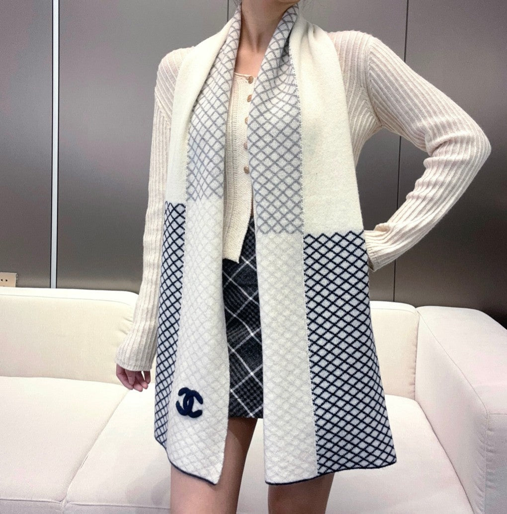 CC Scarf 190 CM In White Mix Black Cashmere And Wool 401998