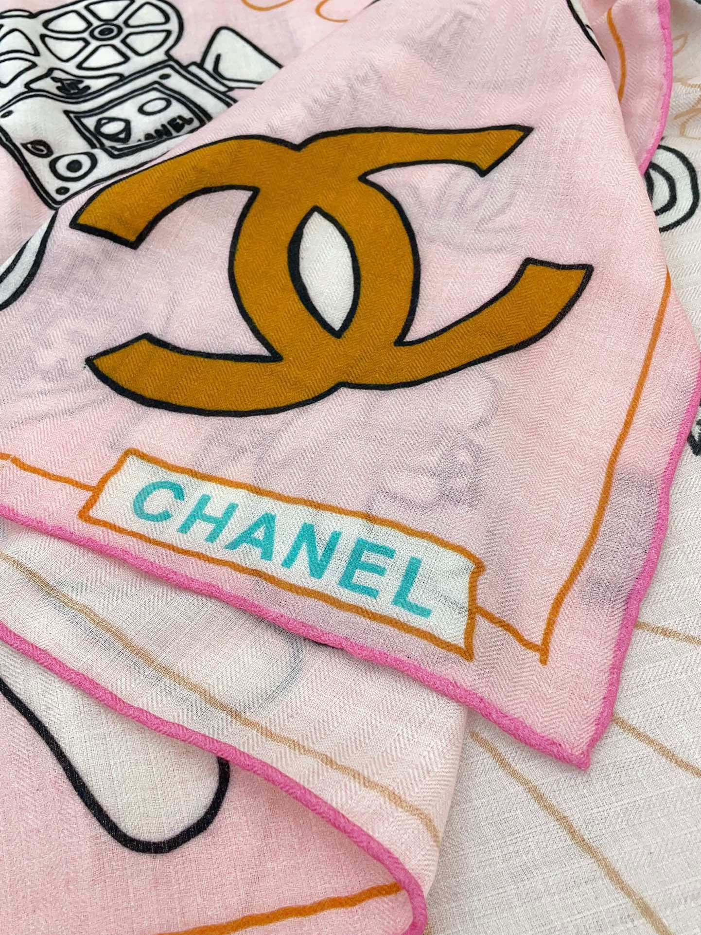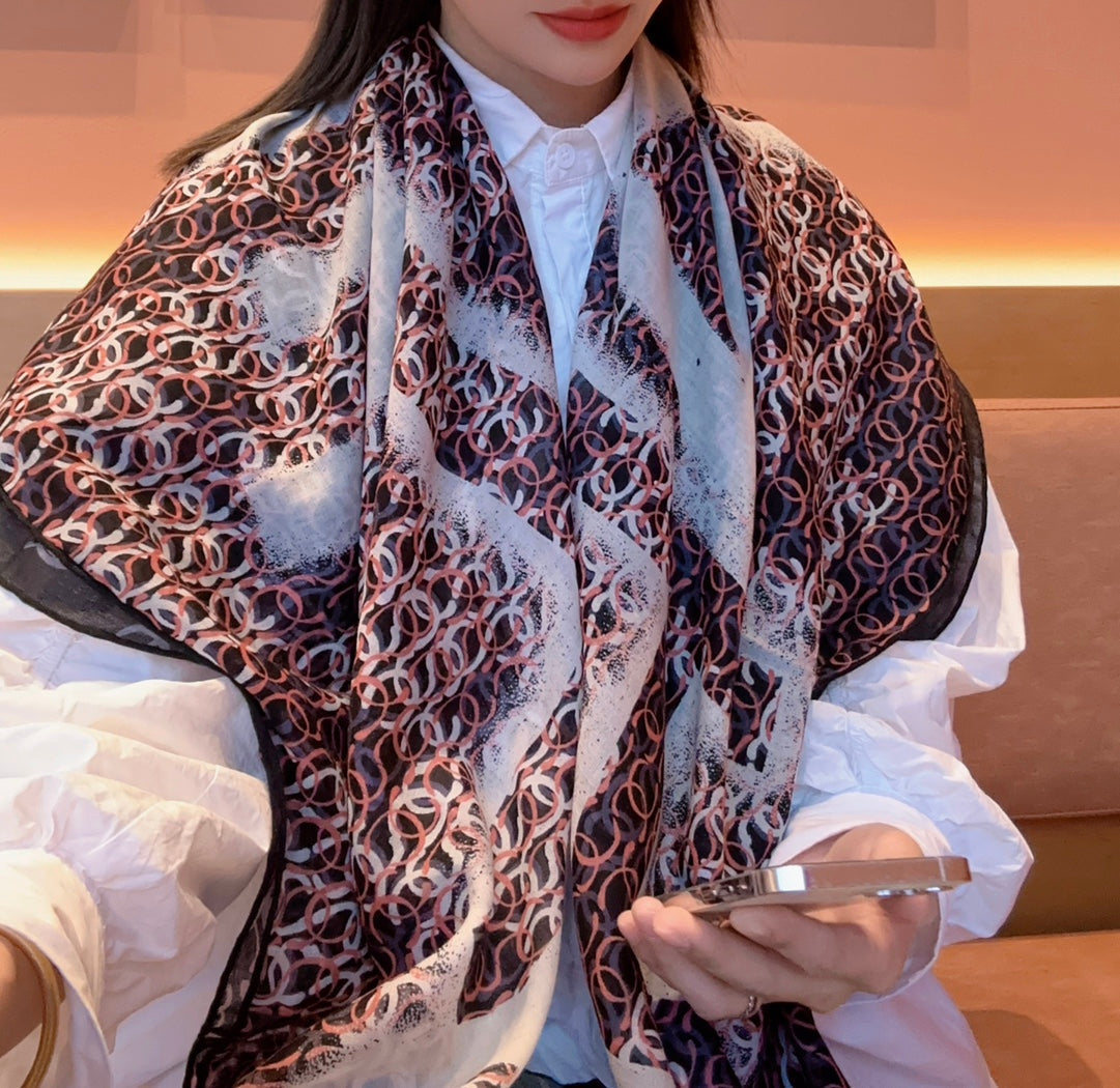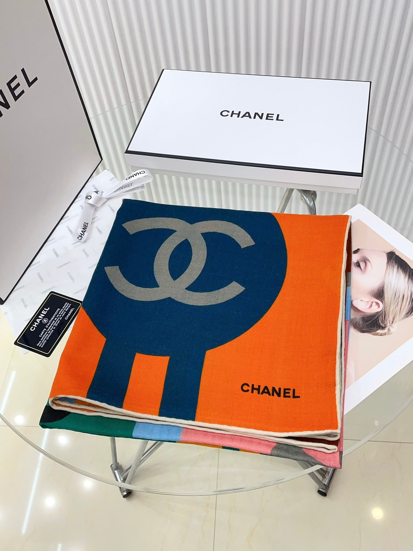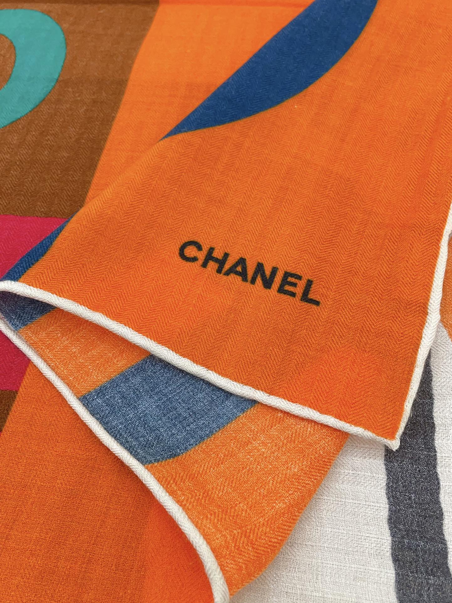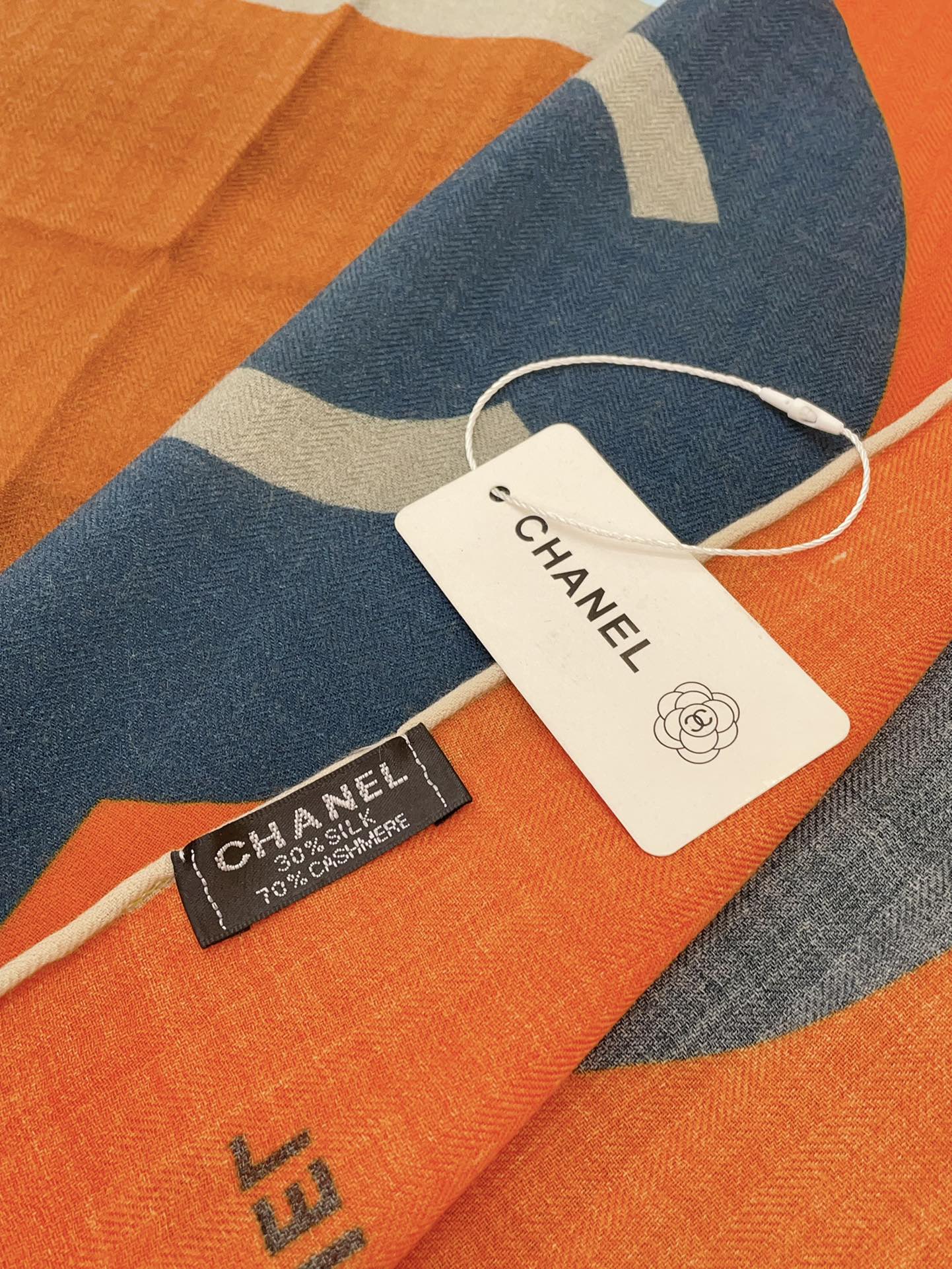 CC Scarf 180 CM In Orange Mix Beige Print Logo Wool And Cashmere 359269