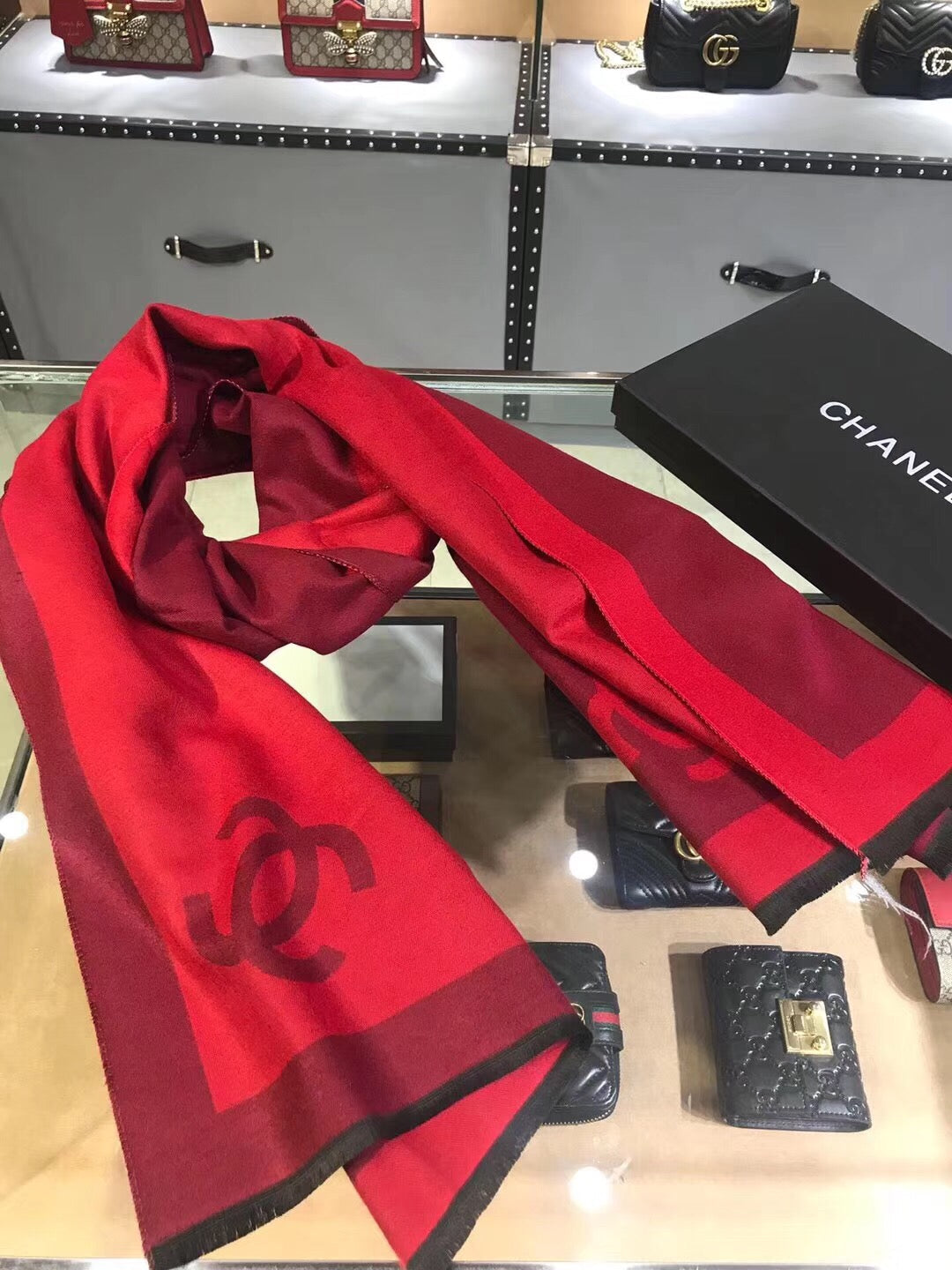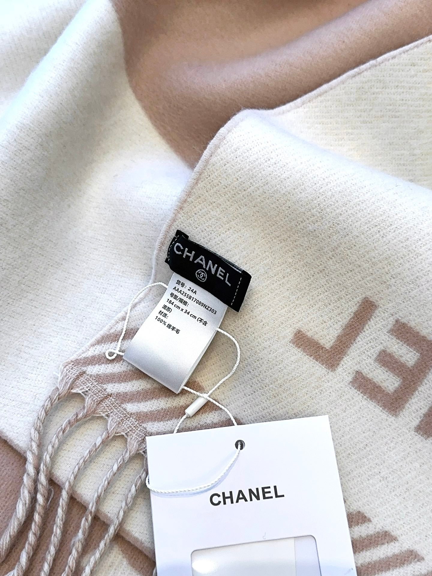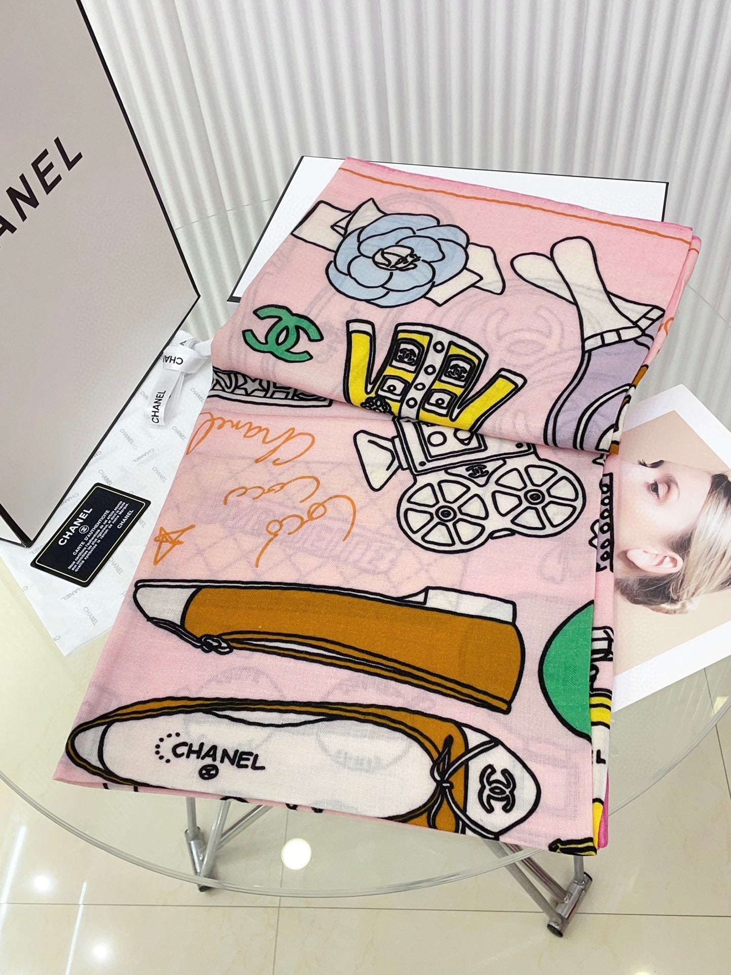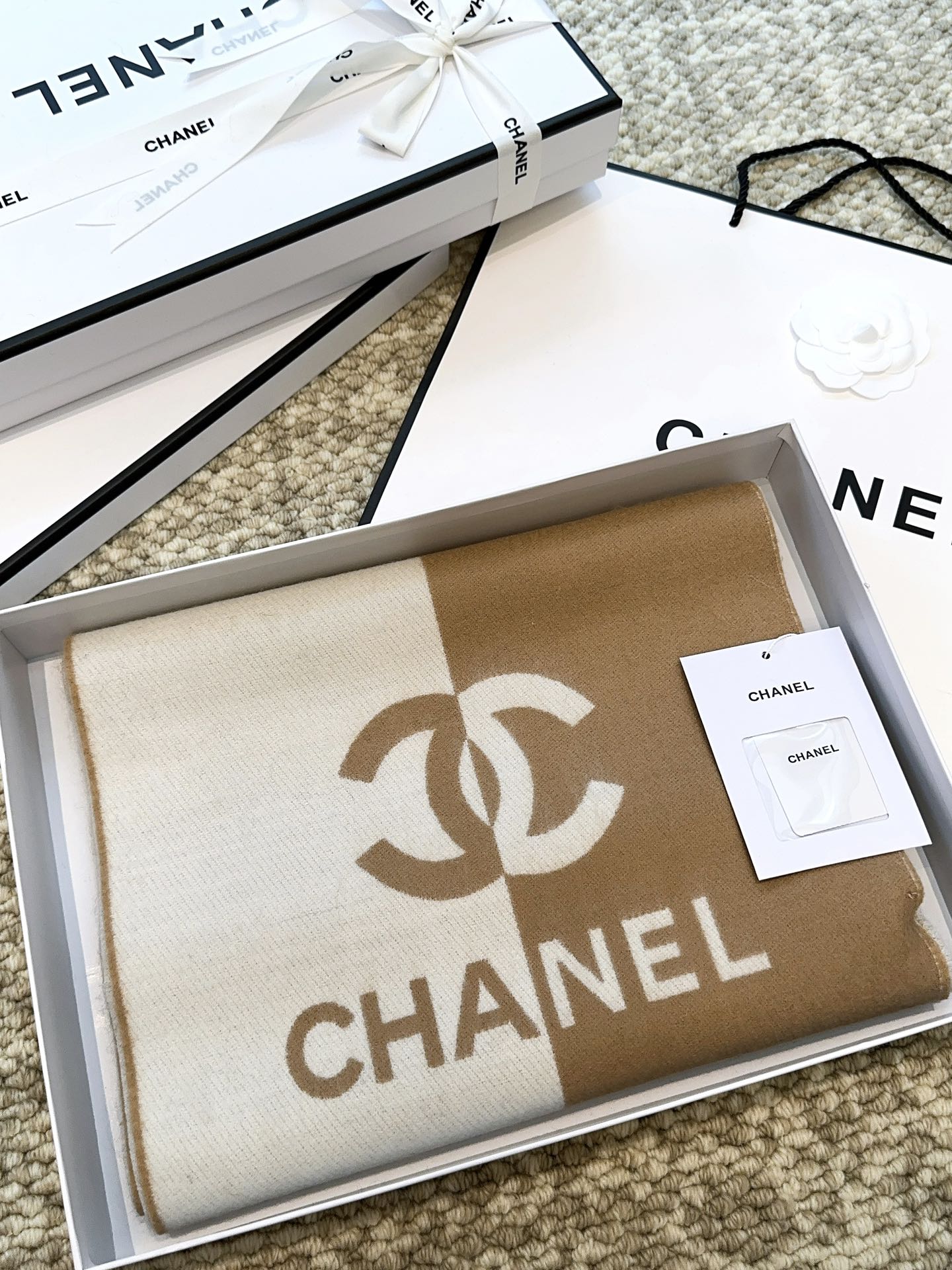CC Scarf 180 CM In Orange Mix Beige Print Logo Wool And Cashmere 359269