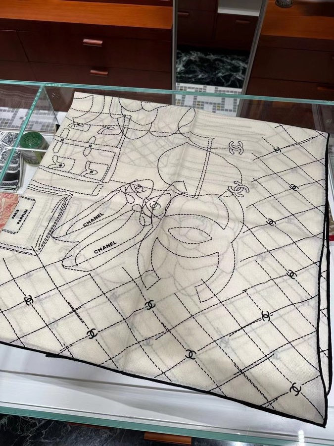 CC Square Scarf 140 CM In White Black Cashmere And Silk 424559