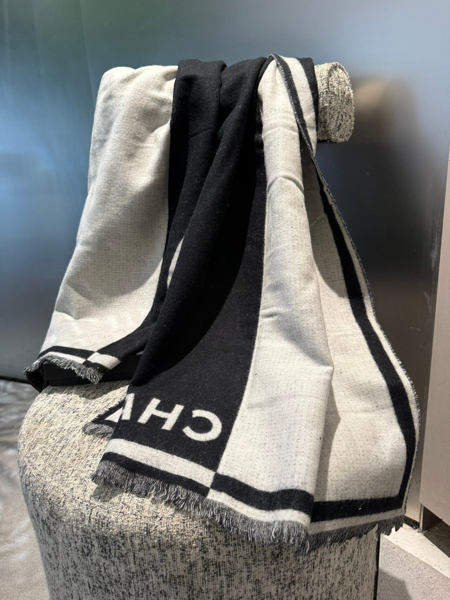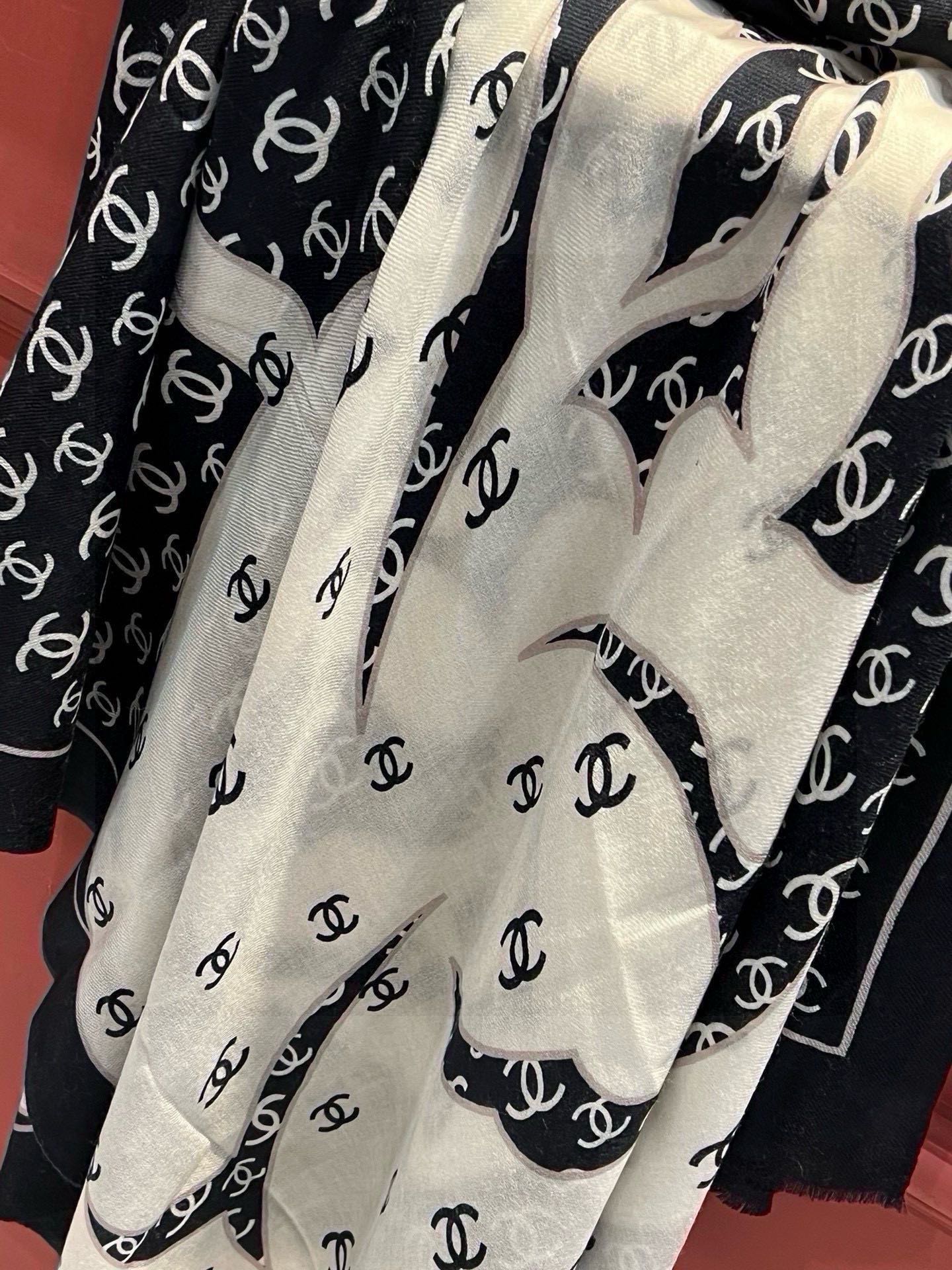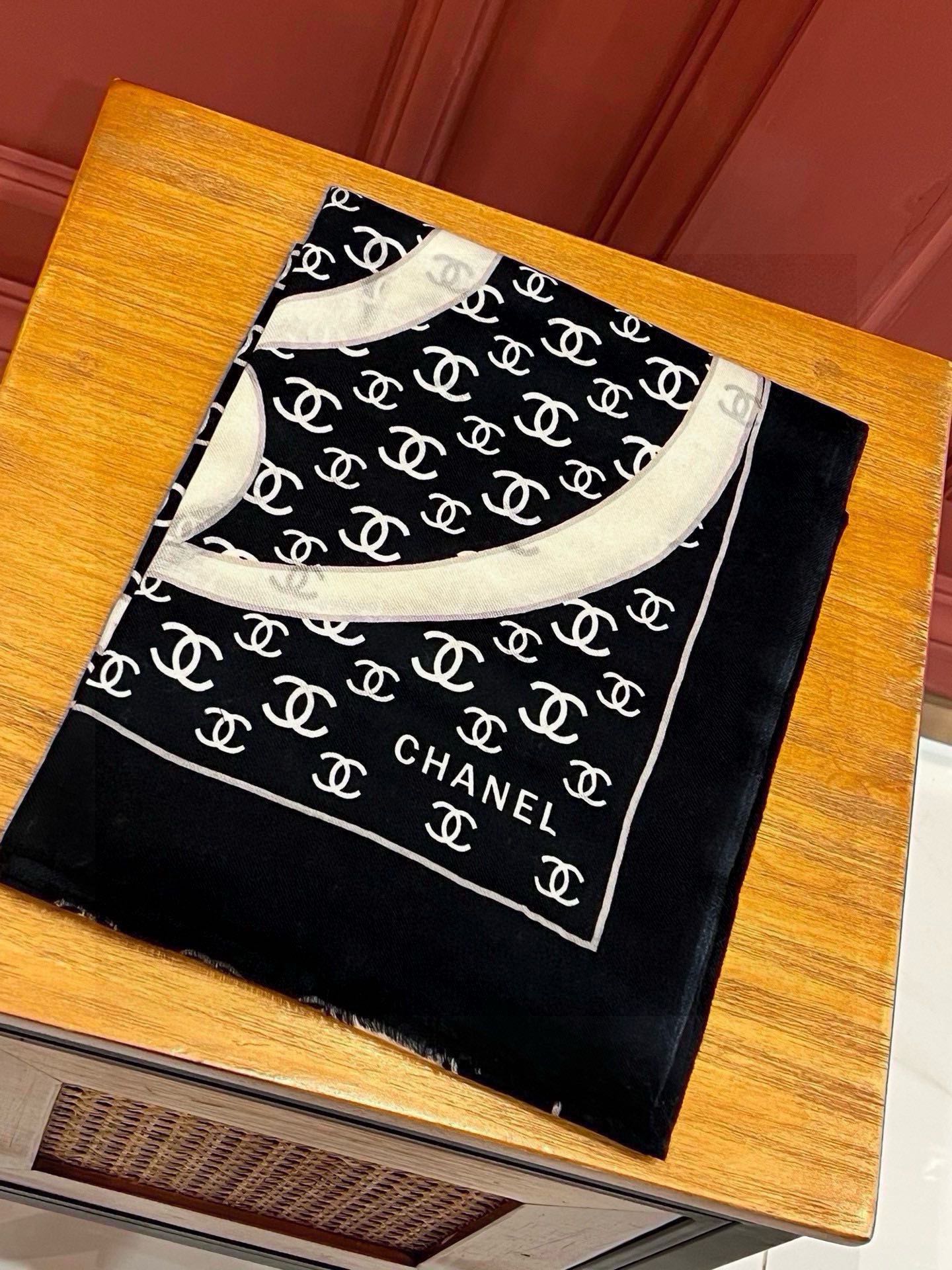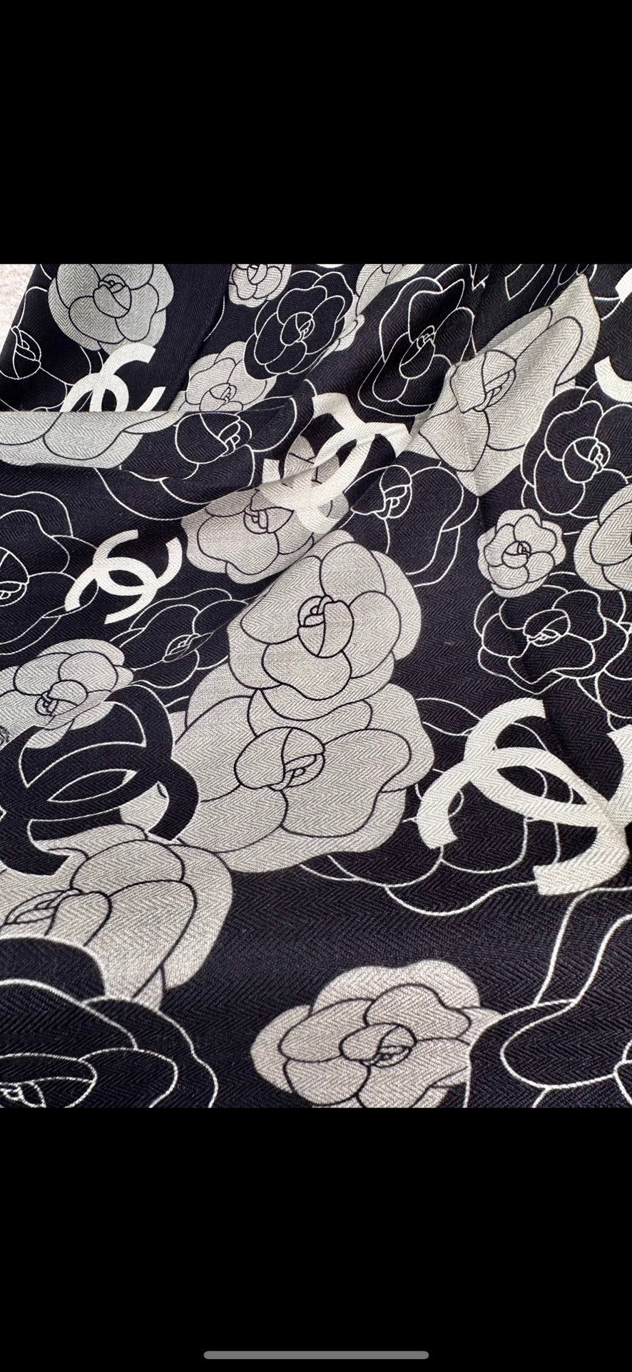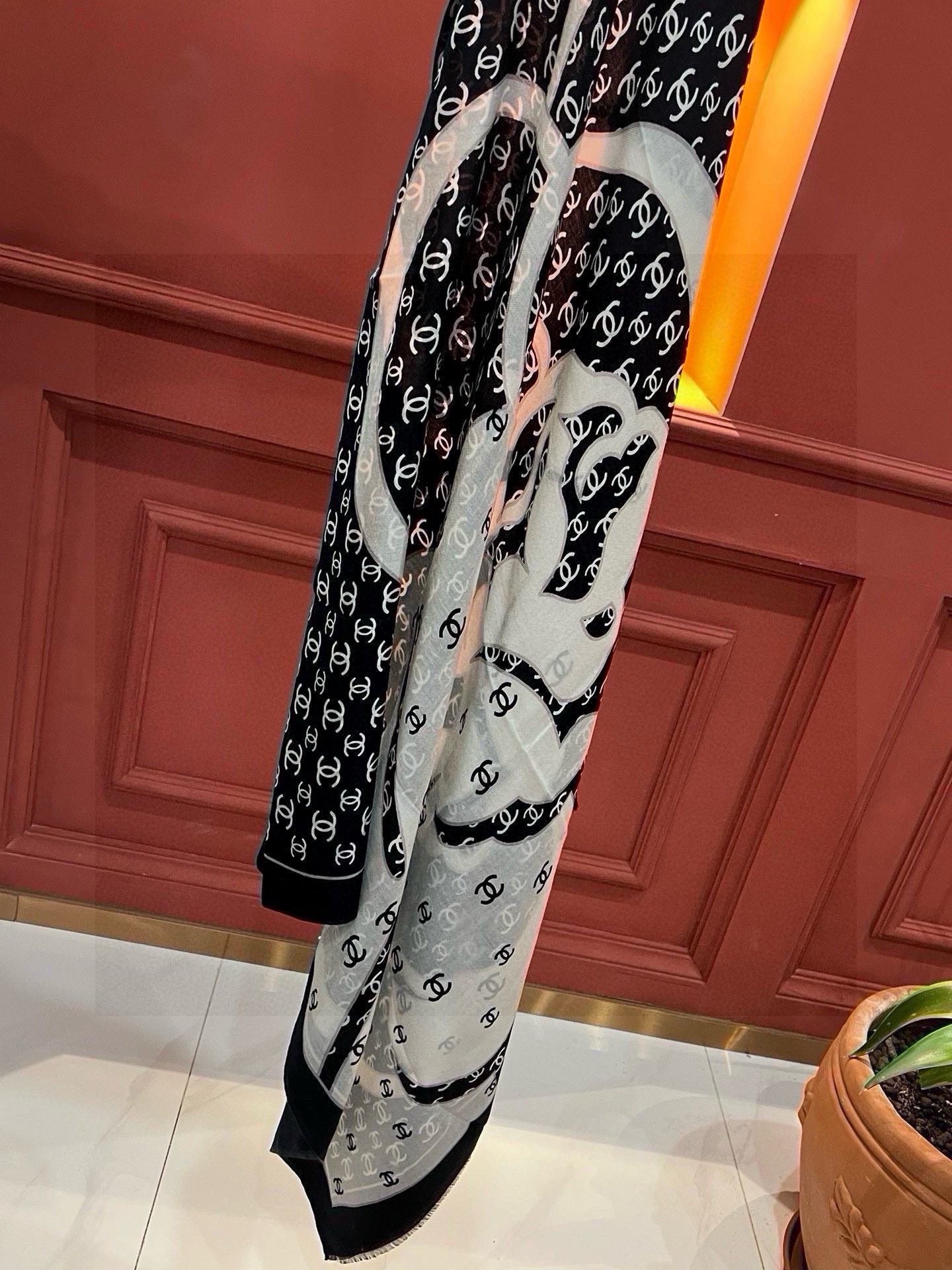 CC Scarf 178CM In Black White Mulberry Silk Mix Wool 424845
