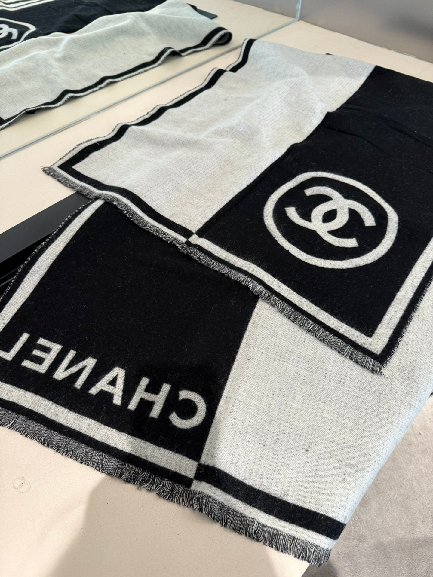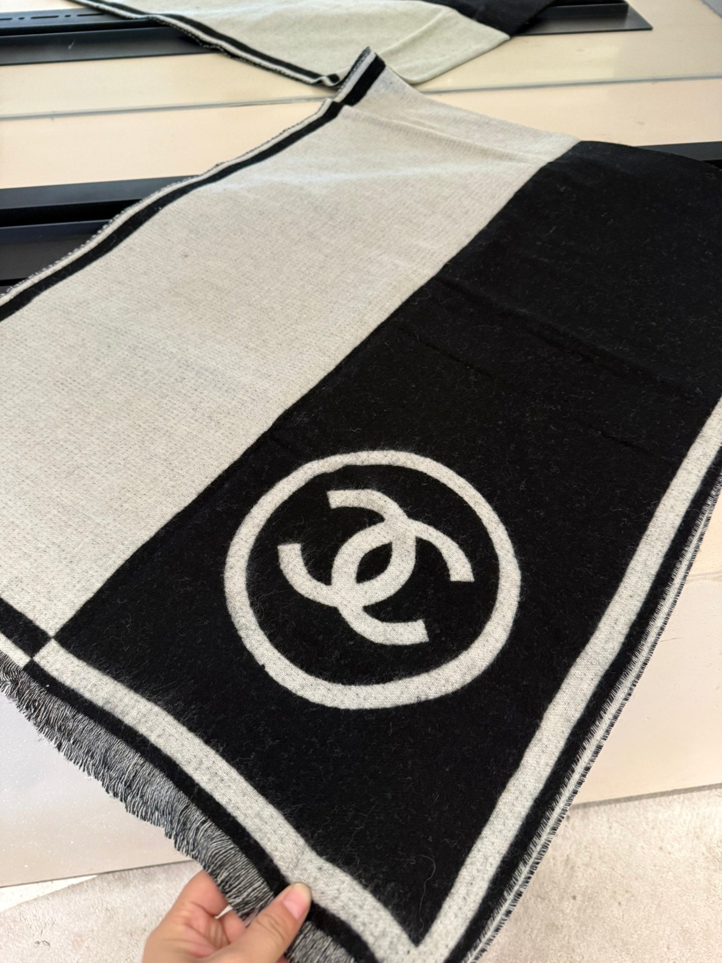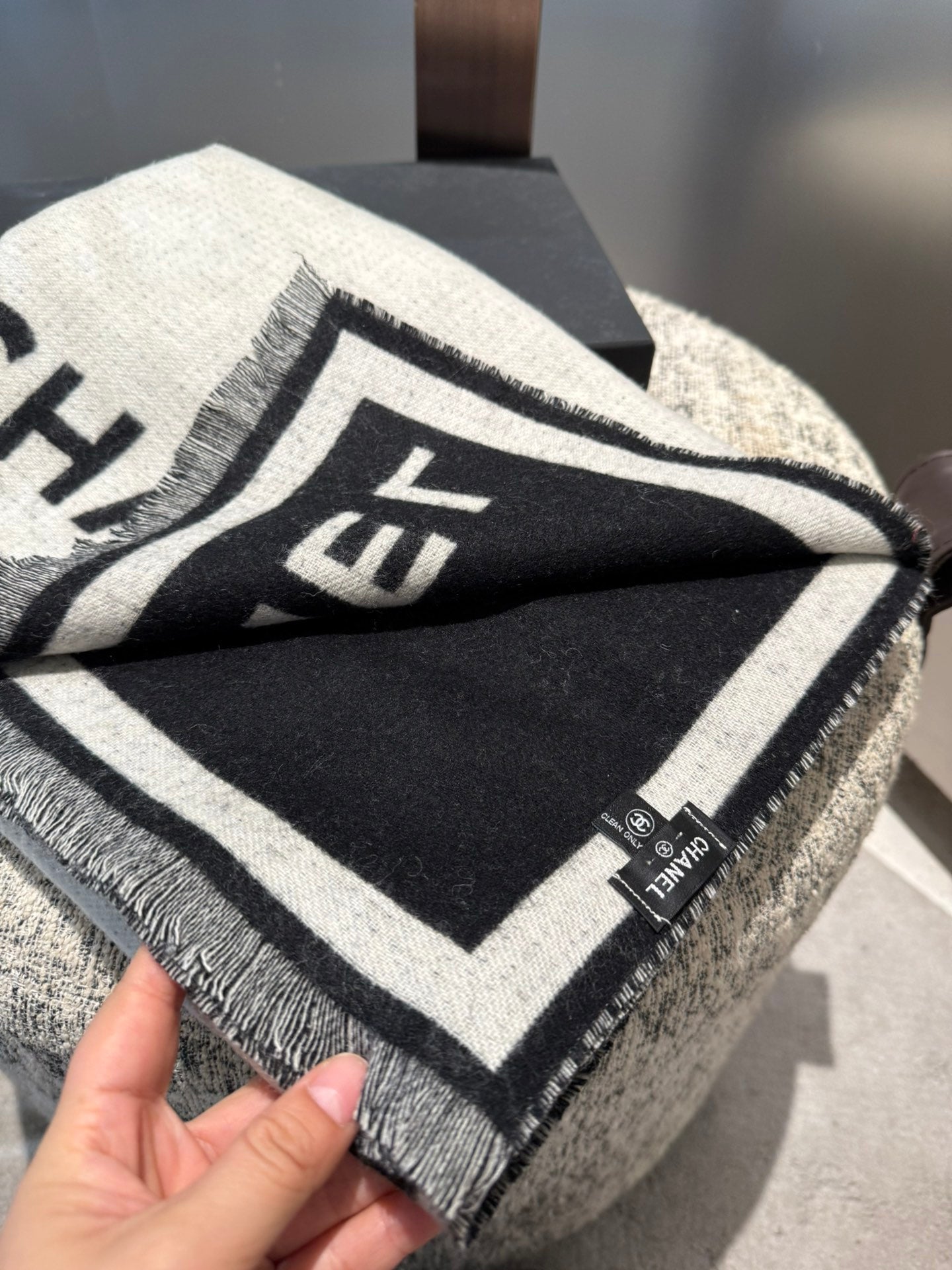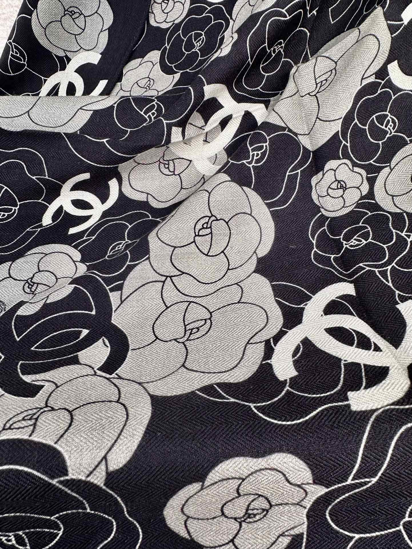 CC Scarf 178CM In Black White Mulberry Silk Mix Wool 424845