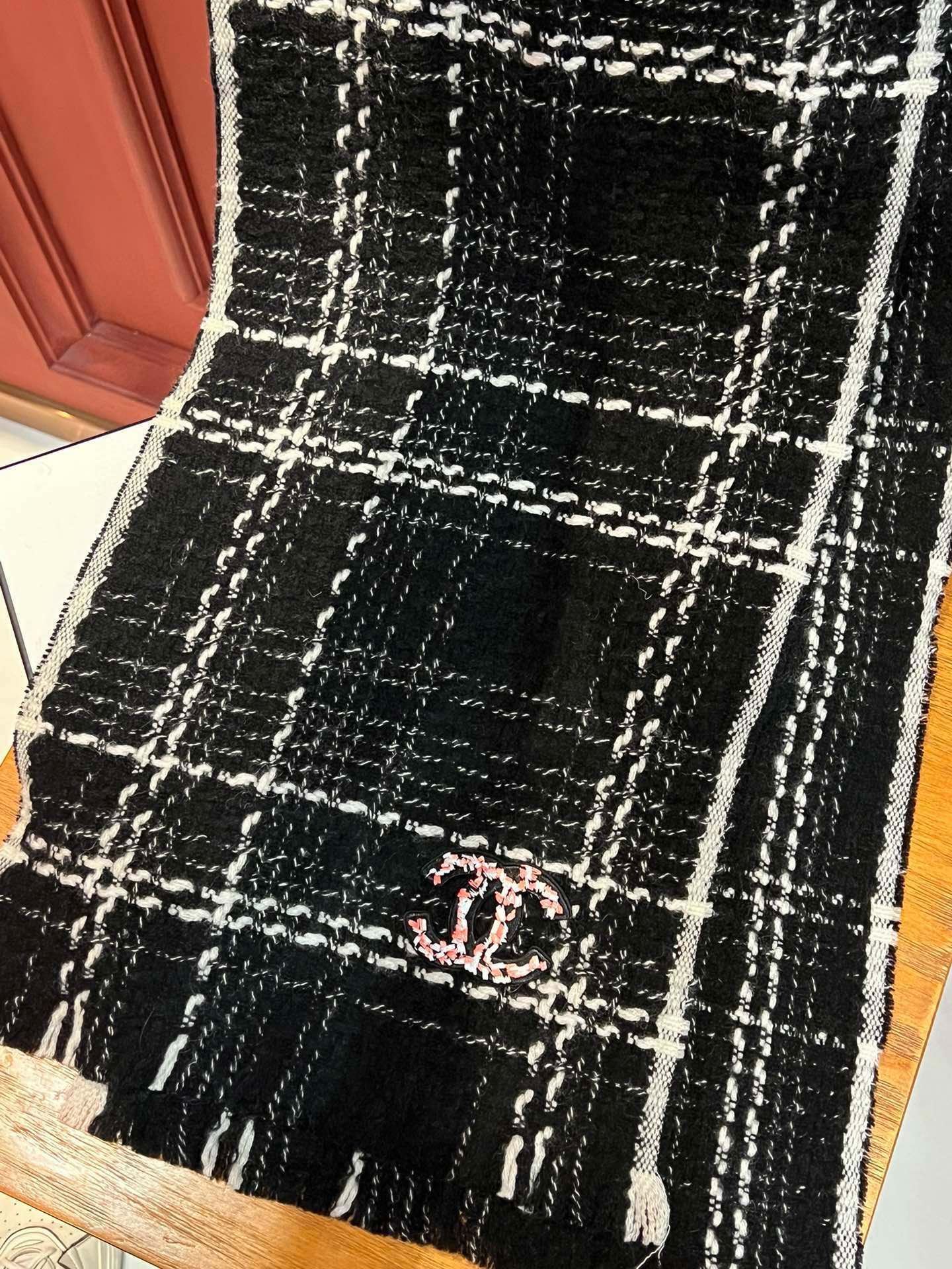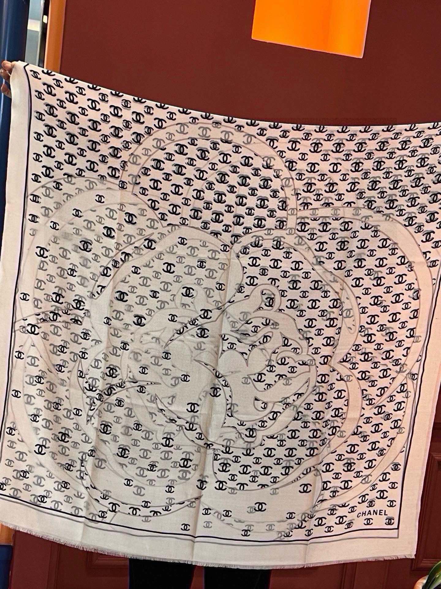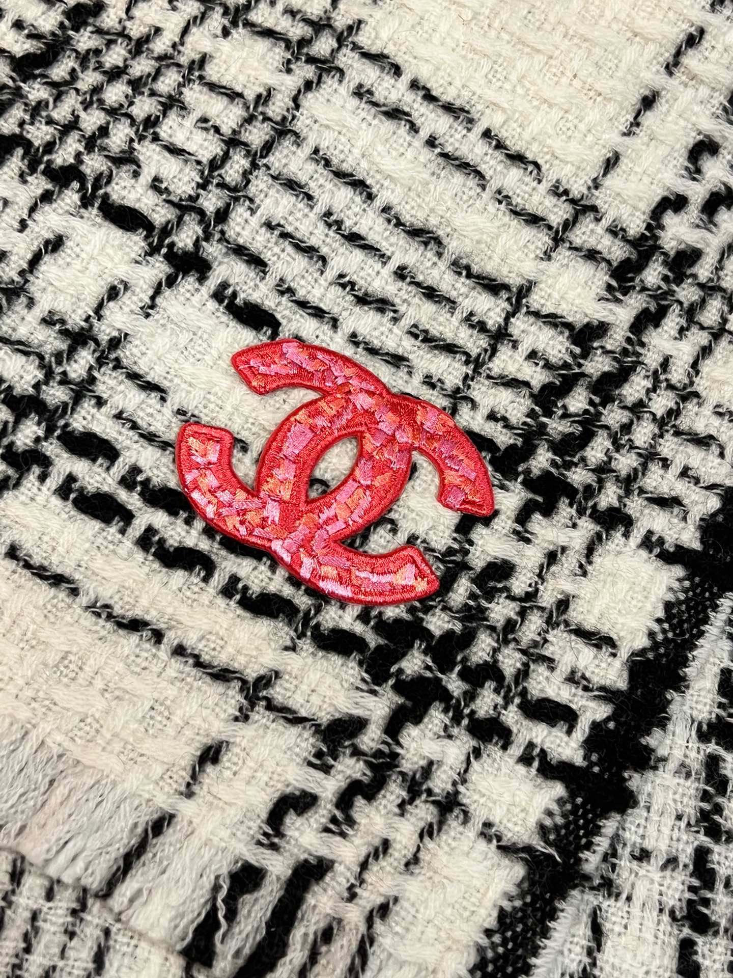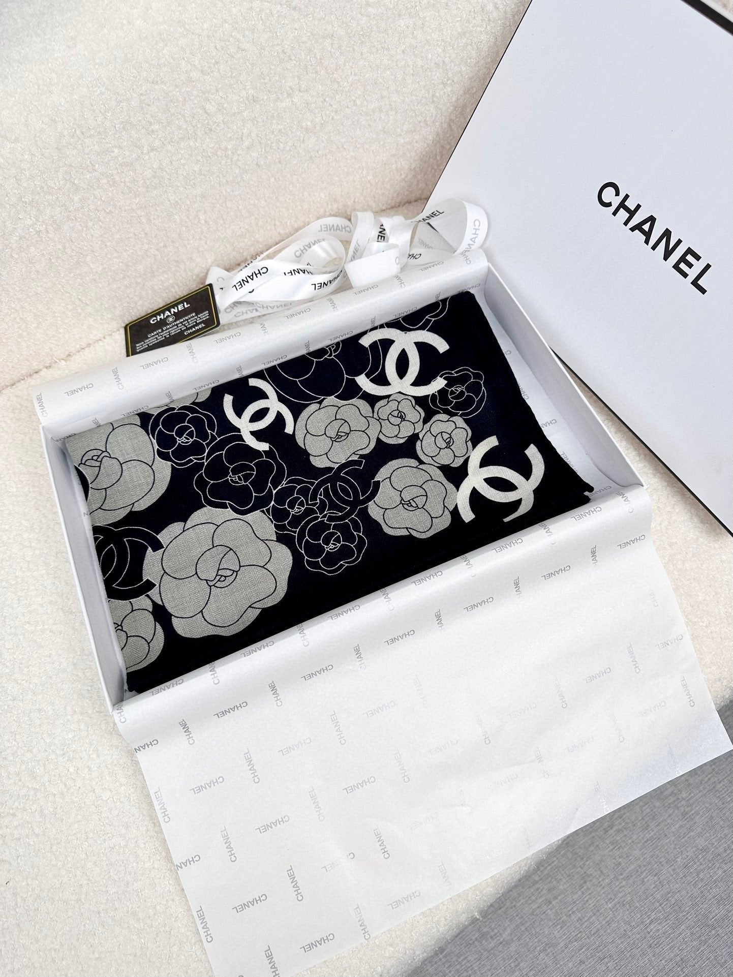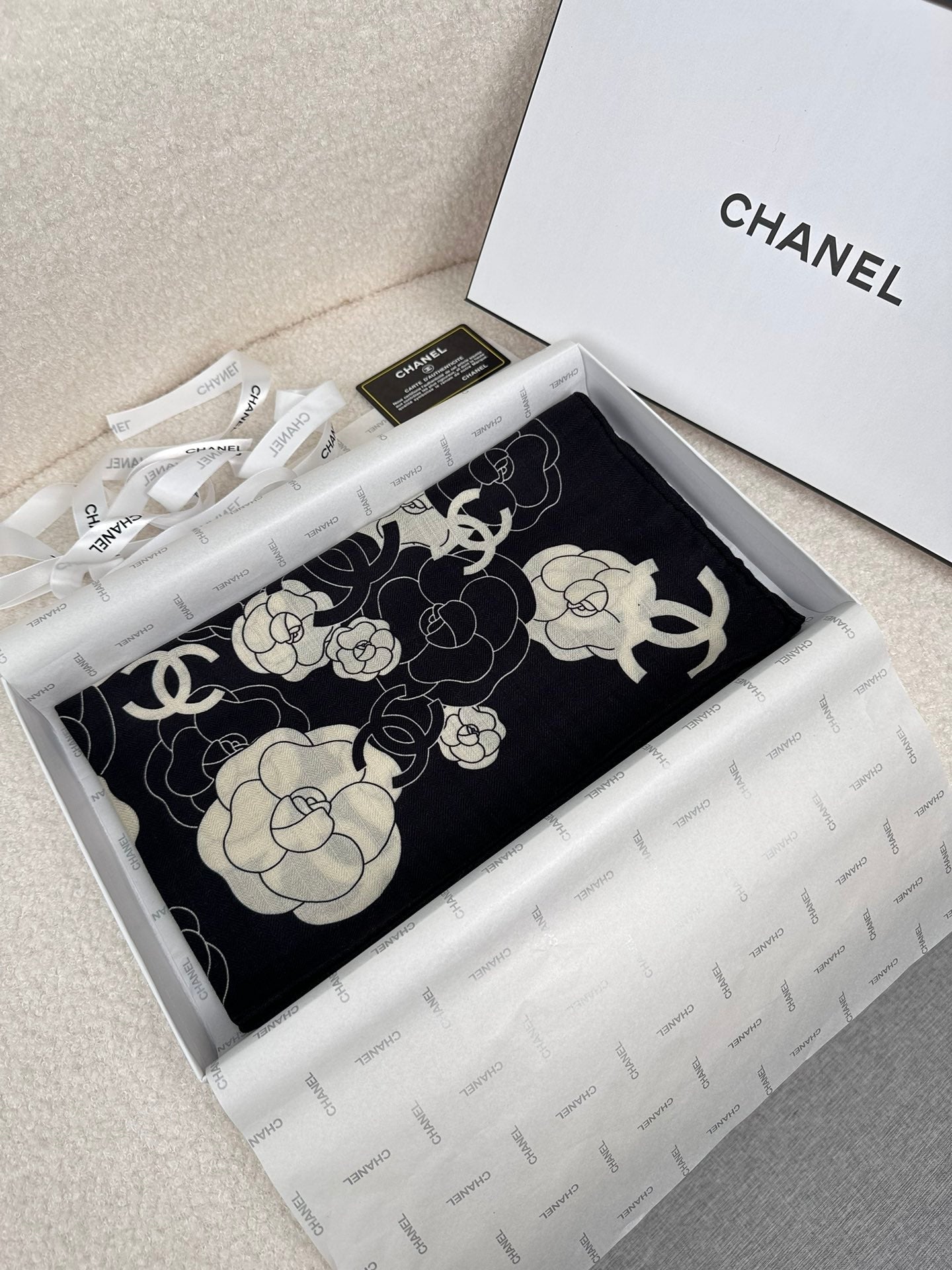 CC Scarf 178CM In Black White Mulberry Silk Mix Wool 424845