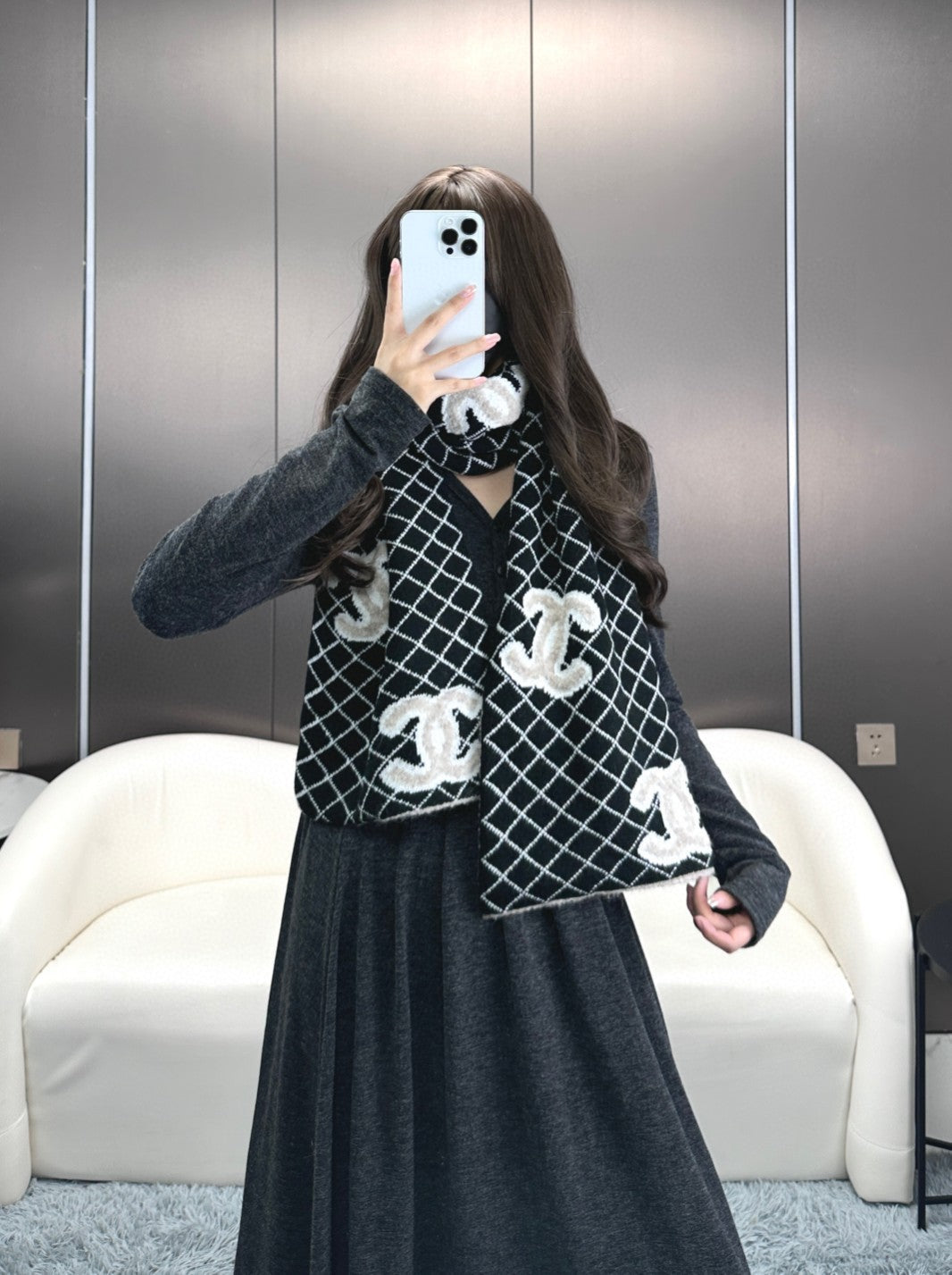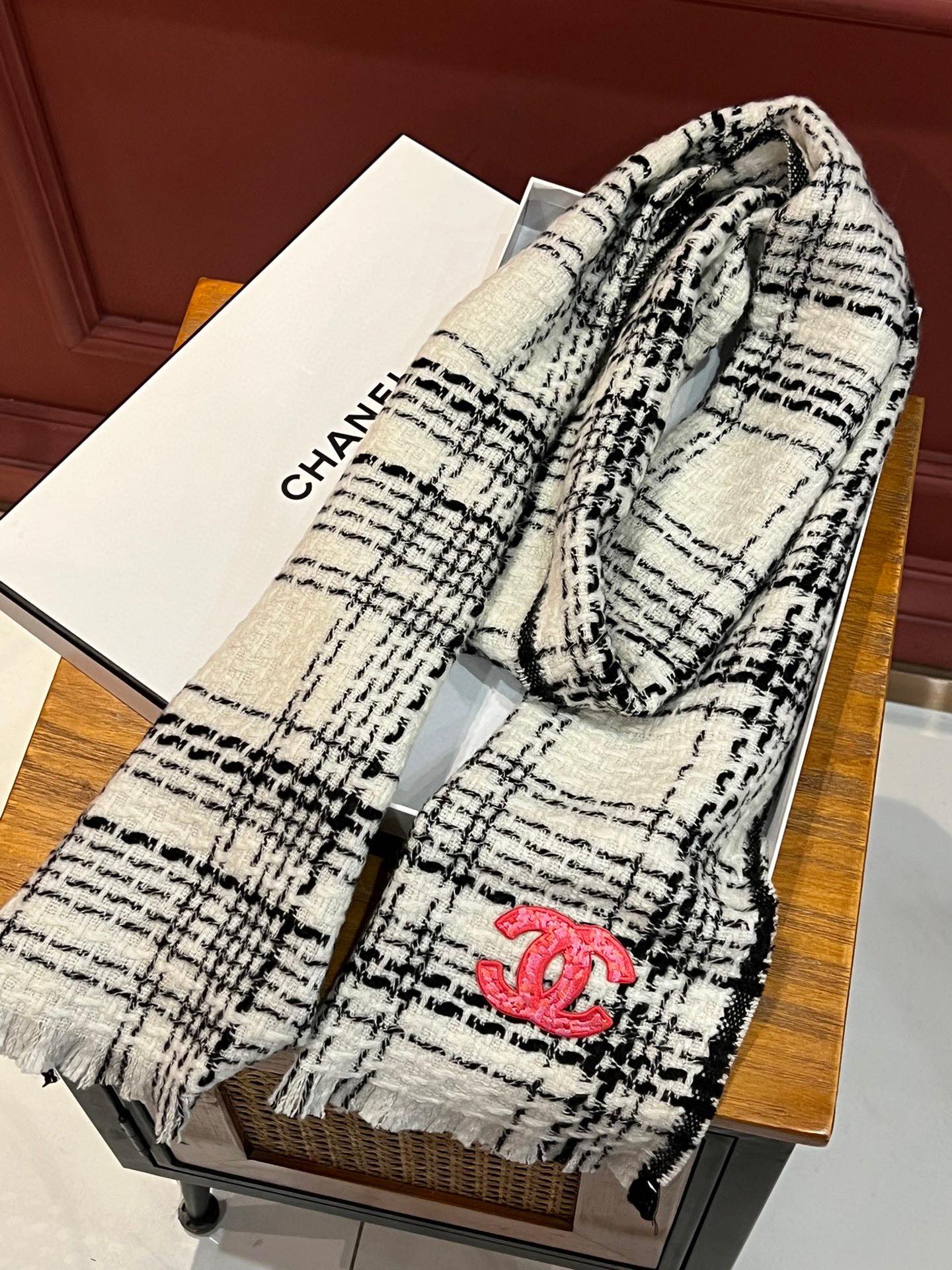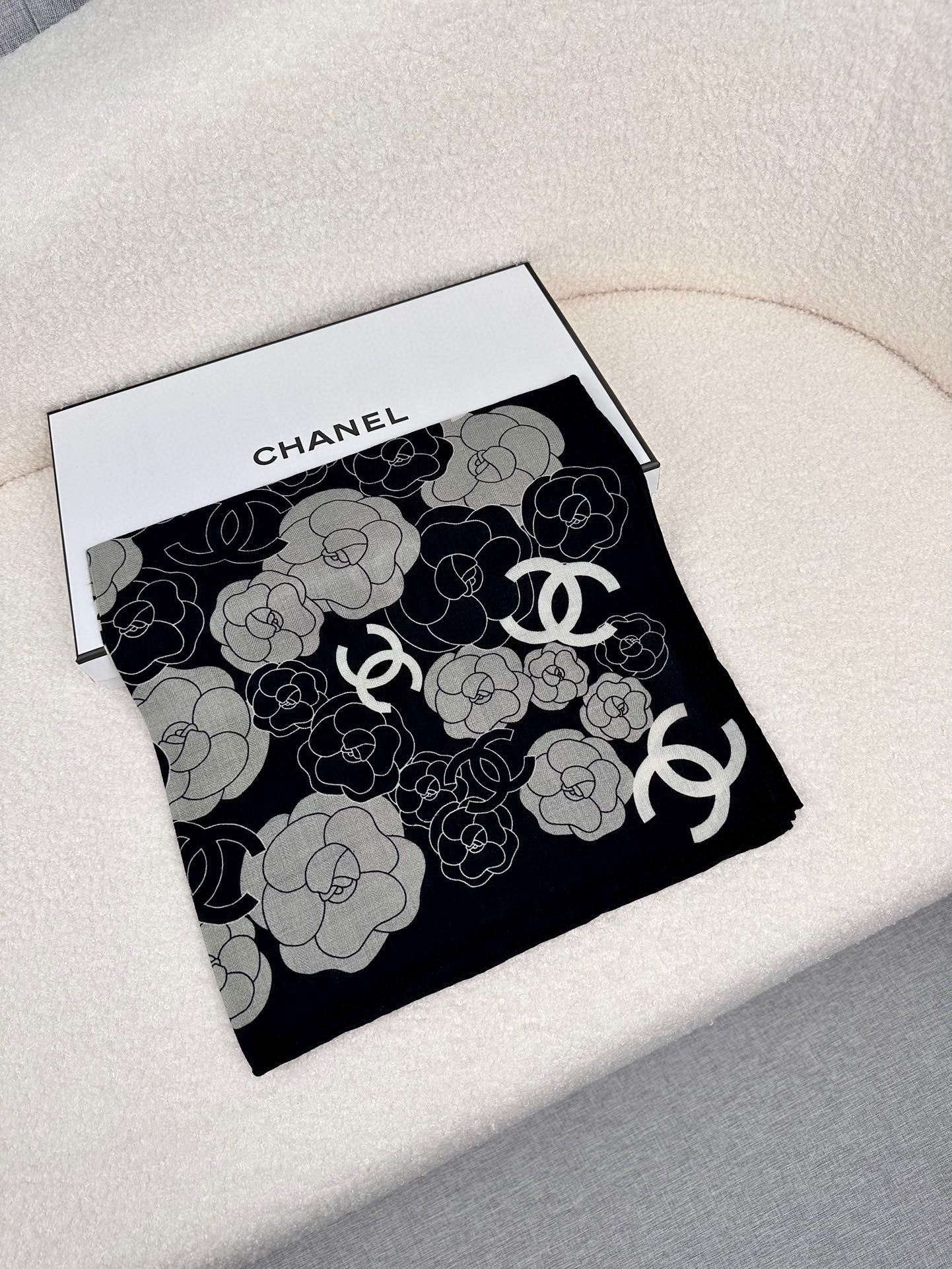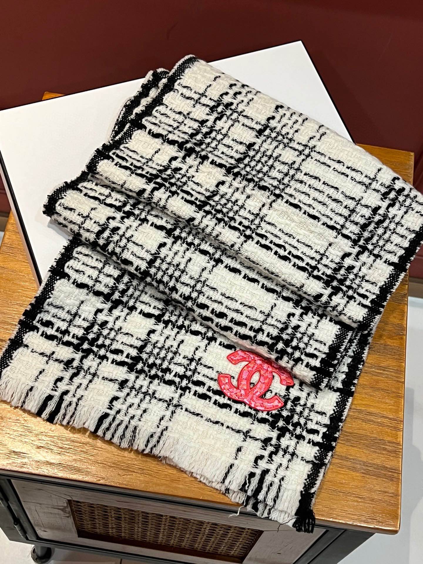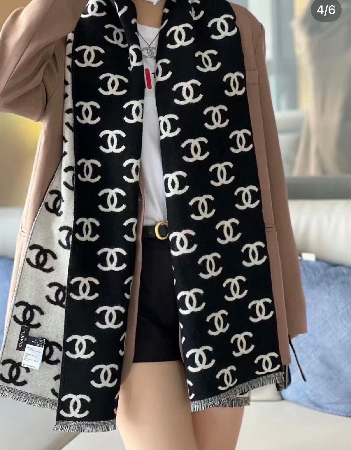 CC Scarf 178CM In Black White Mulberry Silk Mix Wool 424845
