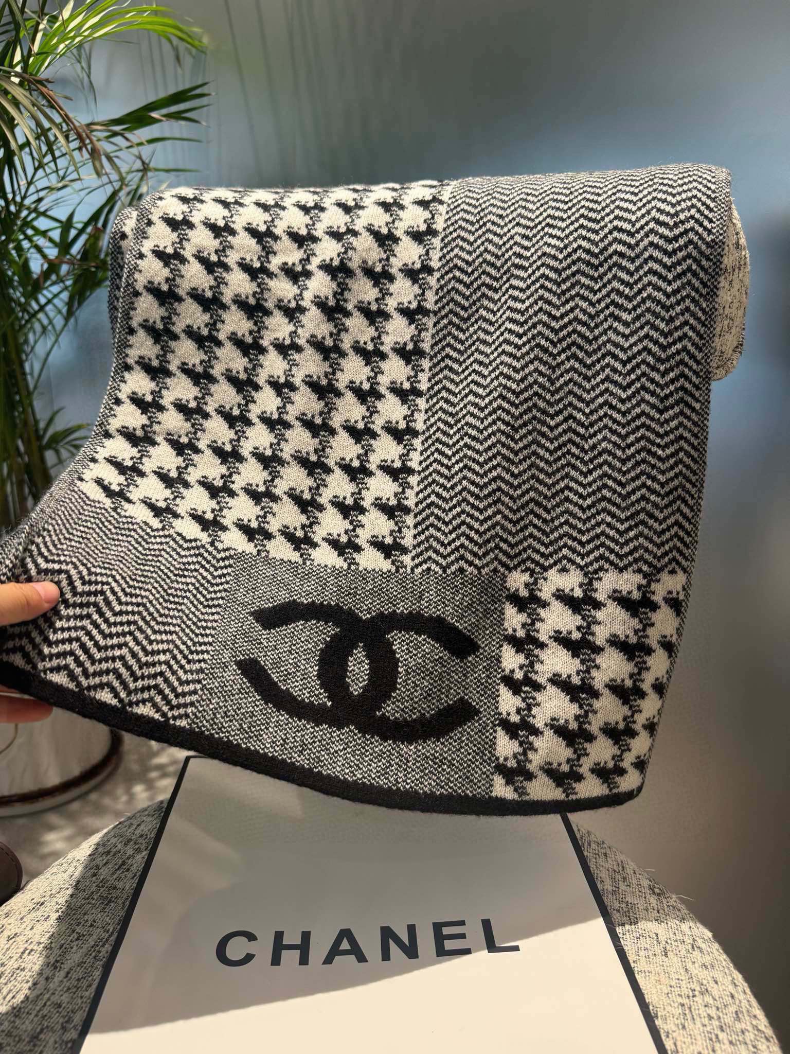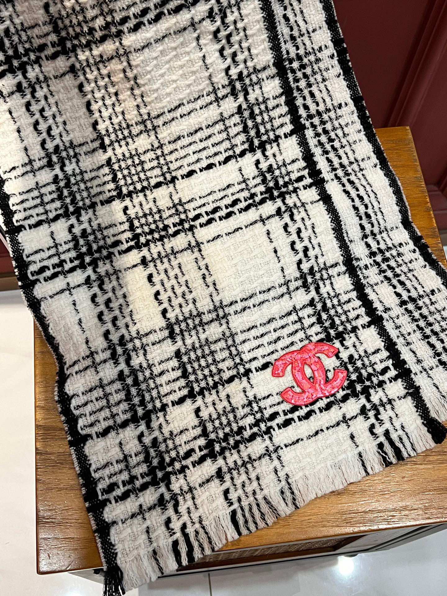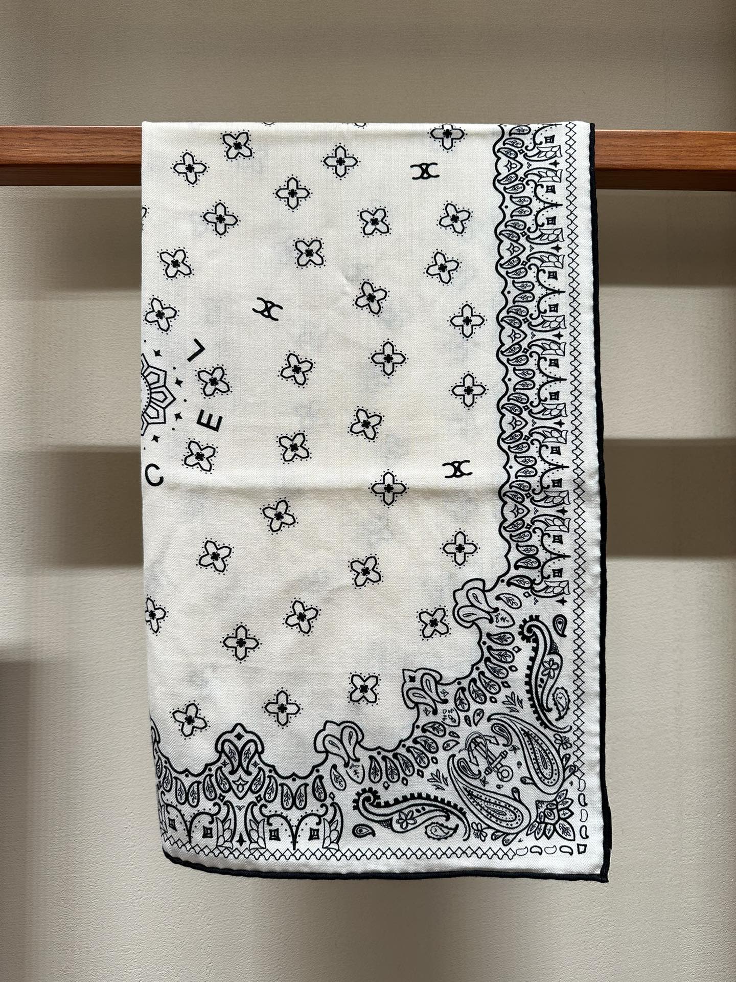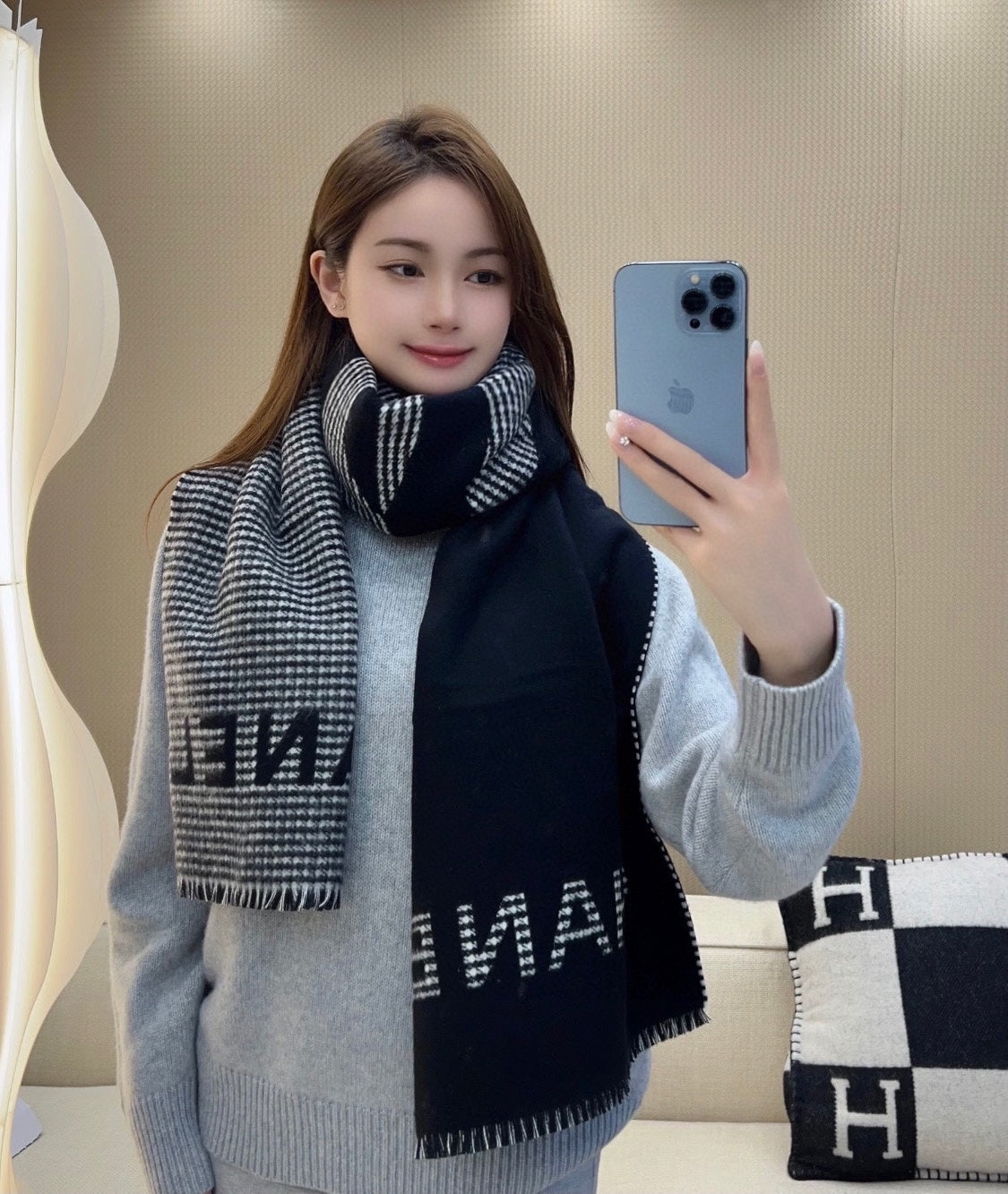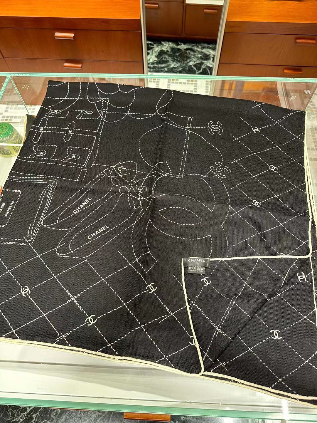 CC Scarf 178CM In Black White Mulberry Silk Mix Wool 424845