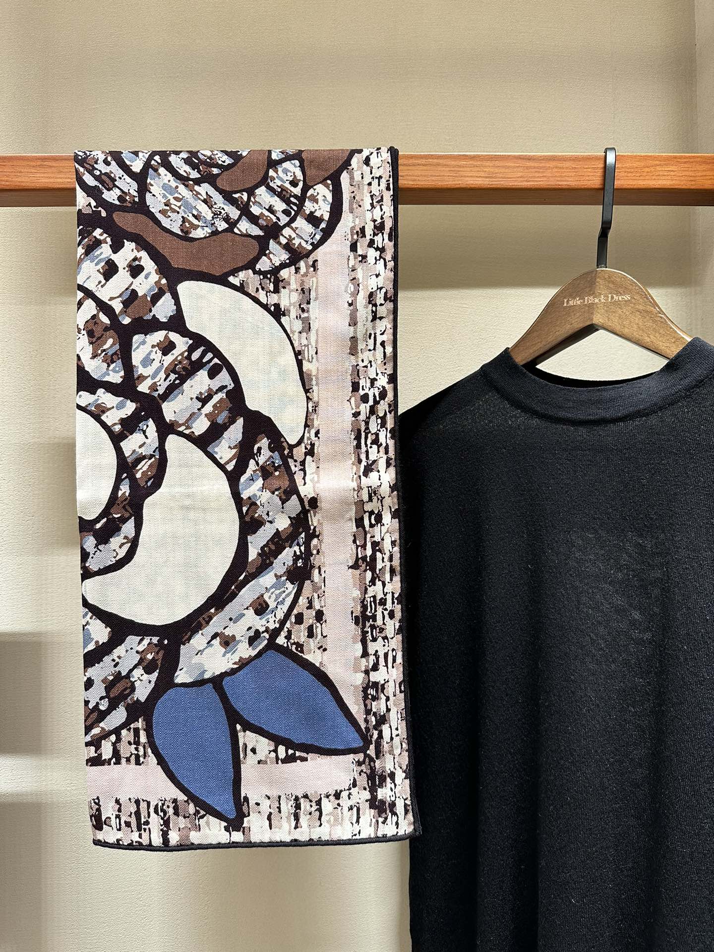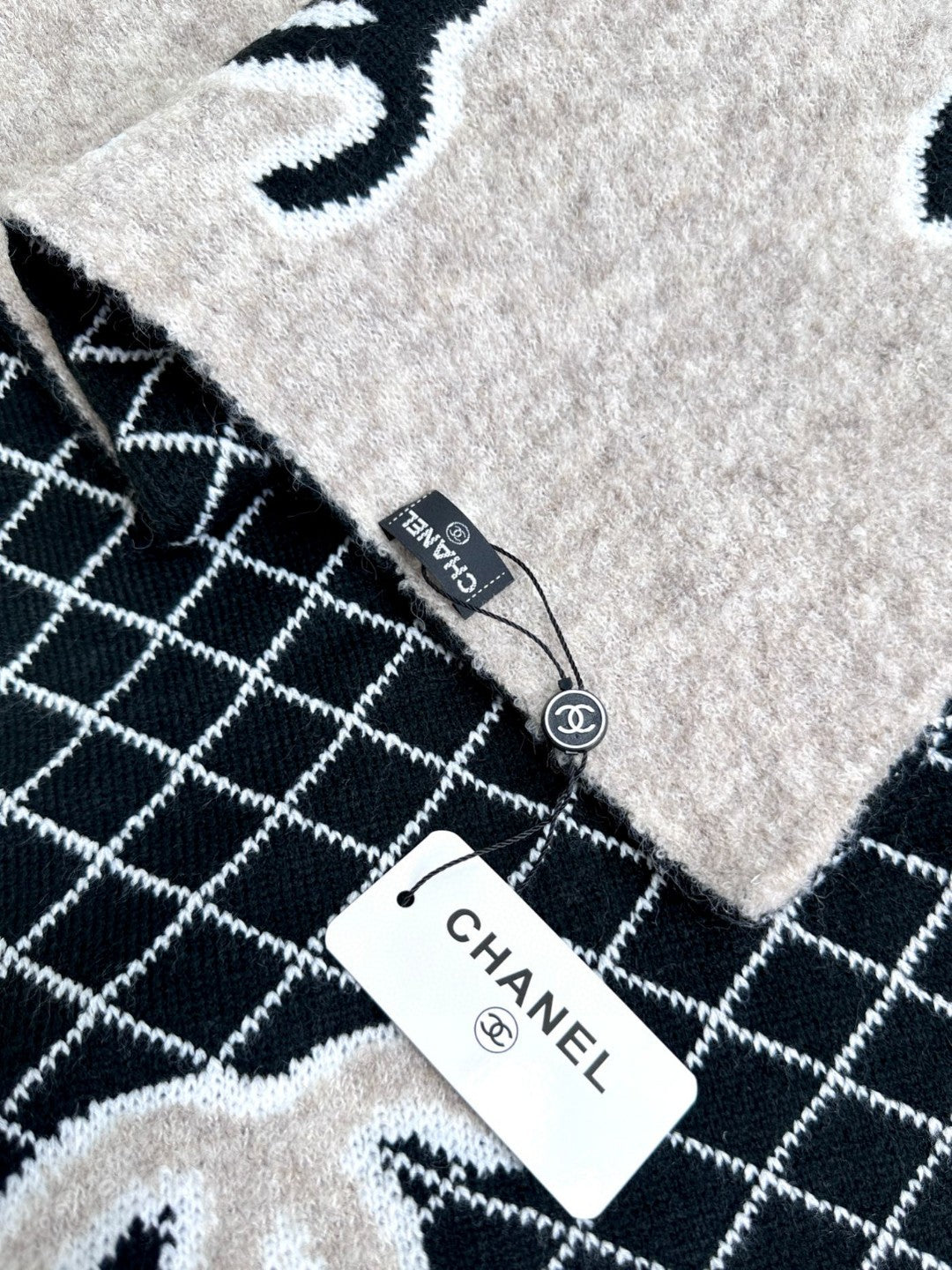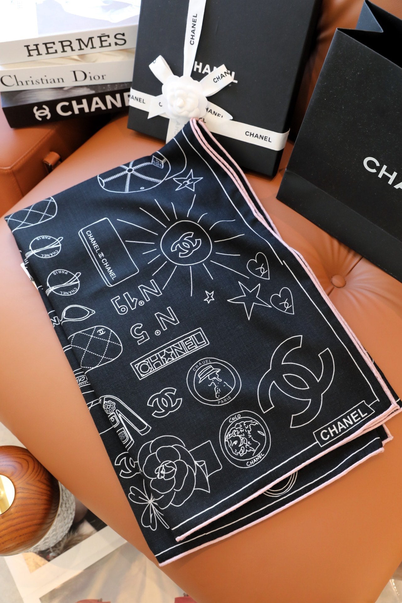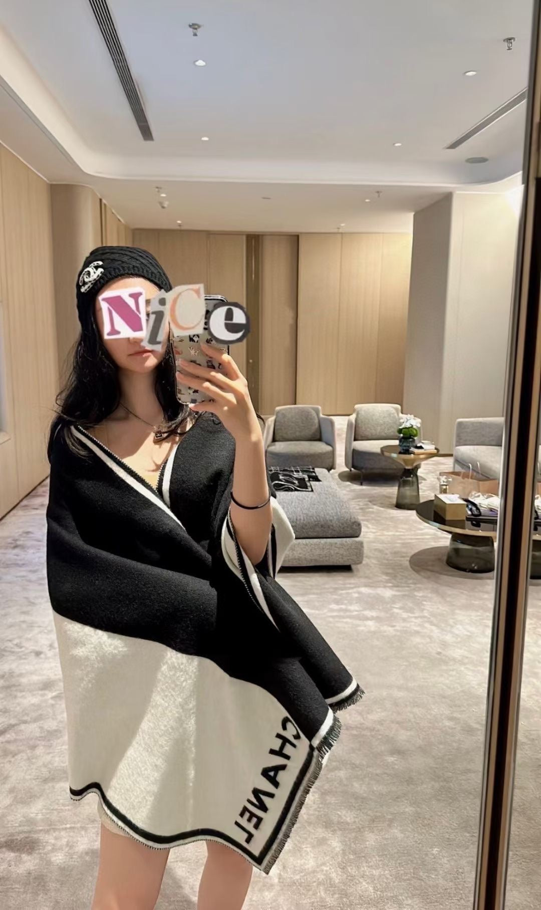 CC Scarf 178CM In Black White Mulberry Silk Mix Wool 424845