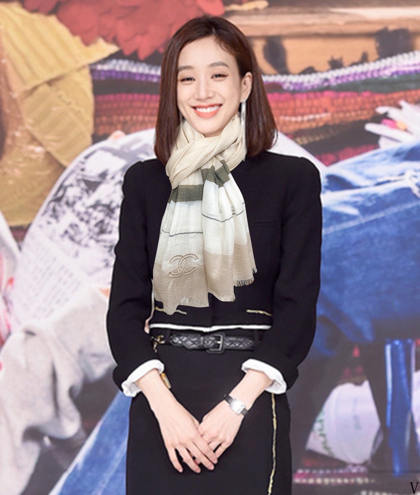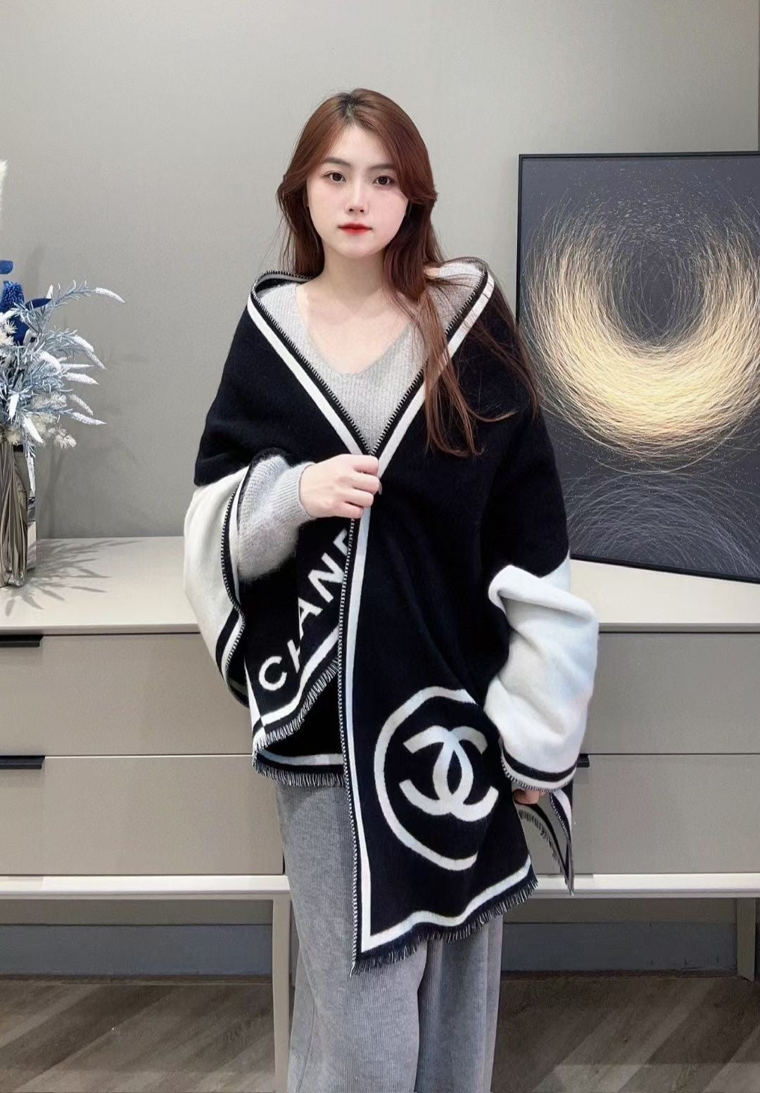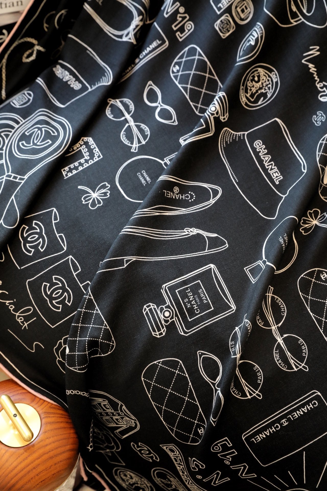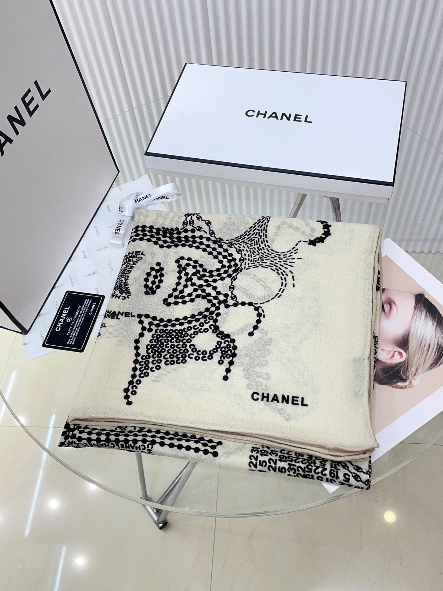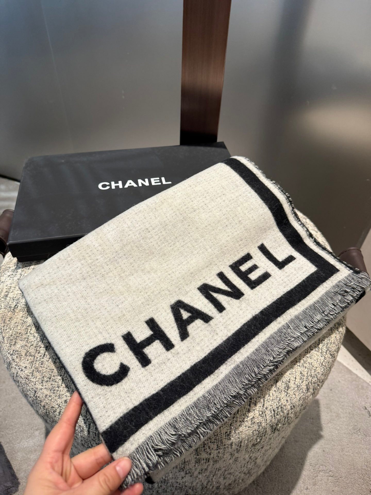 CC Scarf 178CM In Black White Mulberry Silk Mix Wool 424845