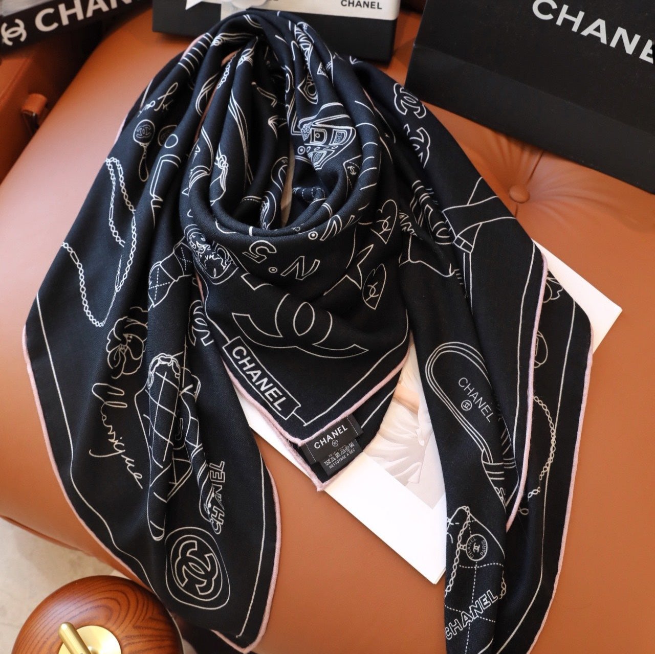 CC Square Scarf 140 CM In Black White Cashmere Silk 359322
