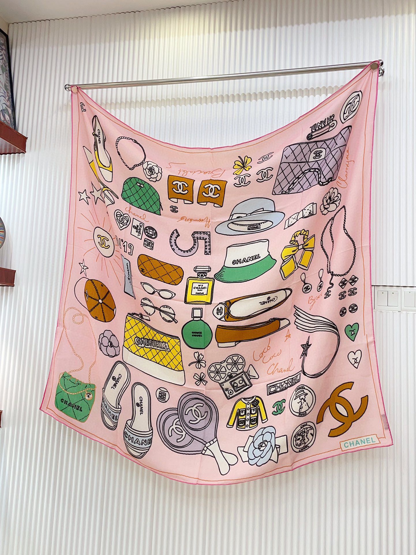 CC Square Scarf 140 CM In Colorful Cashmere Silk 376418